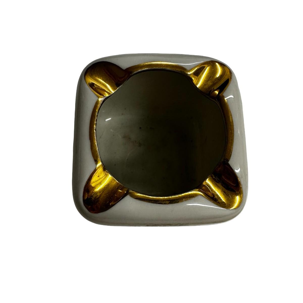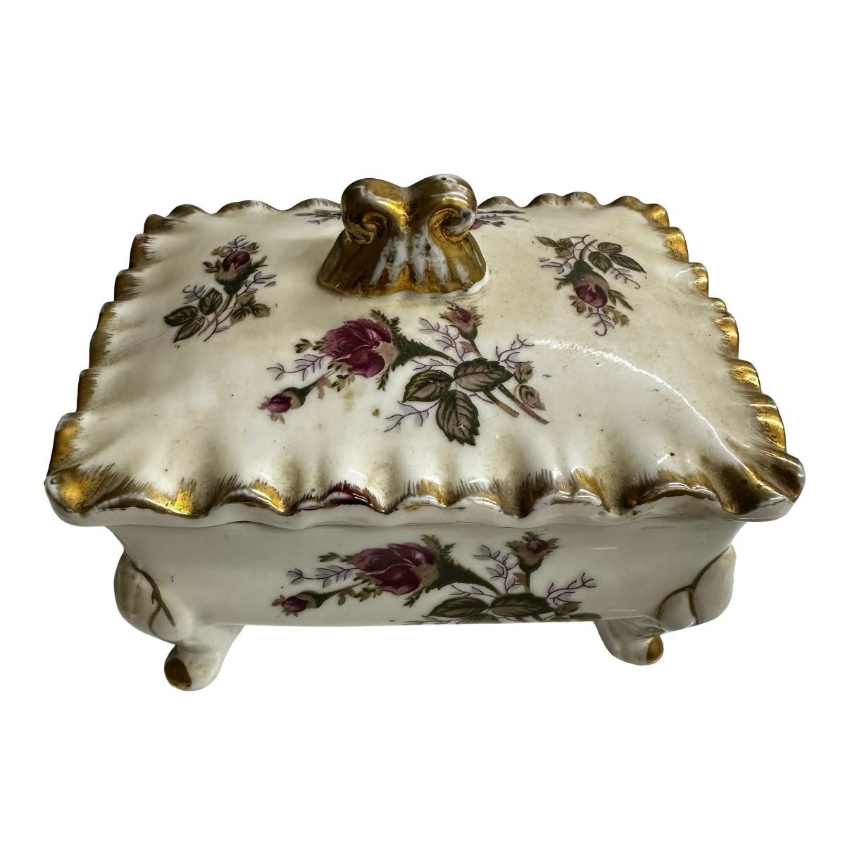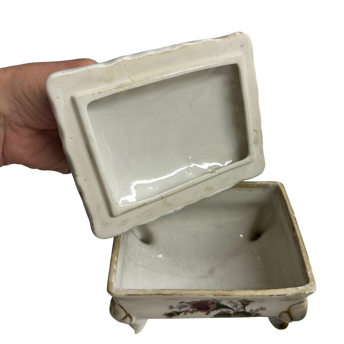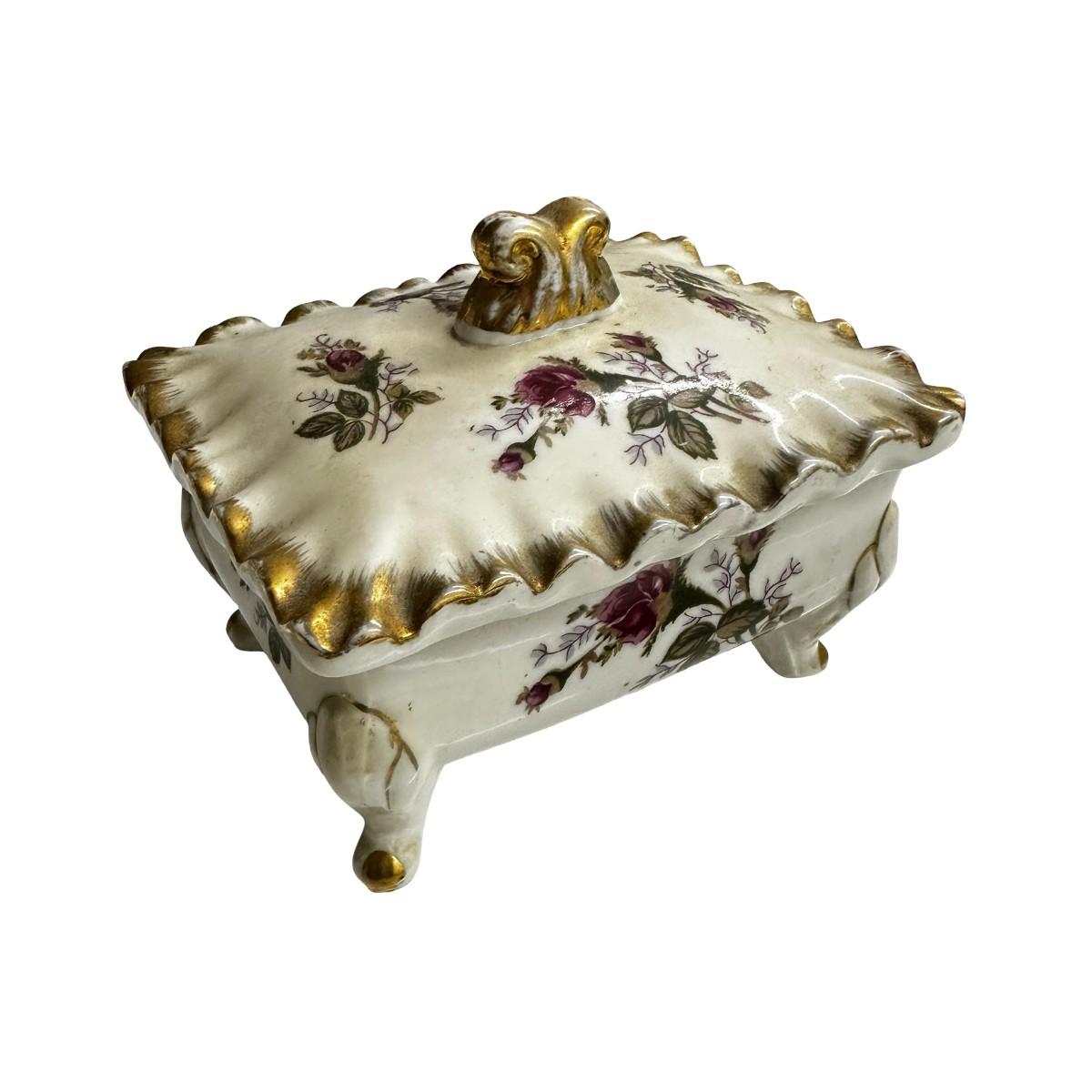 Lot of 3 Vintage Ceramic Pieces- lady is a bell, container with lid, and ashtray
