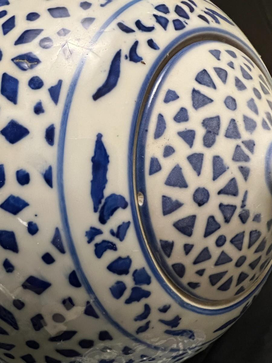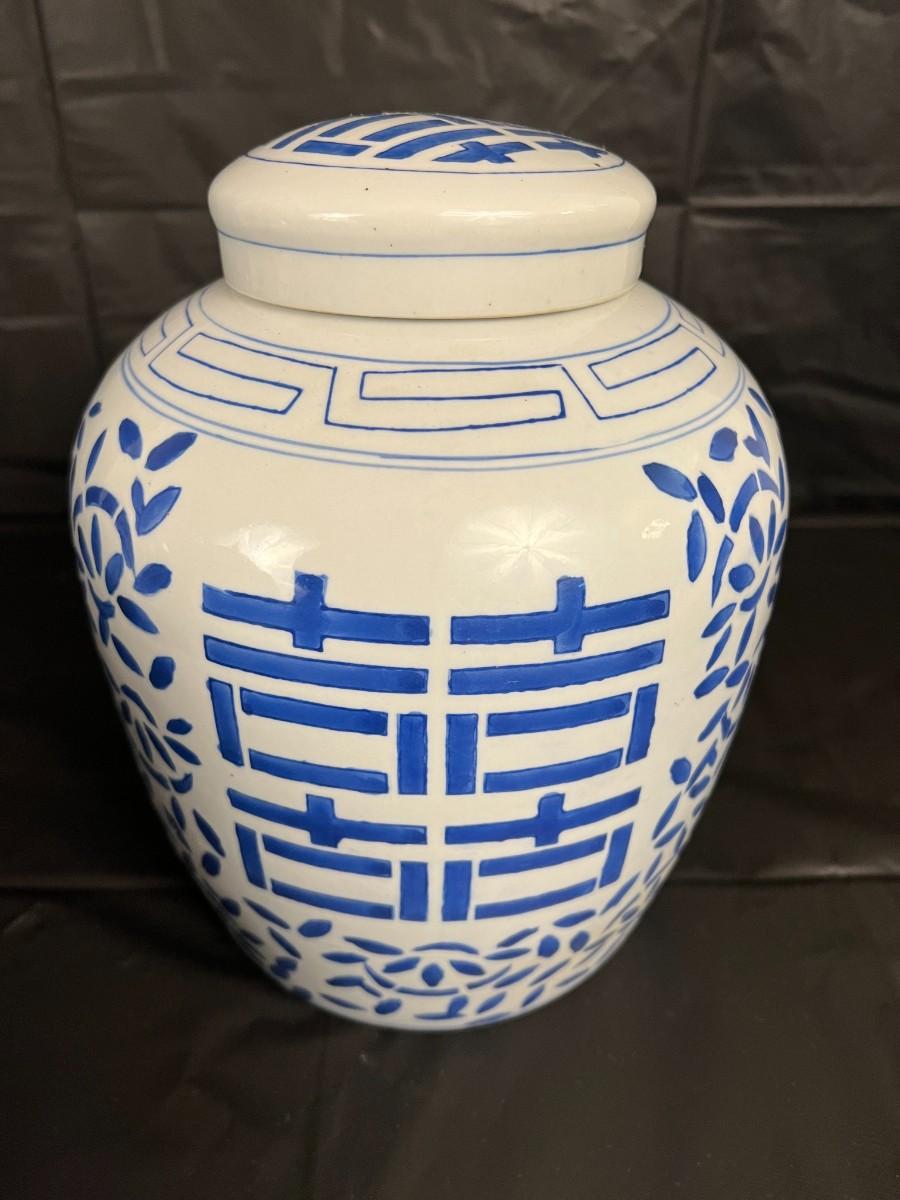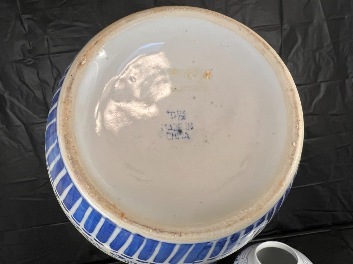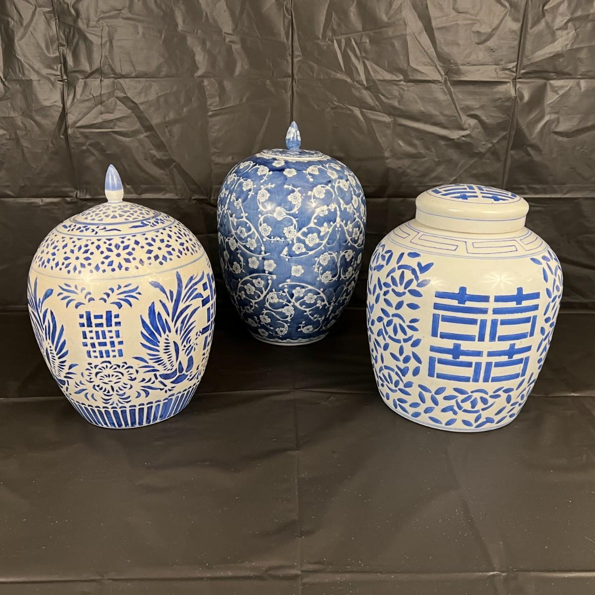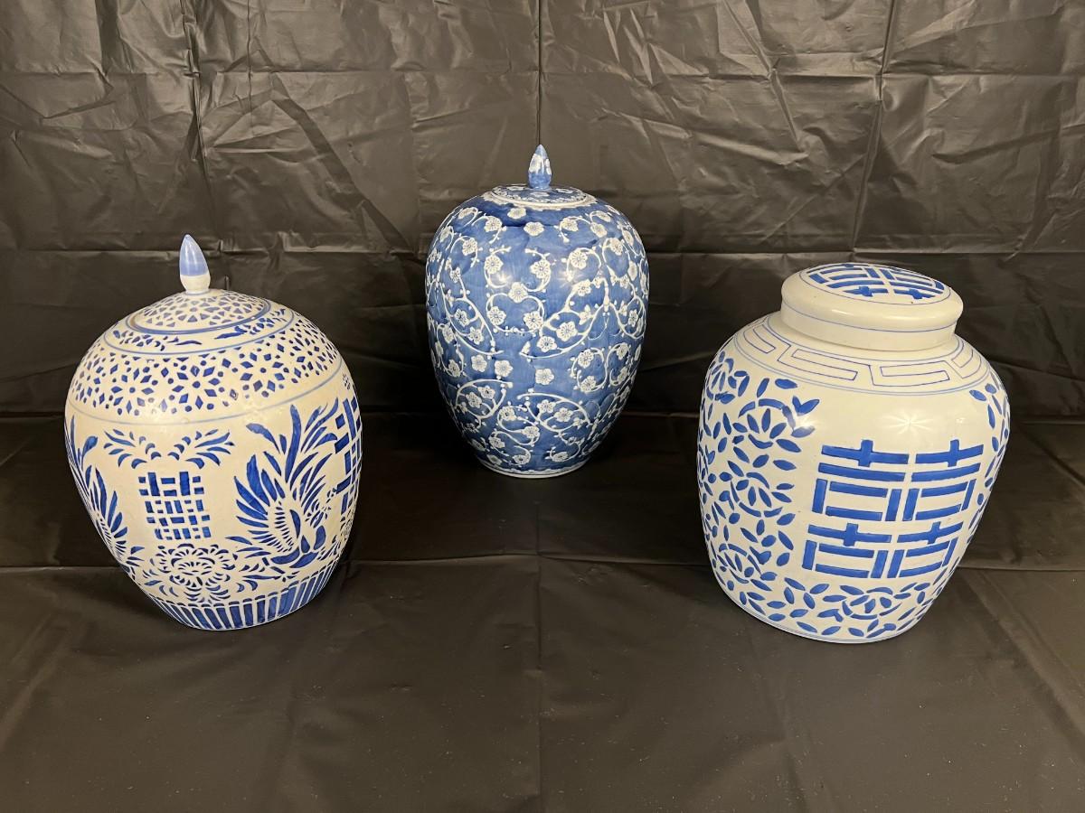 Lot of 3 Vintage Chinese Blue and White Glazed Lidded Vessels