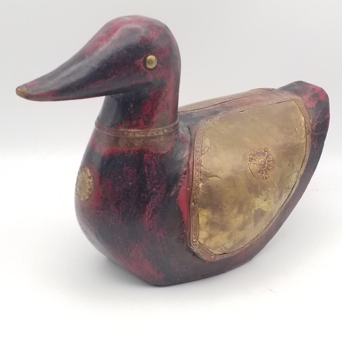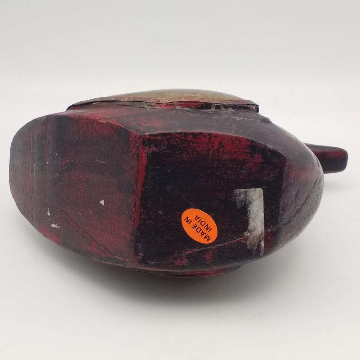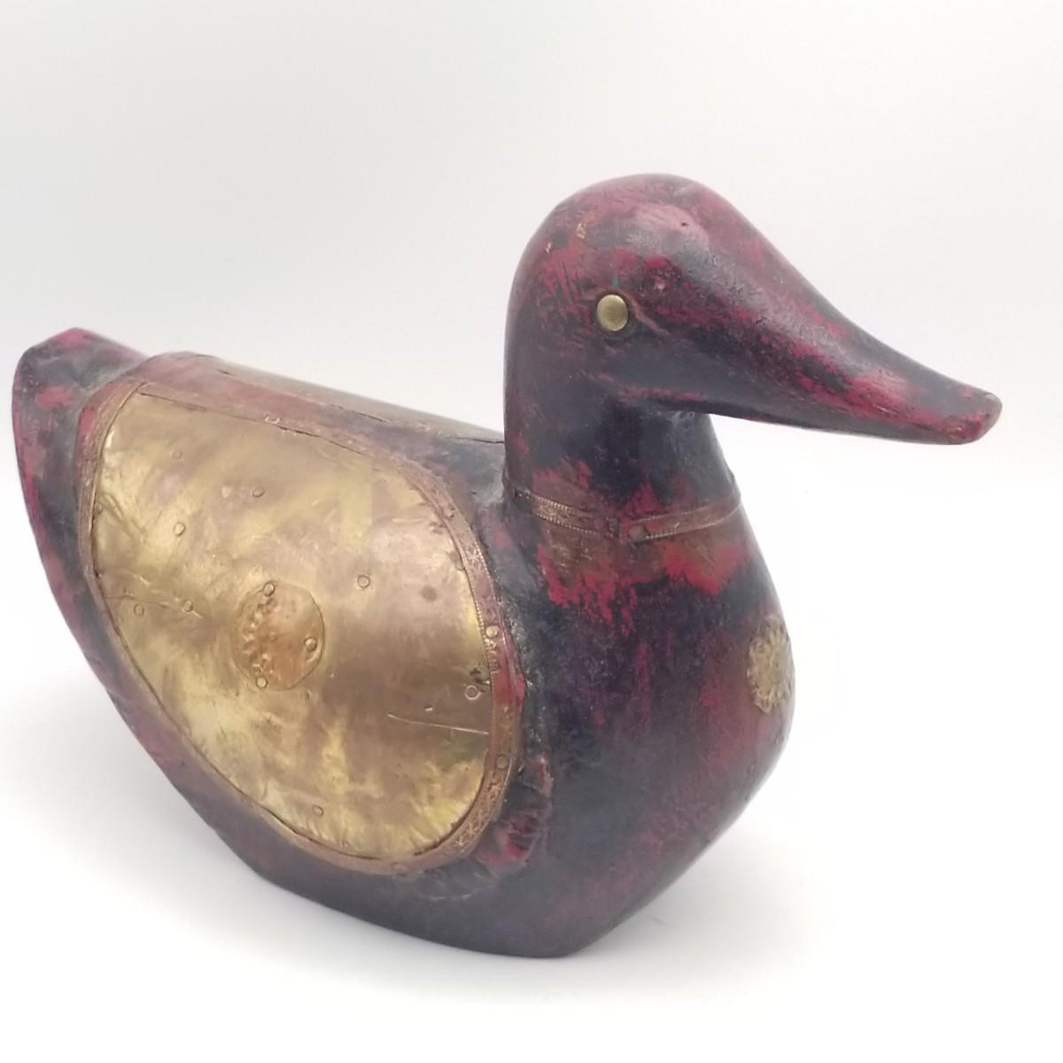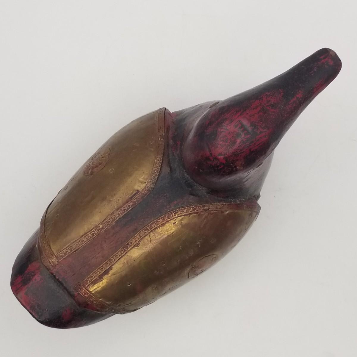 Handcarved Wood & Brass, Made in India, approximately 4 wide x 8 x 6 inches.
