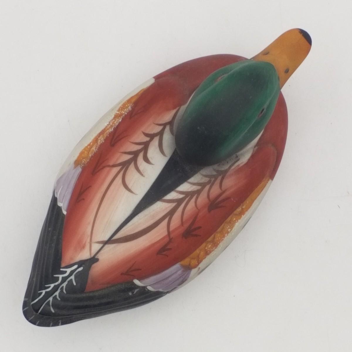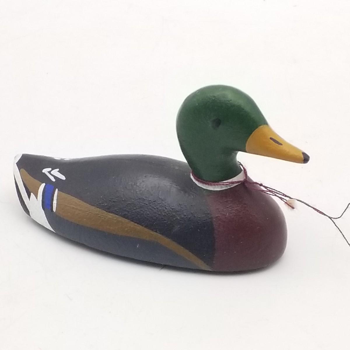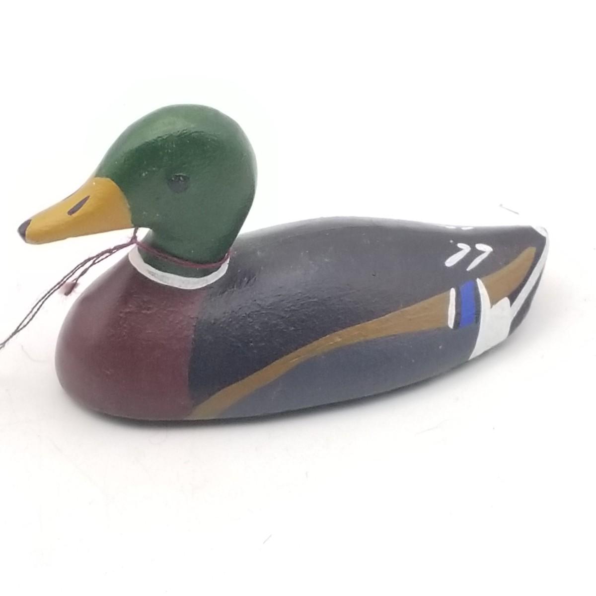 Cast Iron Metal Mallard Drake, Handpainted, Made in the USA, approximately 1 wide x 3 x 1 1/2 inches.