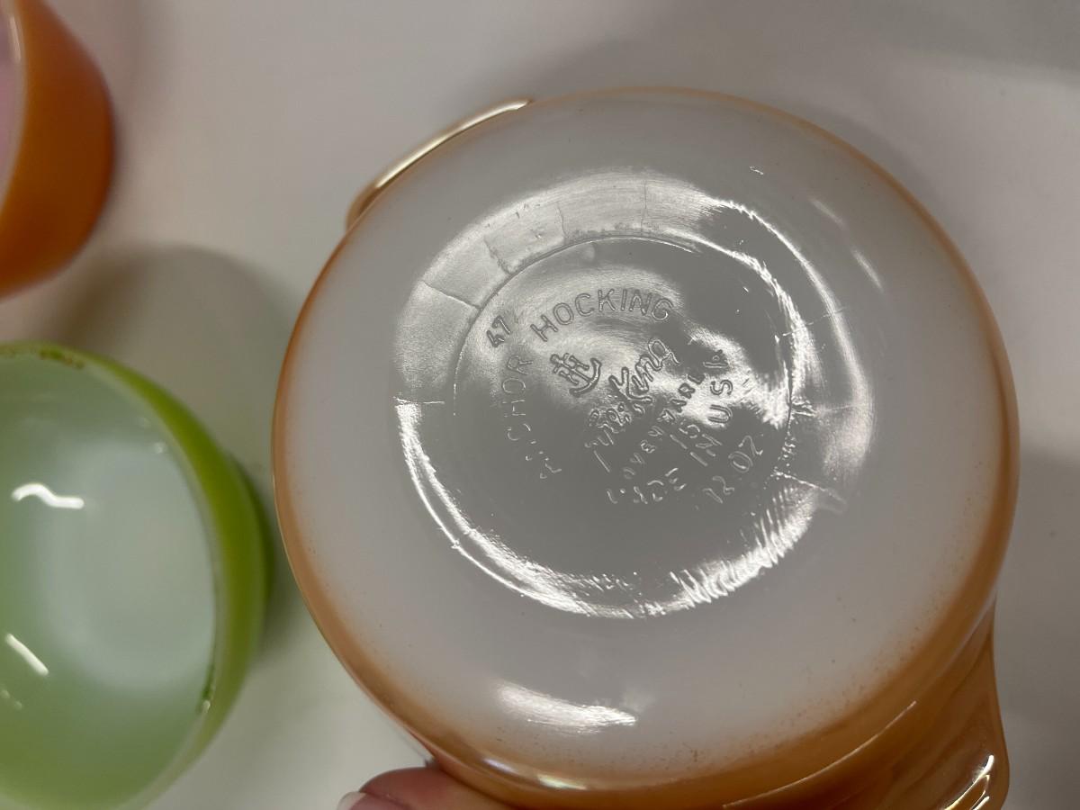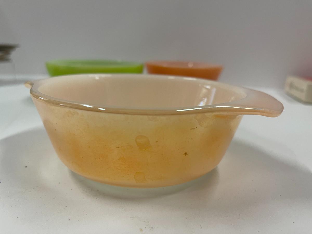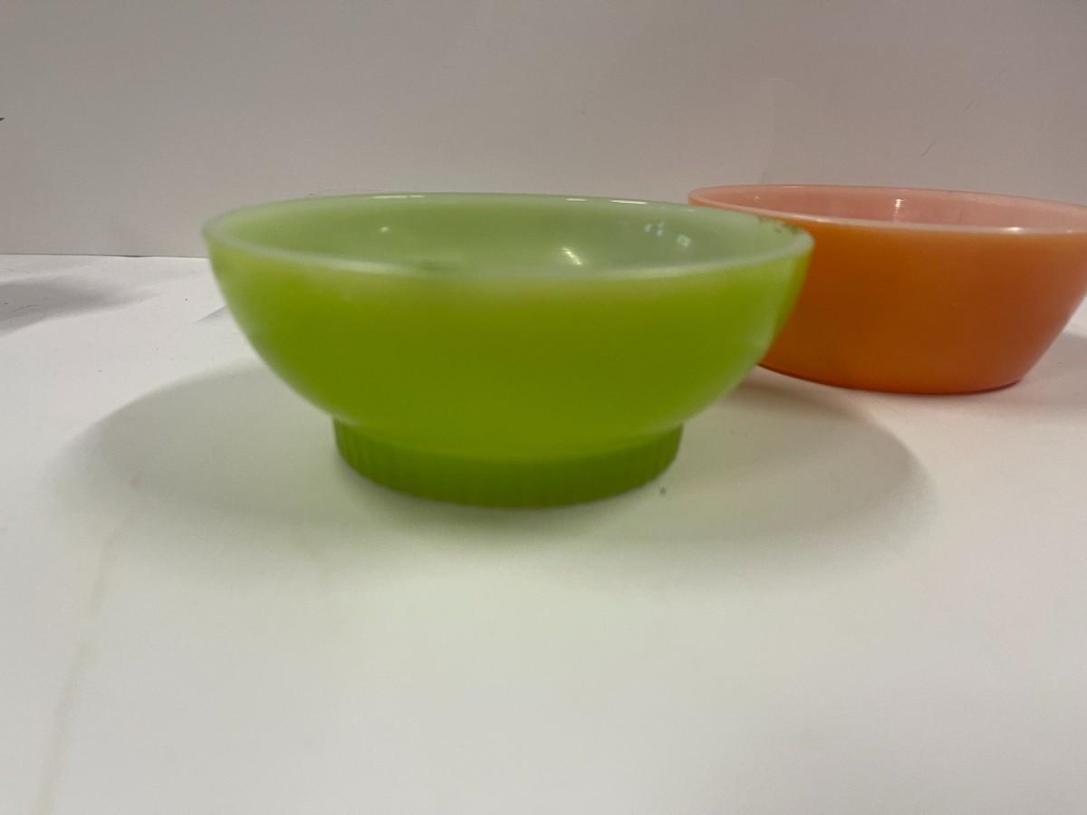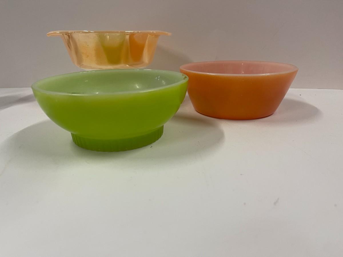 Lot of 3 different Fire King bowls. Each is approx 5" diameter.