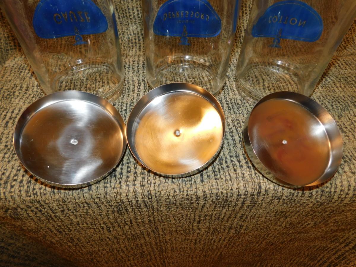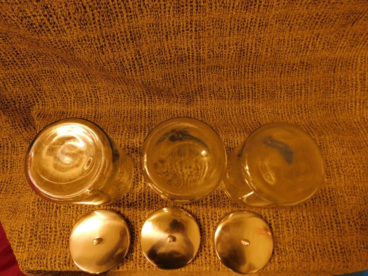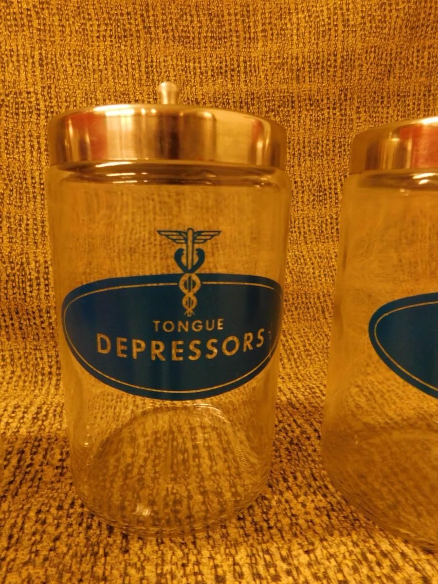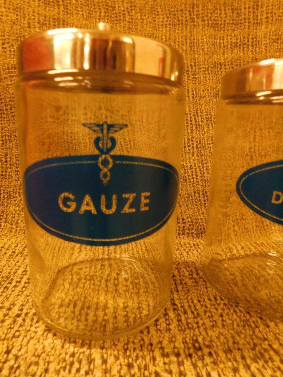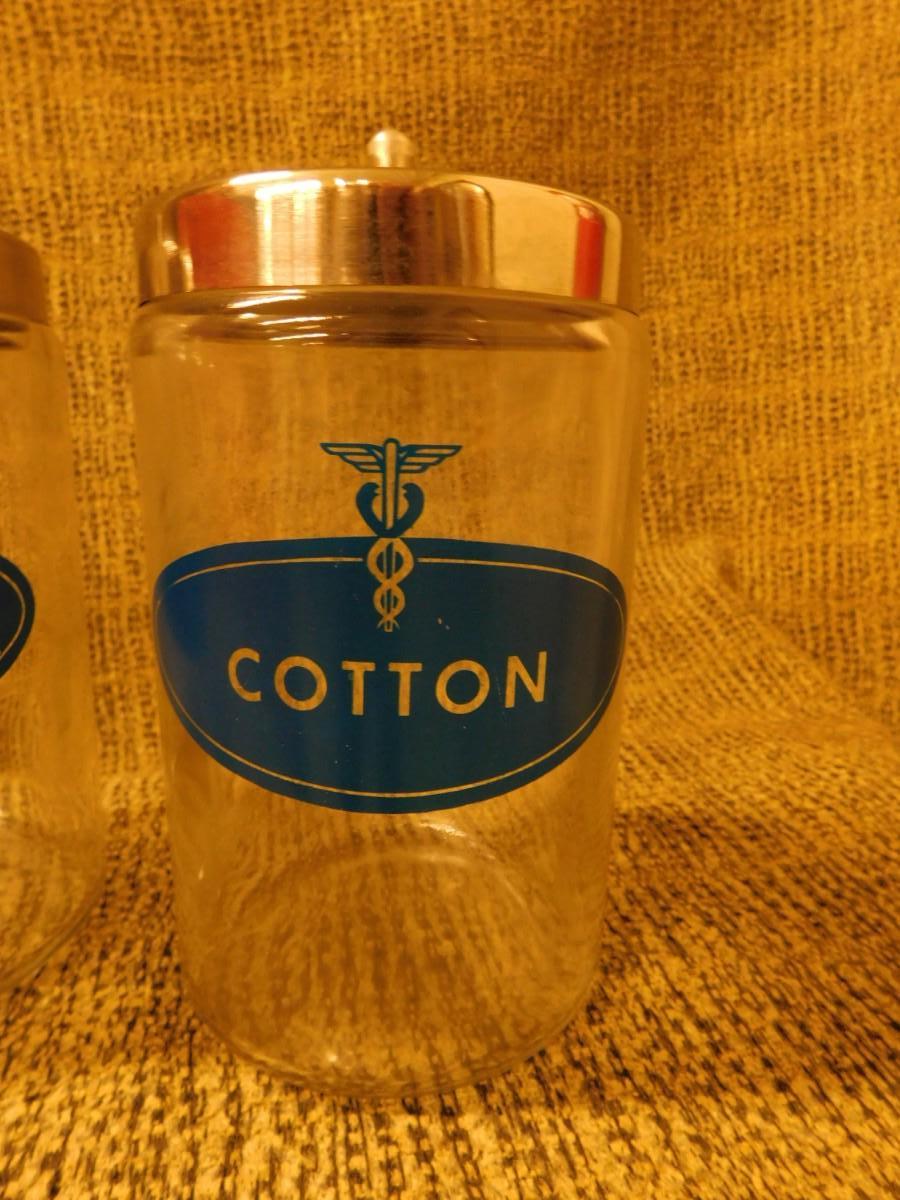 Lot of 3 Vintage Glass Apothecary Jars - Cotton, Gauze, + Tongue Depressors