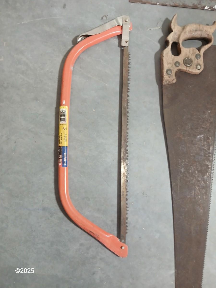 21" Great Neck Bow Saw – Steel frame with orange enamel, tension blade intact