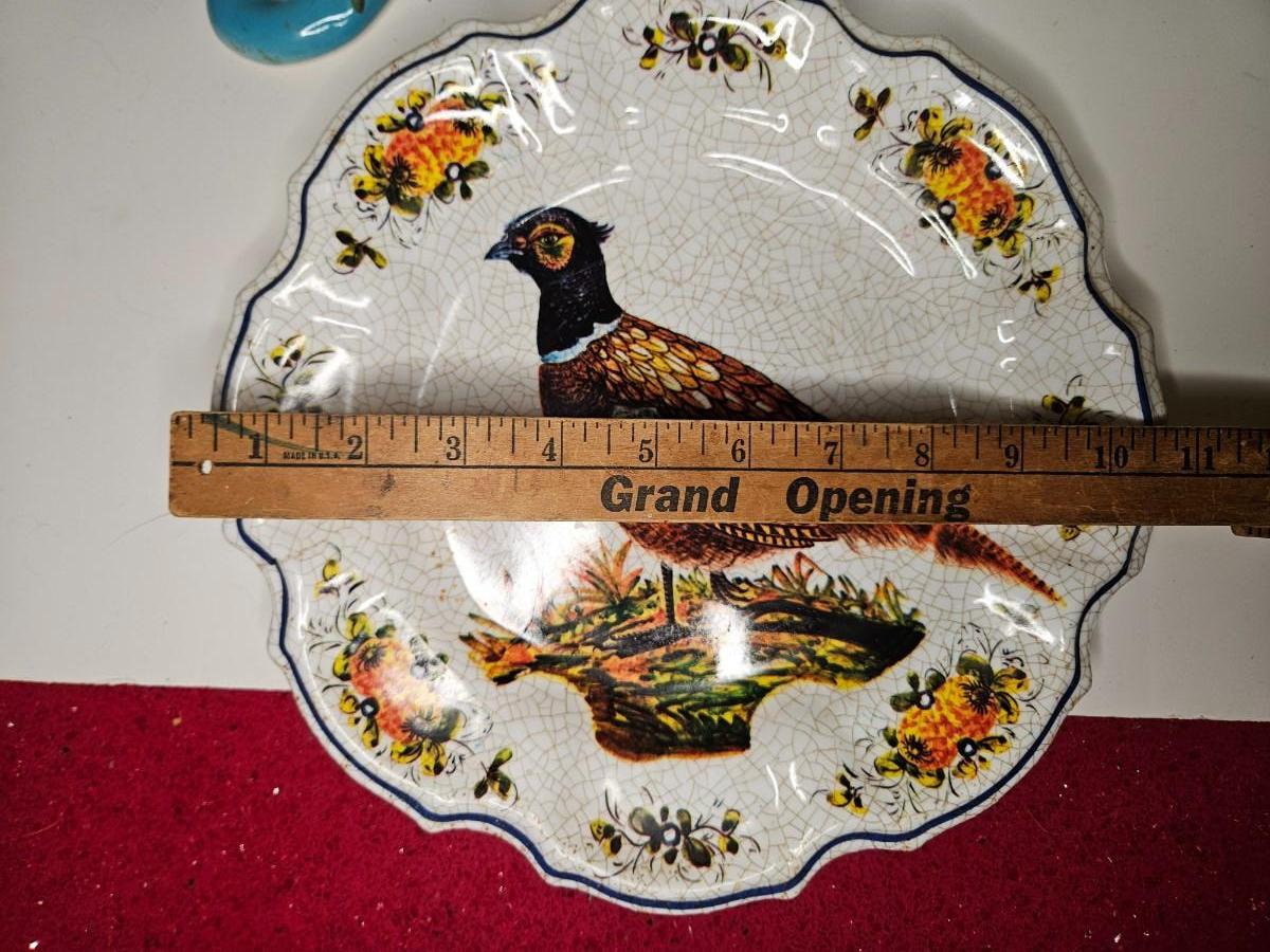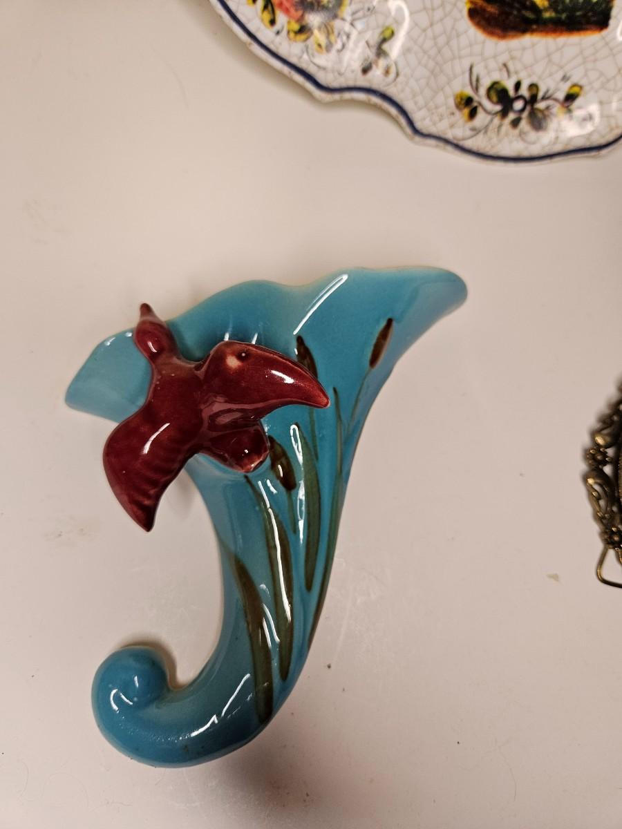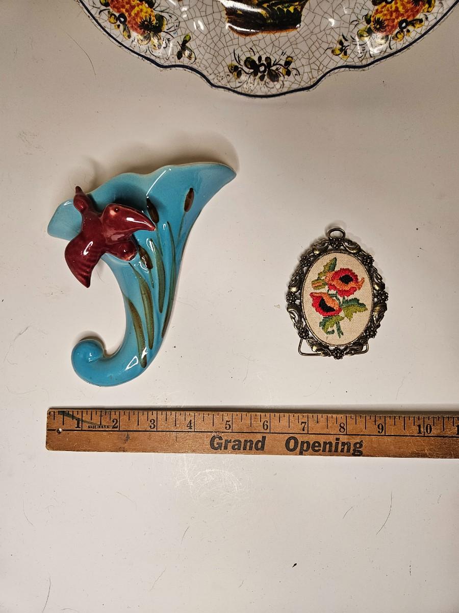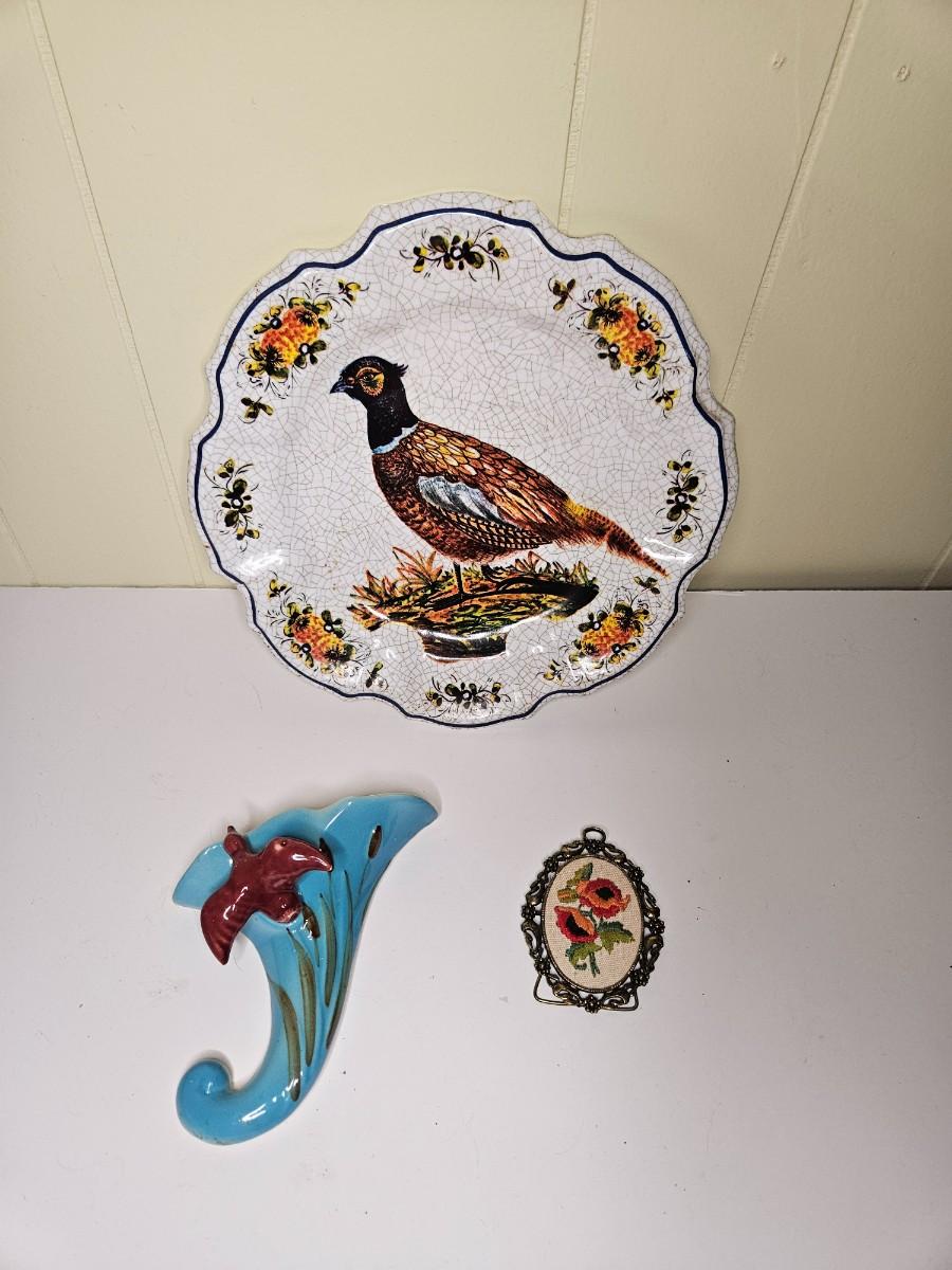 Lot of 3 Vintage Home Decor Items Including Pottery Wall Pocket