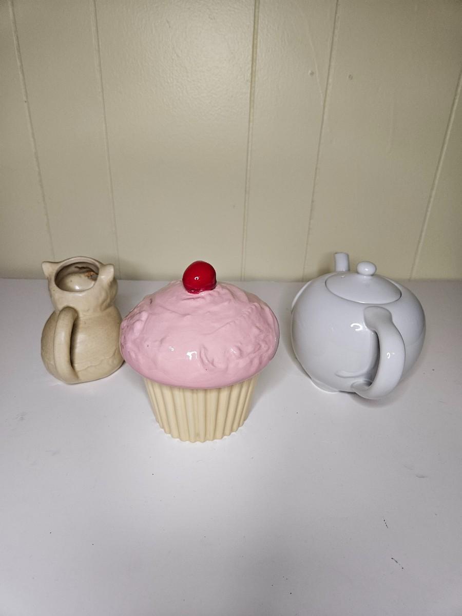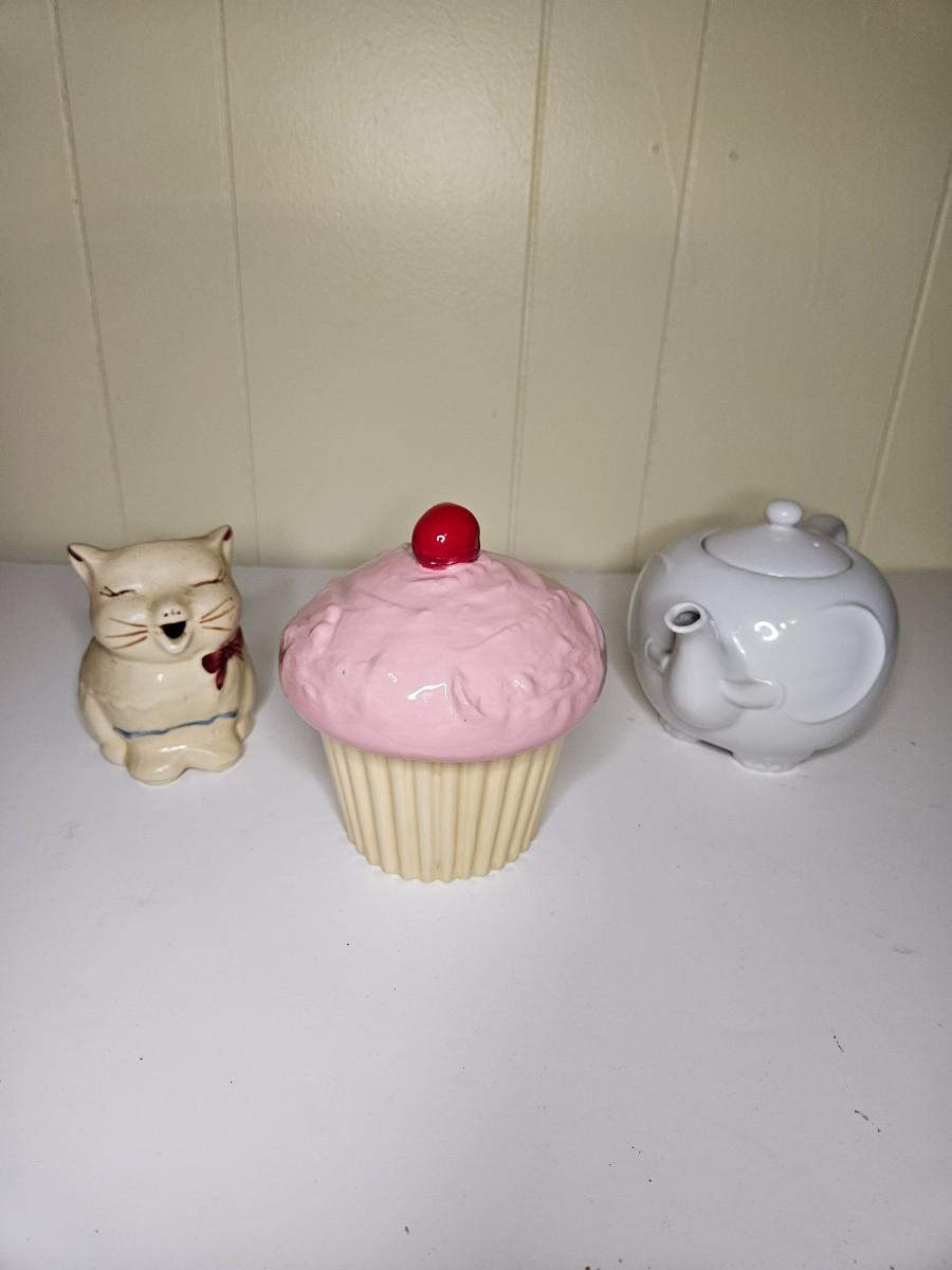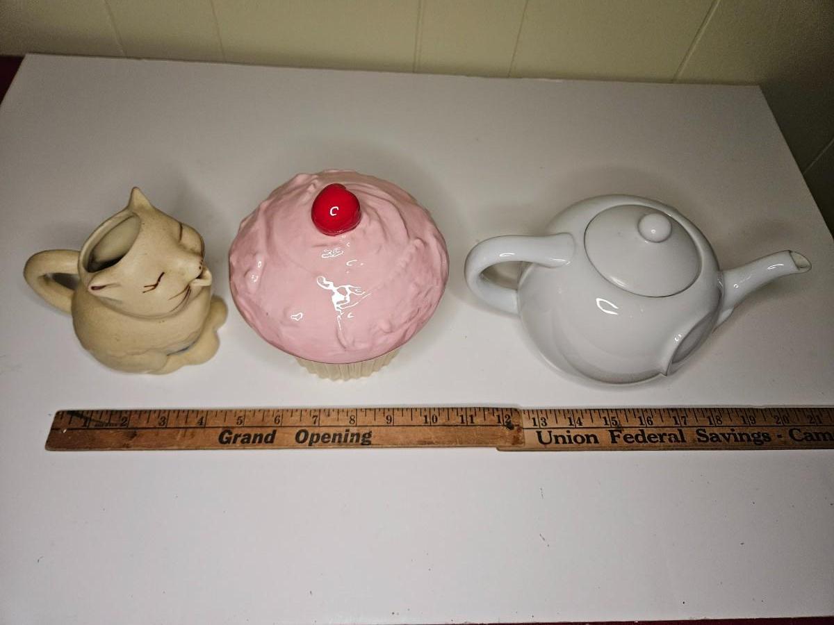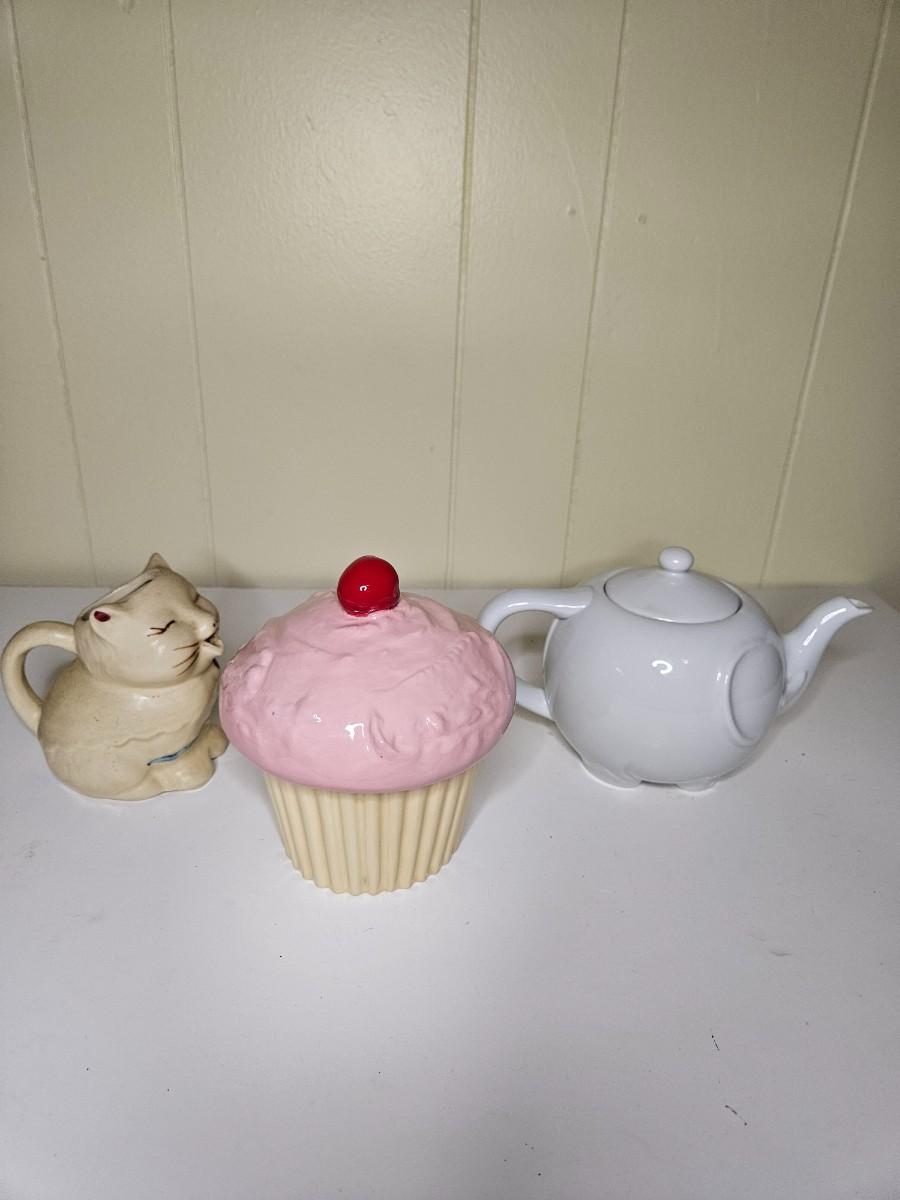 Lot of 3 Vintage Kitchen Items Including Puss N Boots Creamer