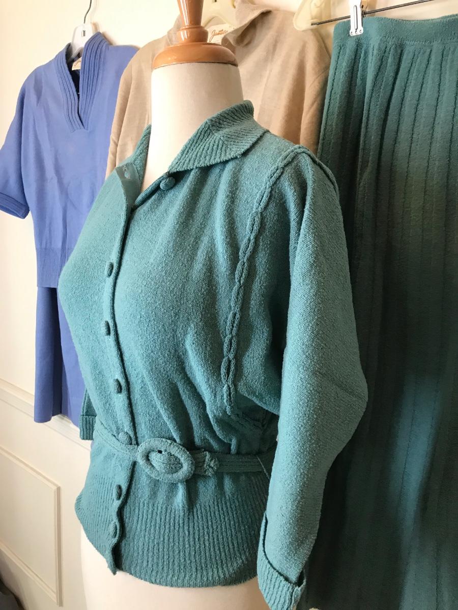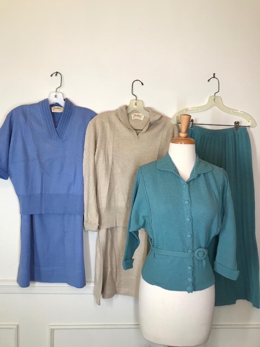 3 sweaters and 3 matching skirts. 2 are Jantzen. In good vintage condition. Tags: vintage clothes, vintage clothing,