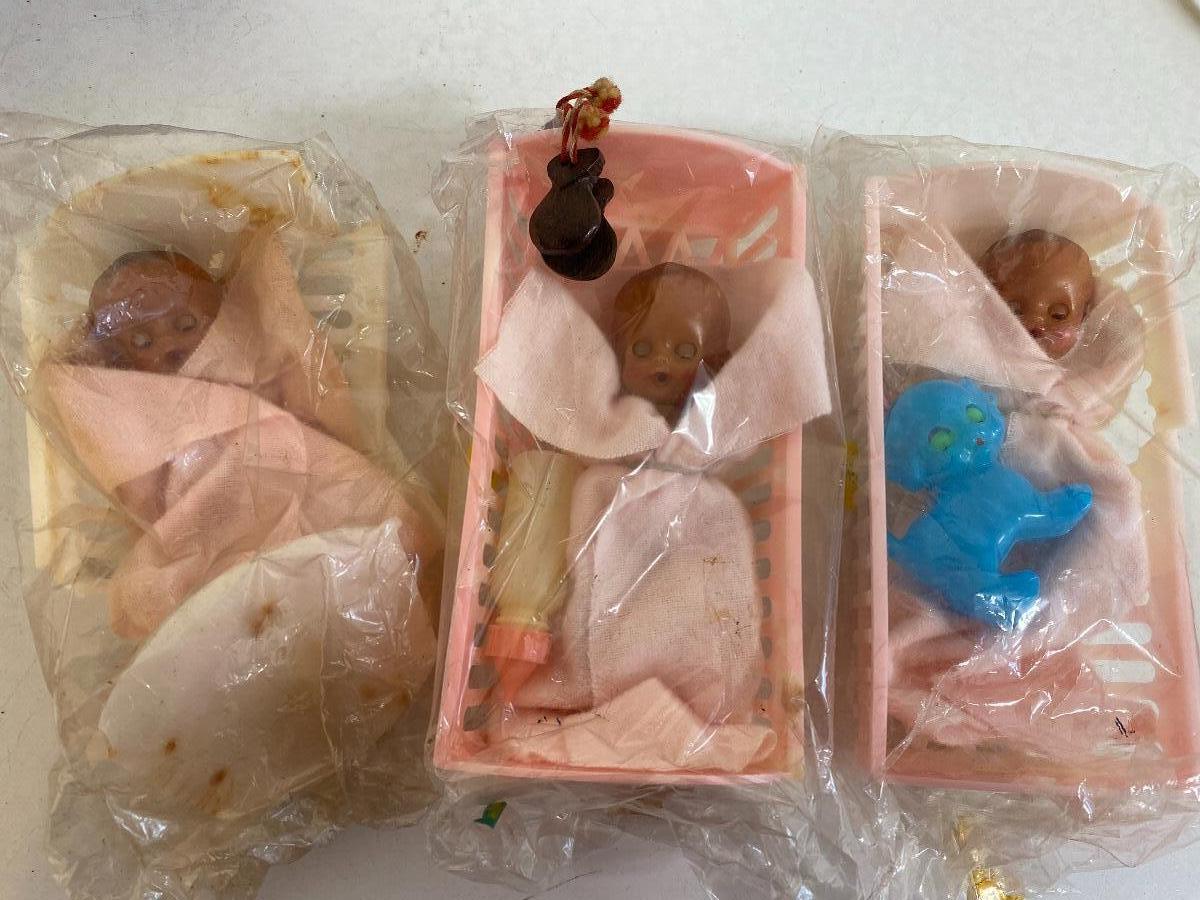 Lot of 3 vintage plastic black babies. Made in Hong Kong. In original packaging and good condition.