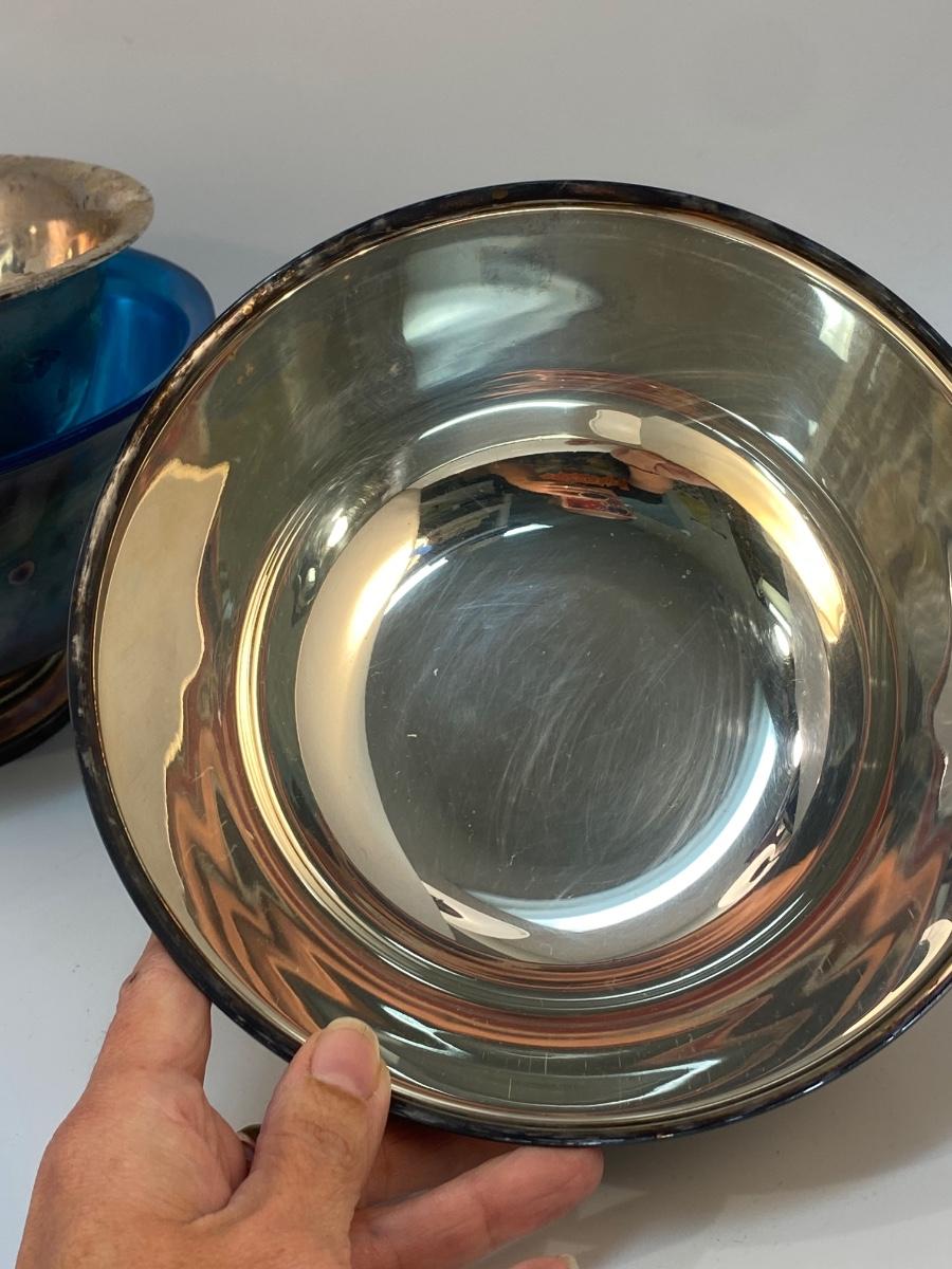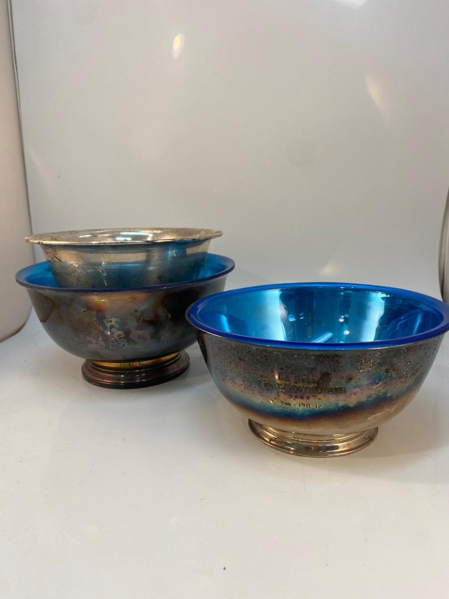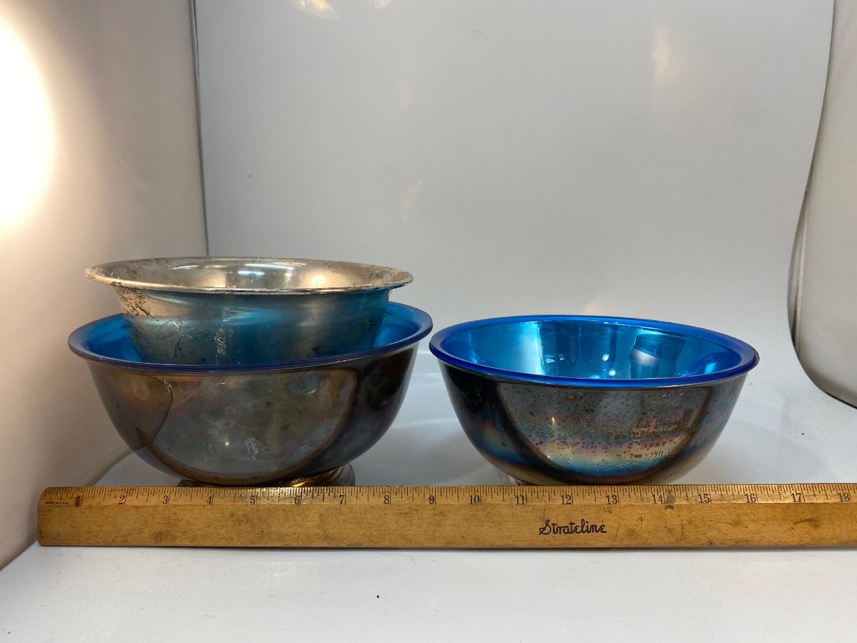 Lot of 3 Vintage Silver Plate Serving Bowls with Plastic Inserts
