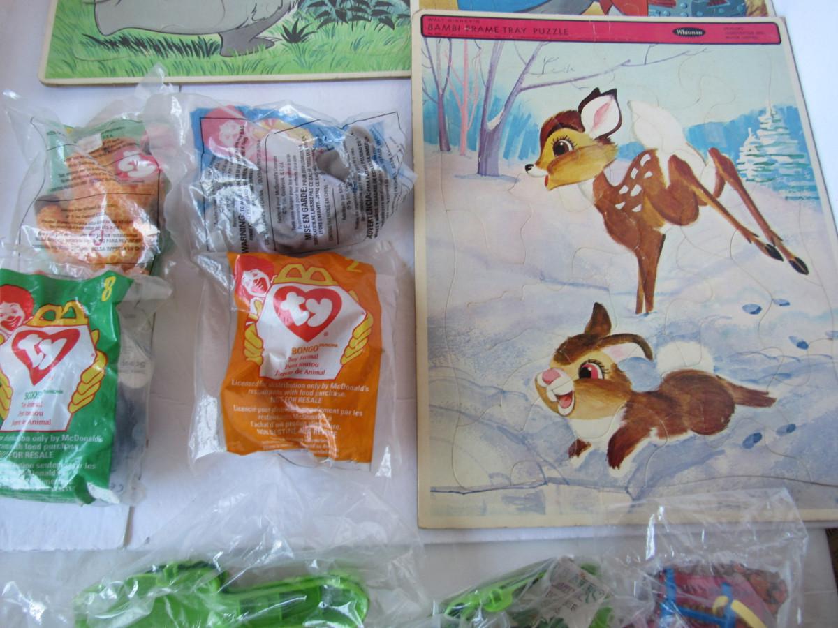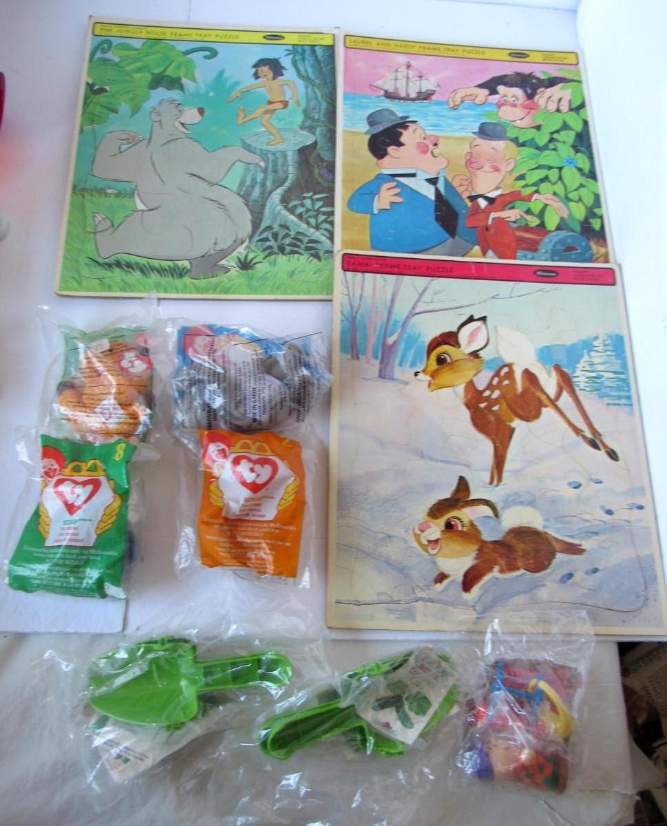 Lot of 3 Vintage Tray Puzzles and McDonalds TY and Other Toys