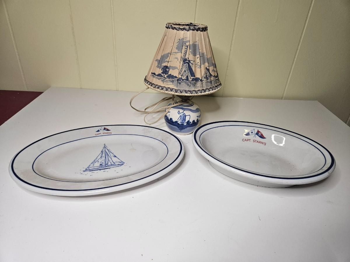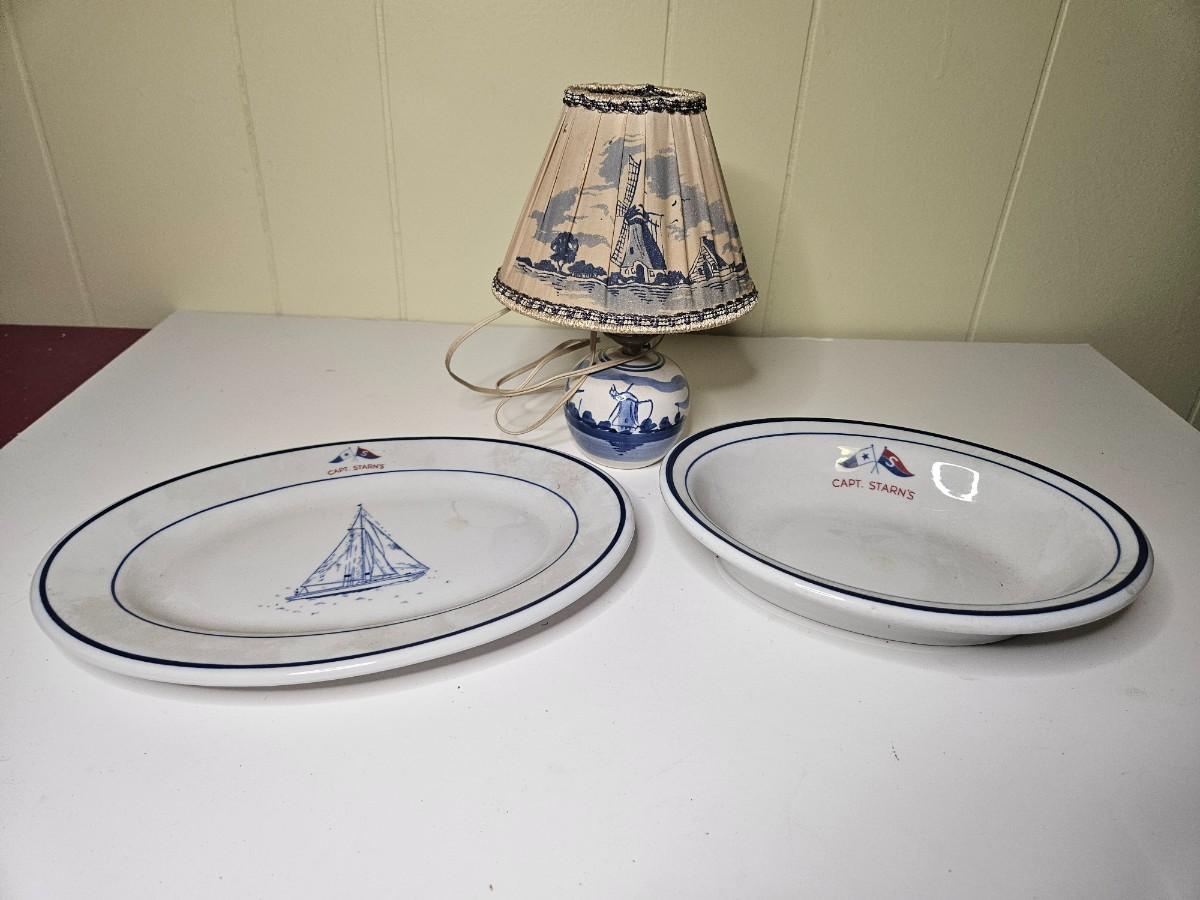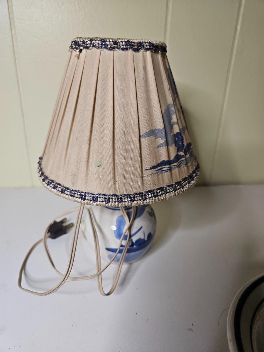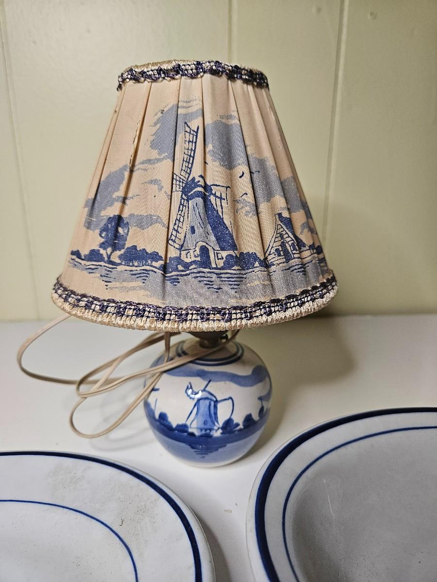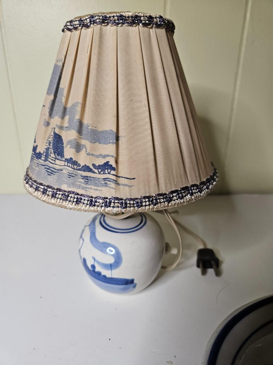 Lot of 3 Vintage/Antique Items Including Delft Style Lamp - Works
