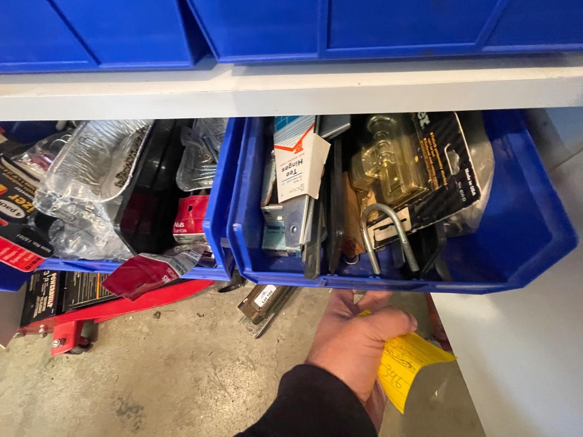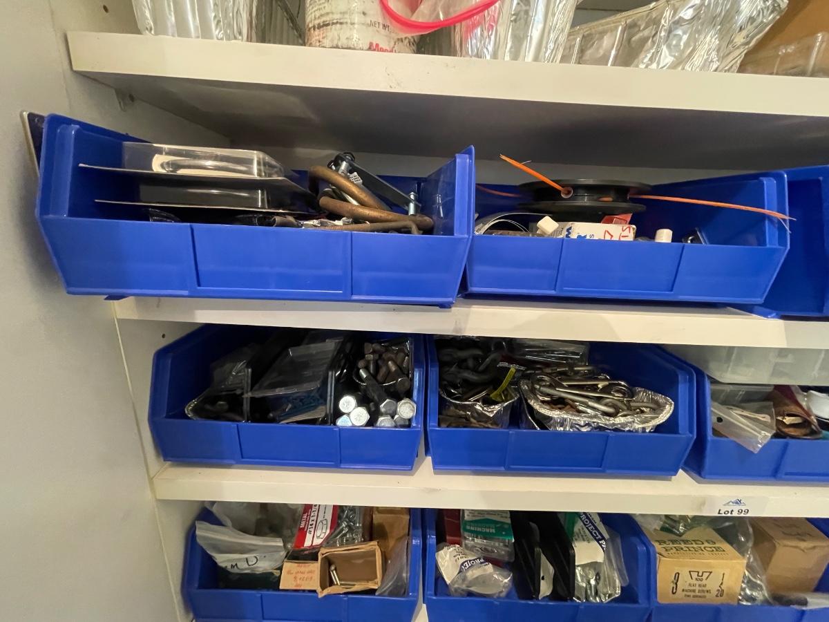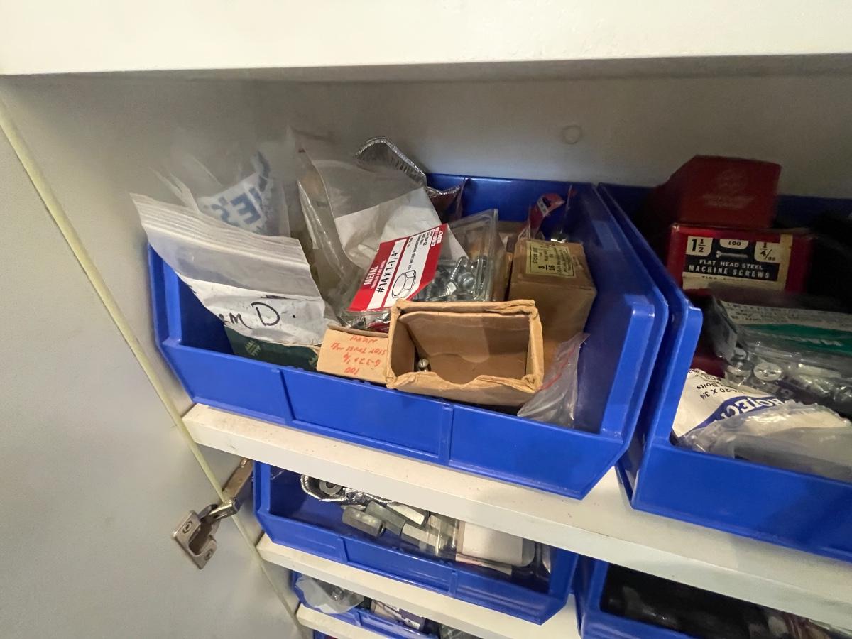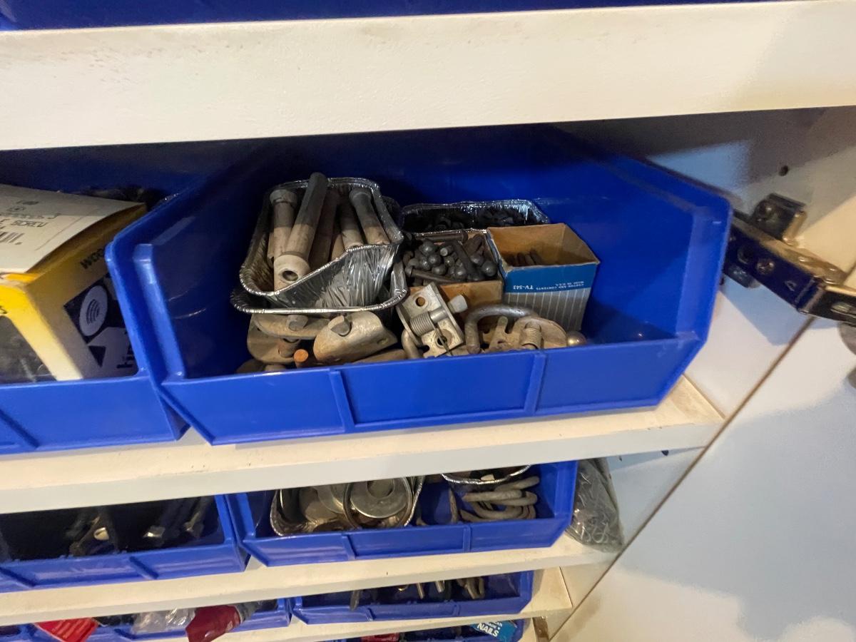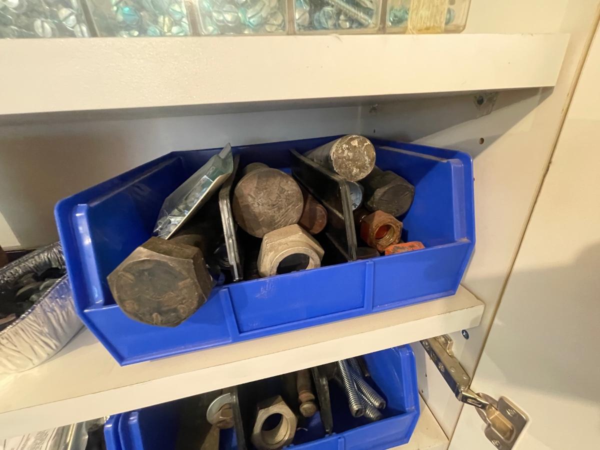 lagbolts/nails/washers/screws/nuts/bolts/clamp & all of the blue bins