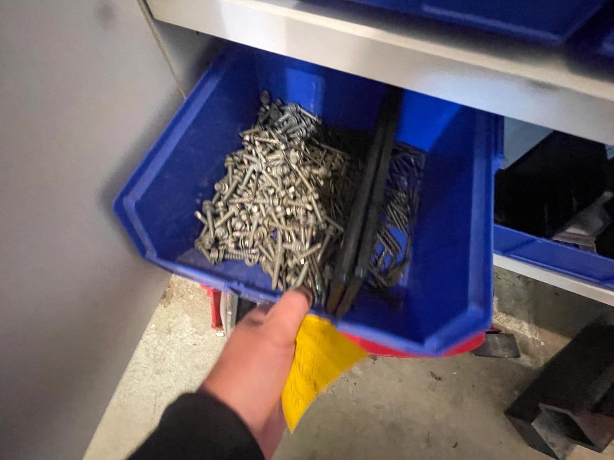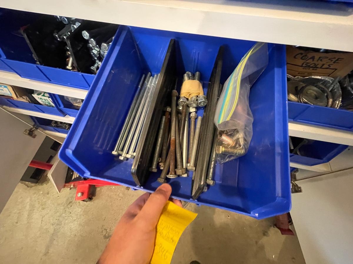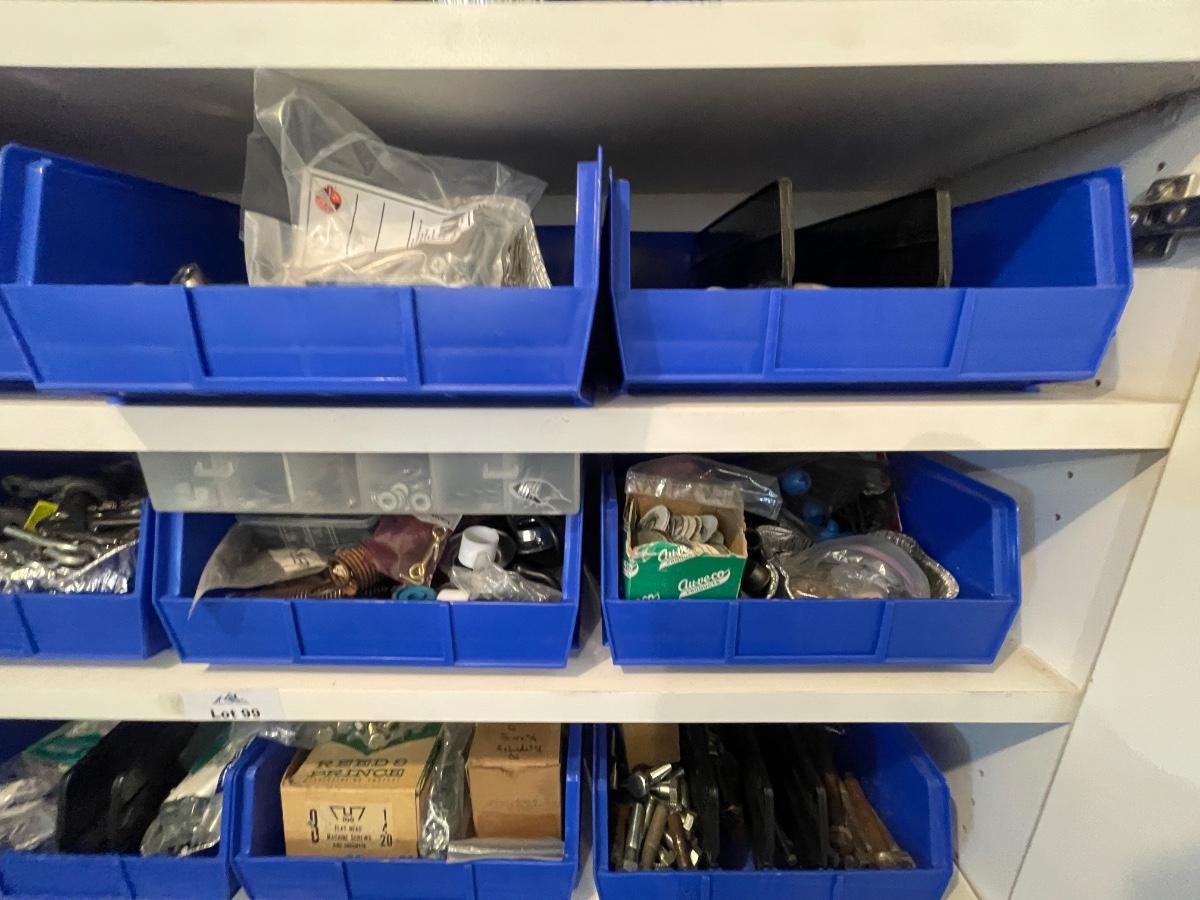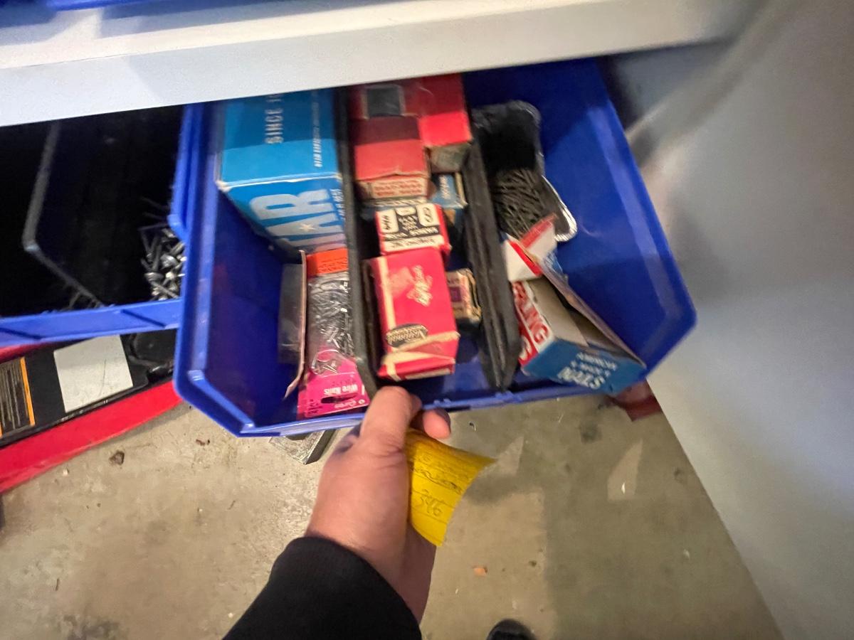 lagbolts/nails/washers/screws/nuts/bolts/clamp & all of the blue bins