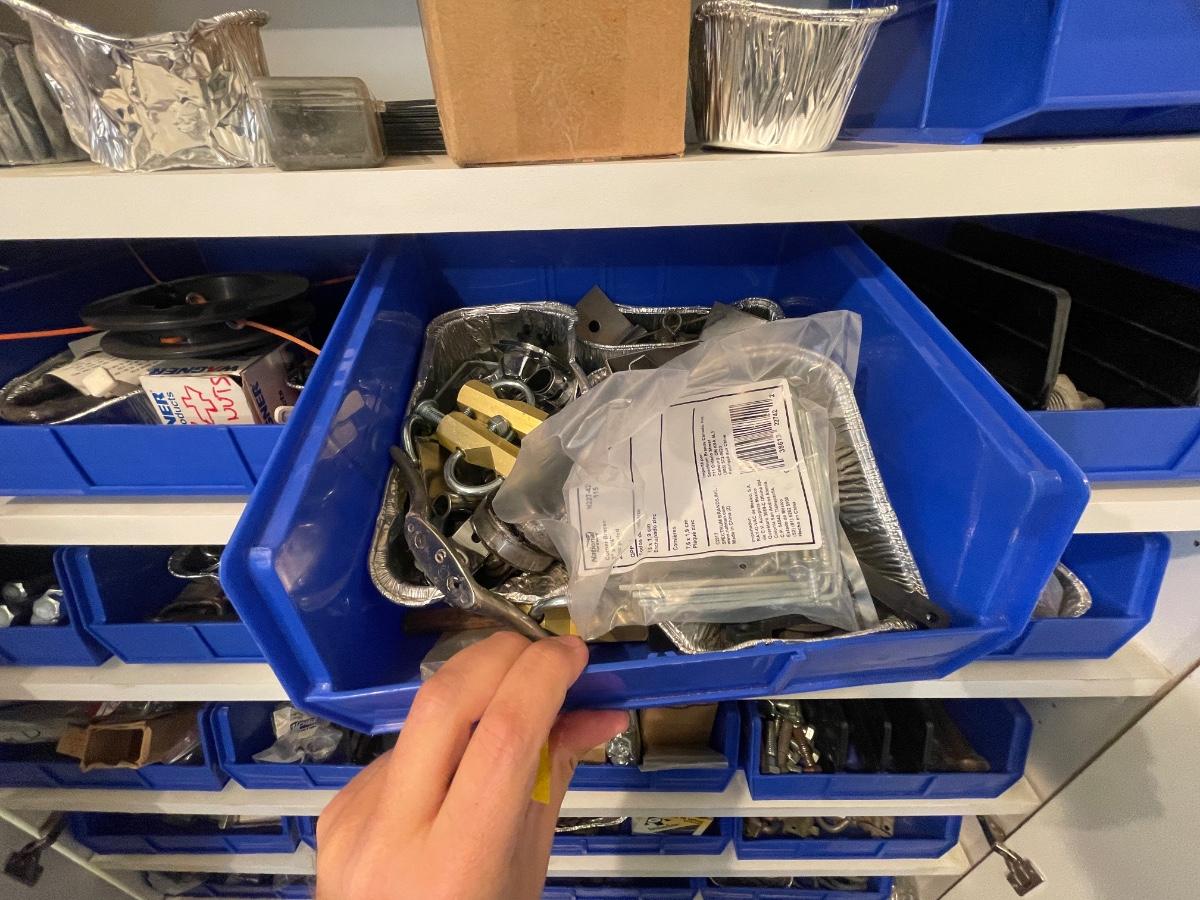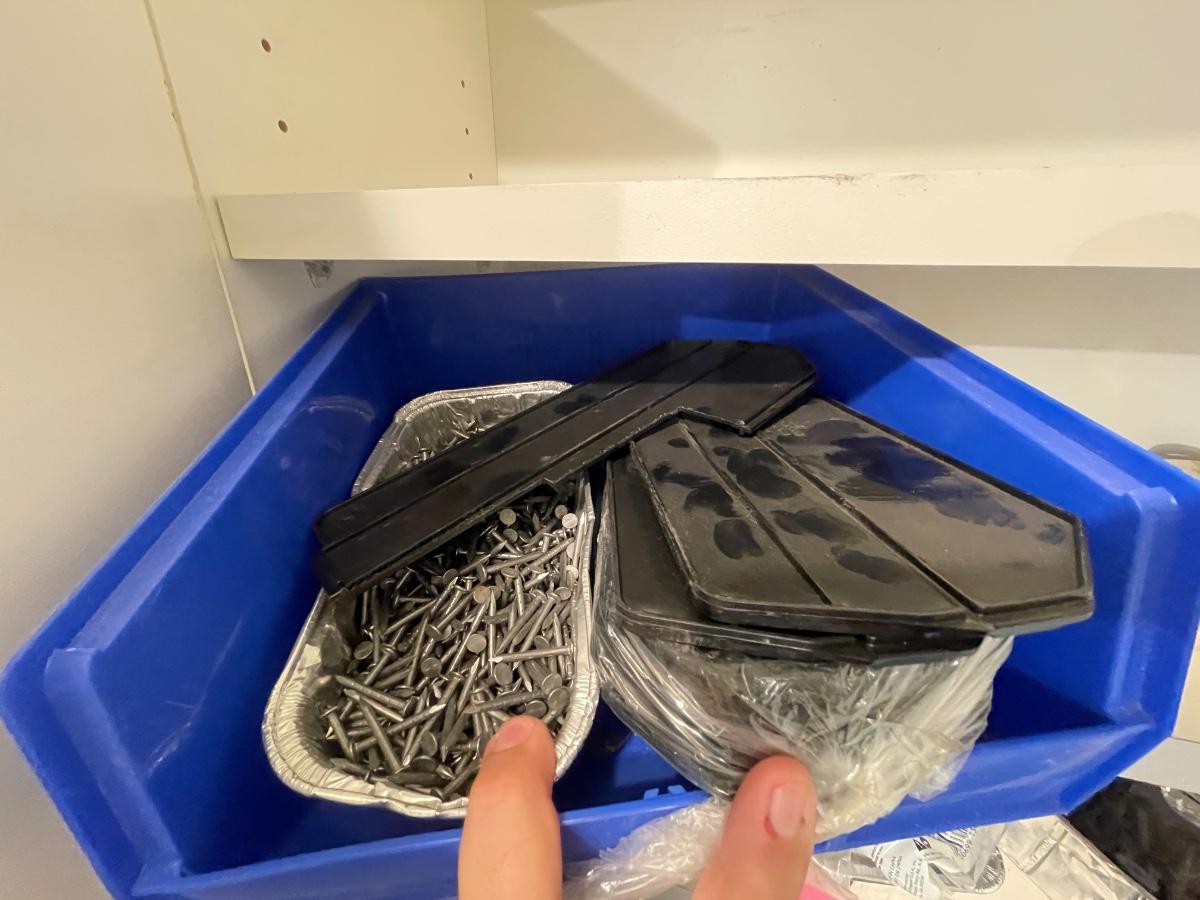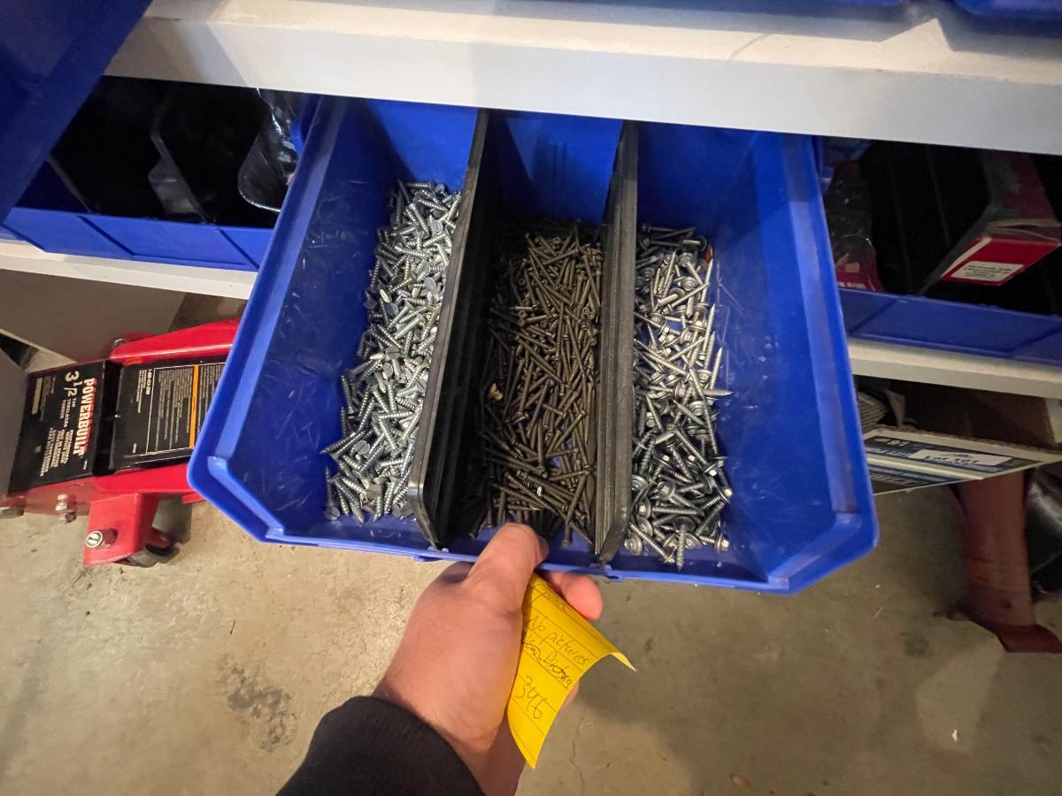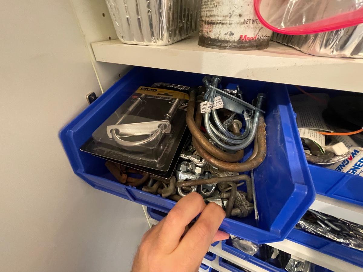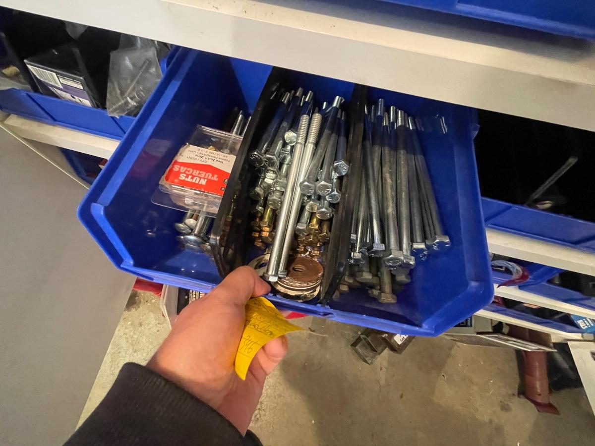 lagbolts/nails/washers/screws/nuts/bolts/clamp & all of the blue bins