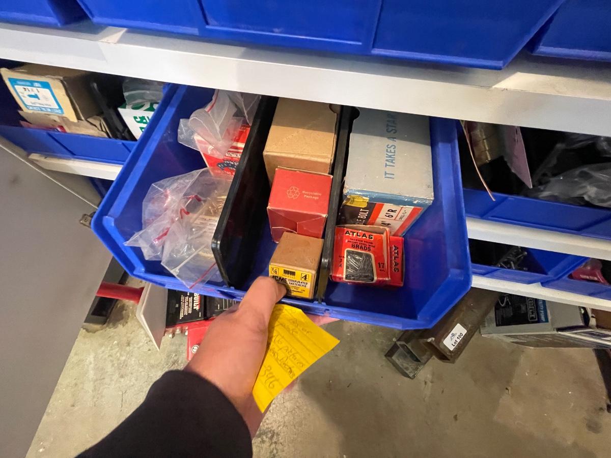 Lot of 30 bins of various hardware - lots here & some large hardware
