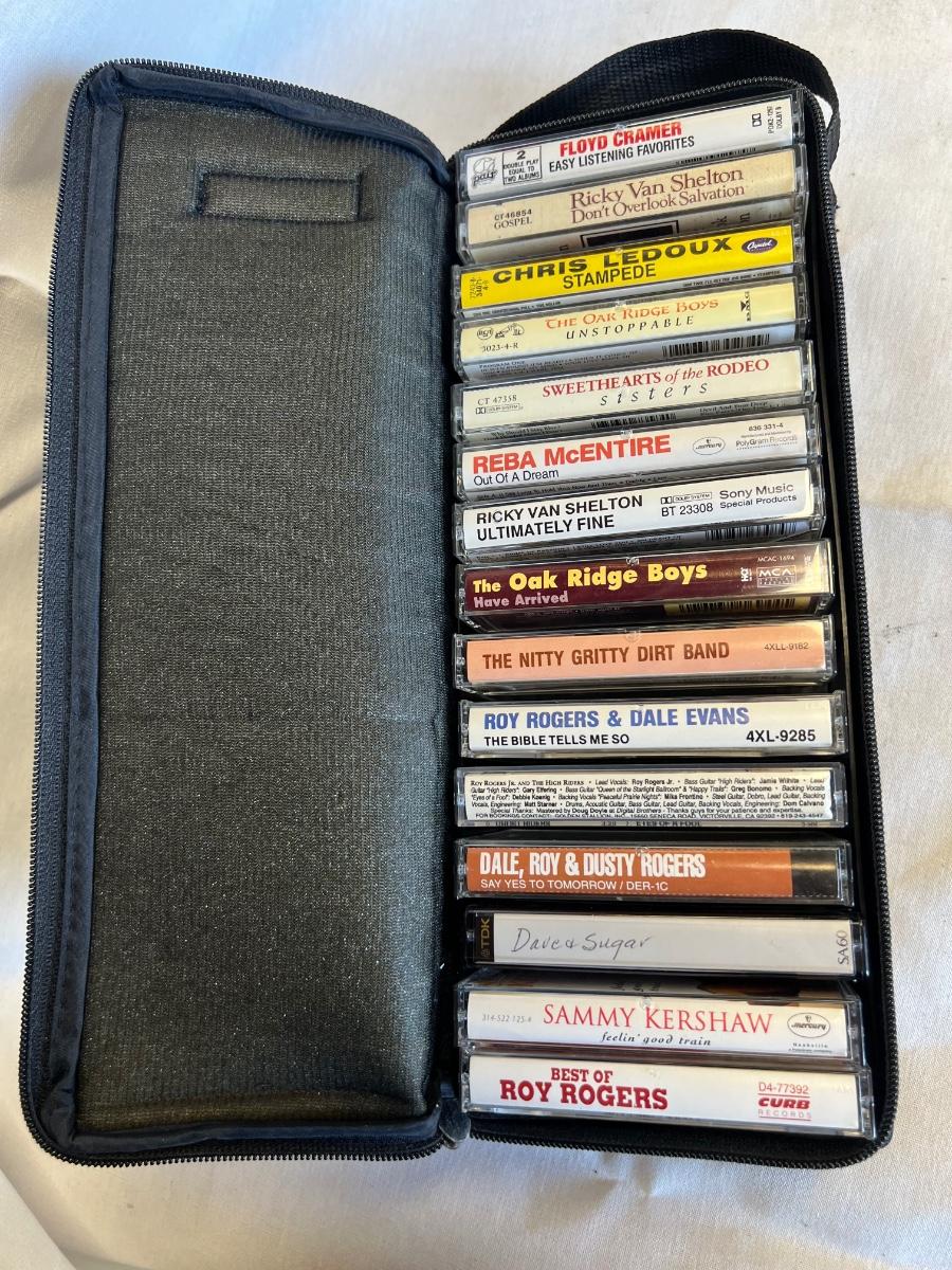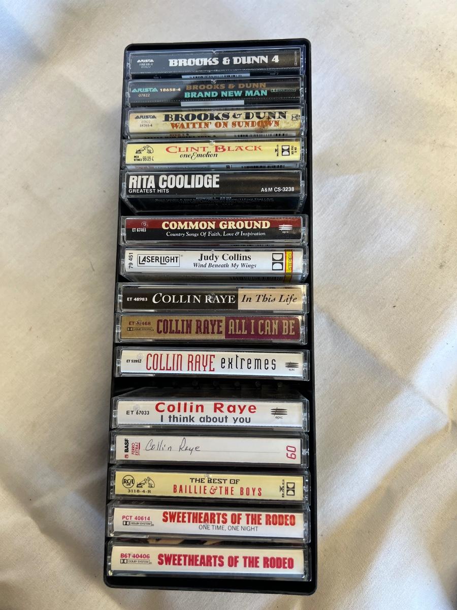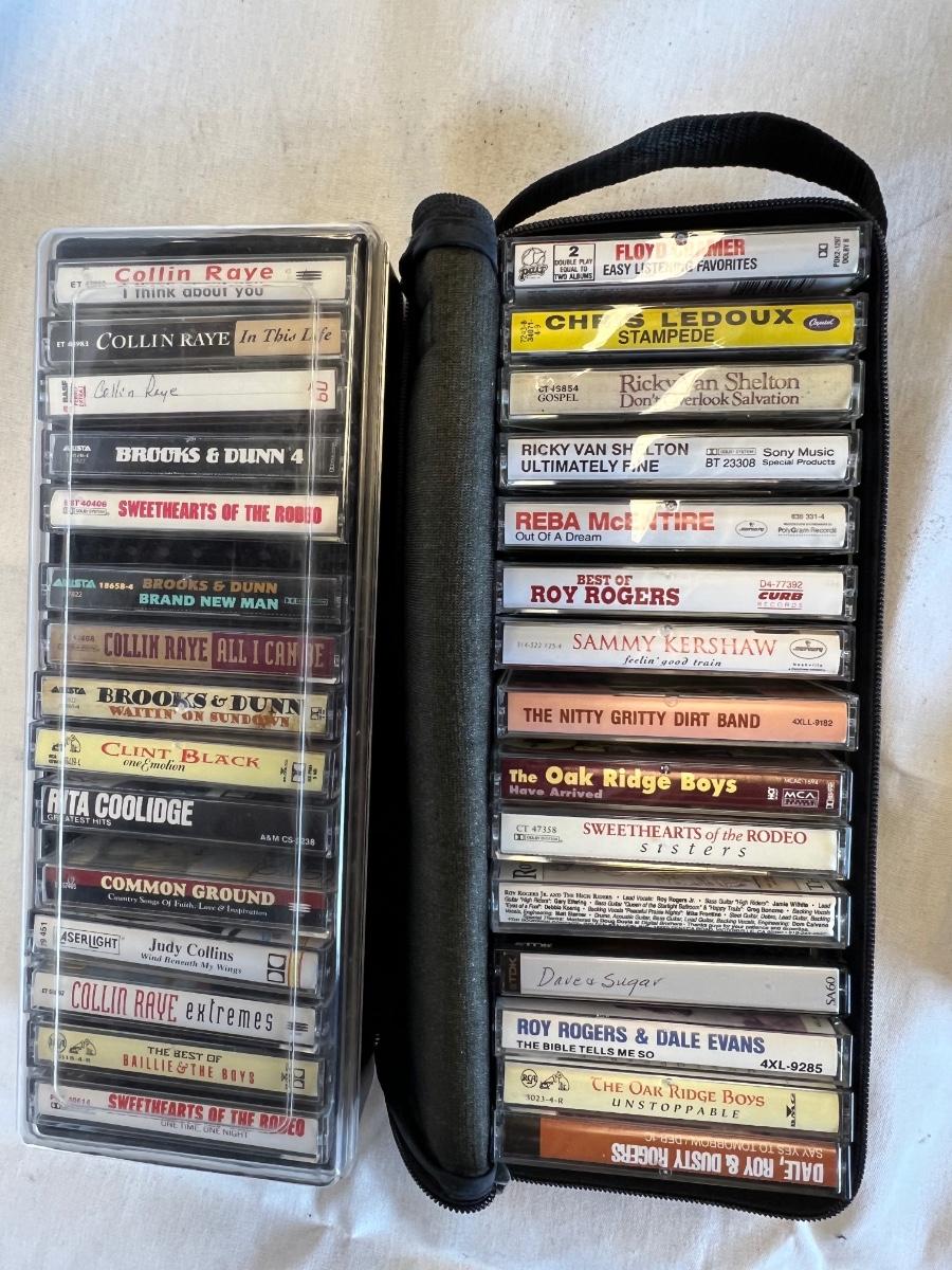 Two protective cases contain cassettes from artists such as Reba McIntyre, Oakridge Boys, Collin Raye, Brooks and Dunn, and more!