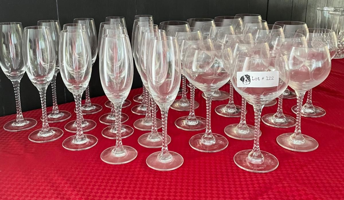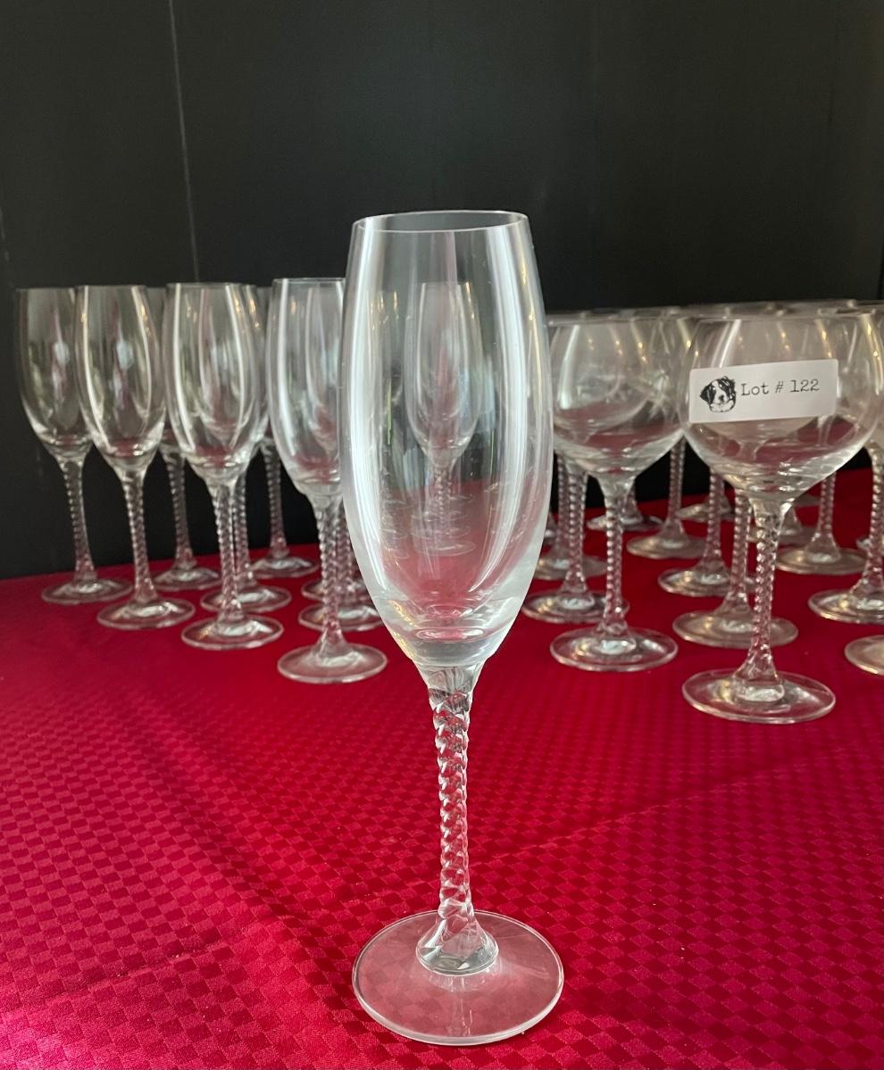 Lot of 32 Glasses - 15 Champagne Flutes and 17 Wine Glasses
