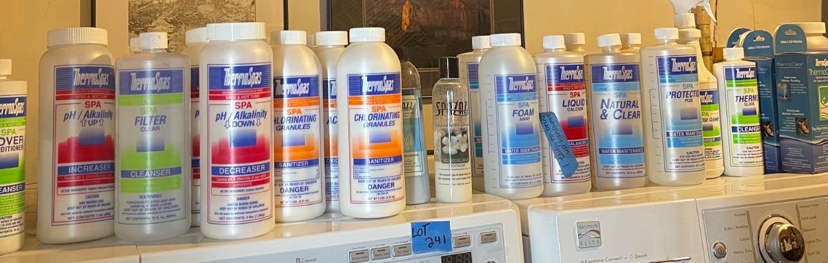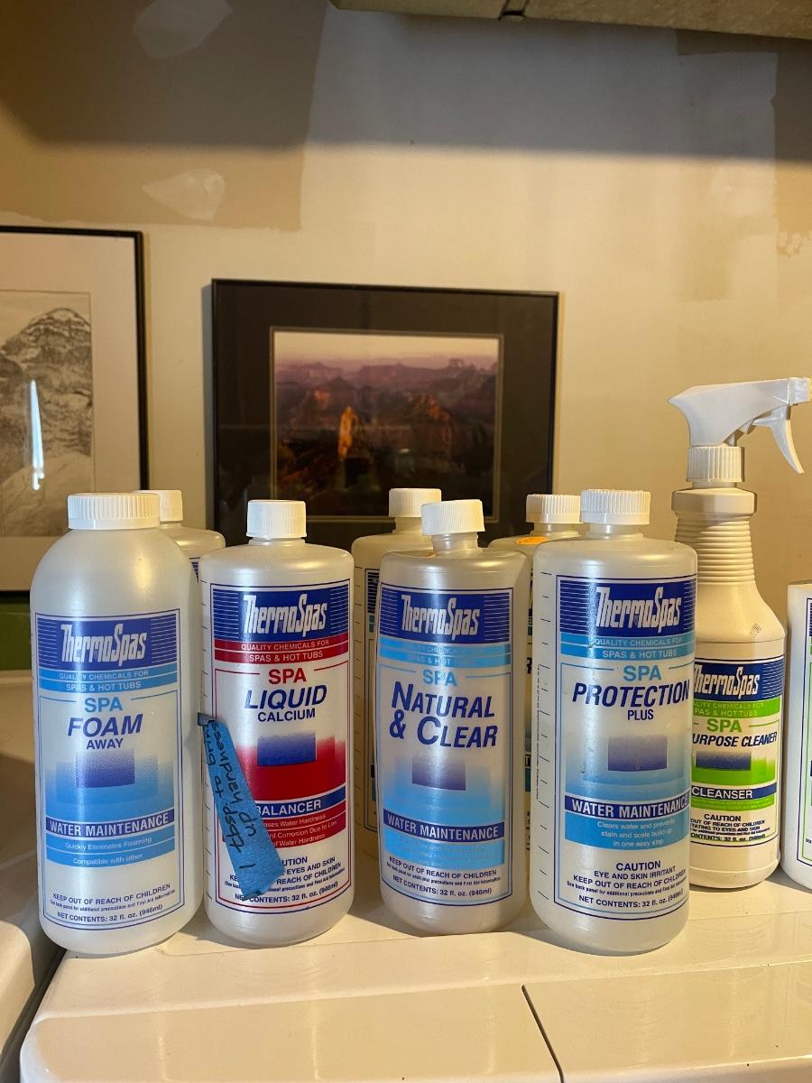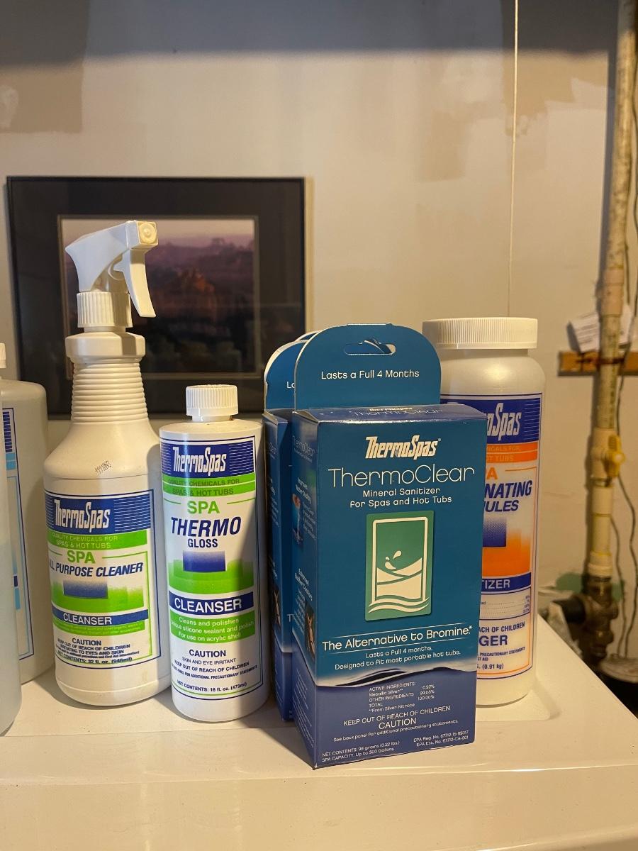 Lot of (33) ThermoSpas chemicals for Hot-tubs and (3) filters