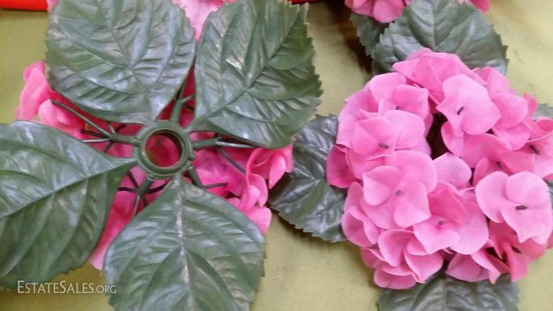 Lot of 4 1950s Pink plastic hydrangea flower Taper Candle Rings