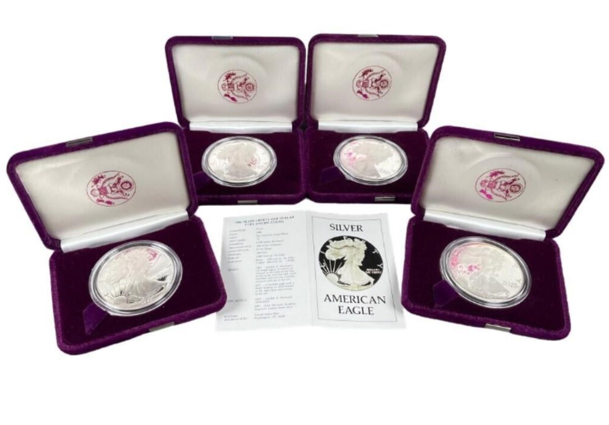 Lot of 4 1986 "S" American Eagle Silver Dollar Proofs