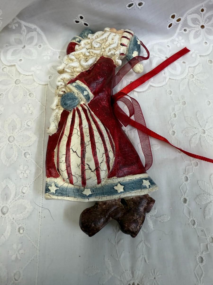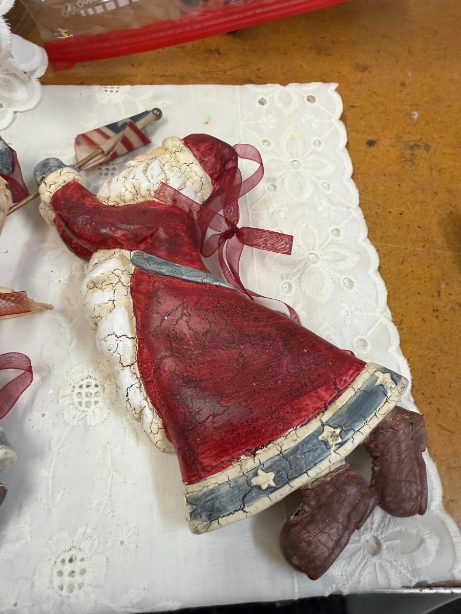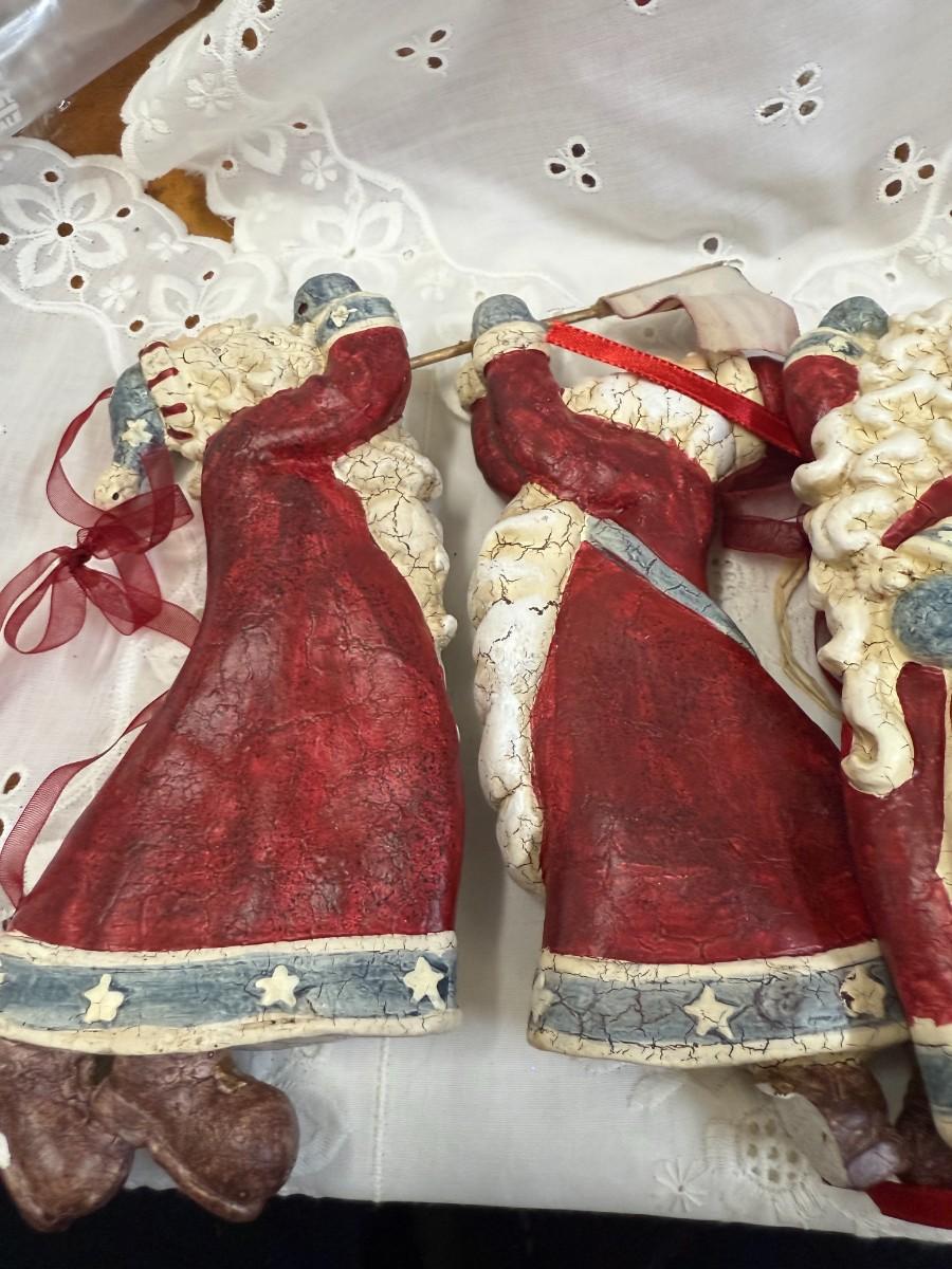 Embrace the spirit of patriotism this holiday season with this delightful lot of 4 America Santa ornaments. Each Santa figure is dressed in festive colors and embodies the charm of American traditions.