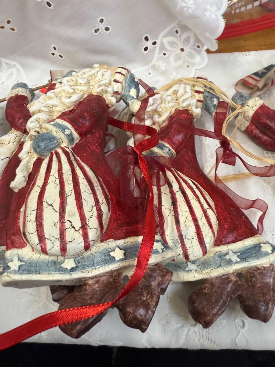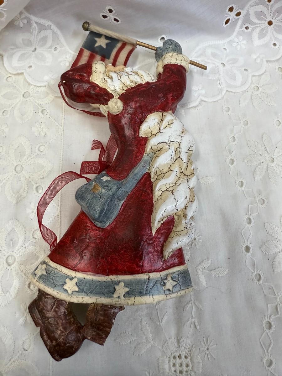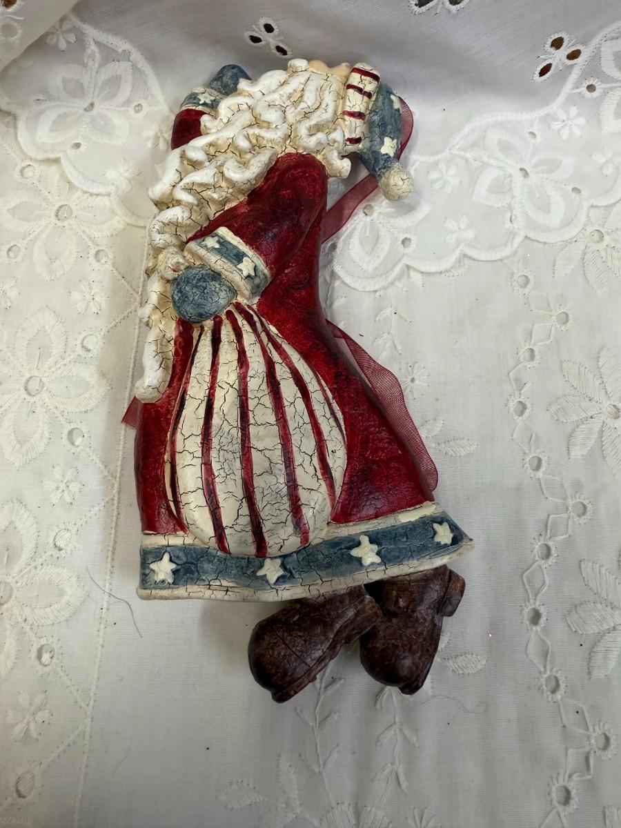 Embrace the spirit of patriotism this holiday season with this delightful lot of 4 America Santa ornaments. Each Santa figure is dressed in festive colors and embodies the charm of American traditions.