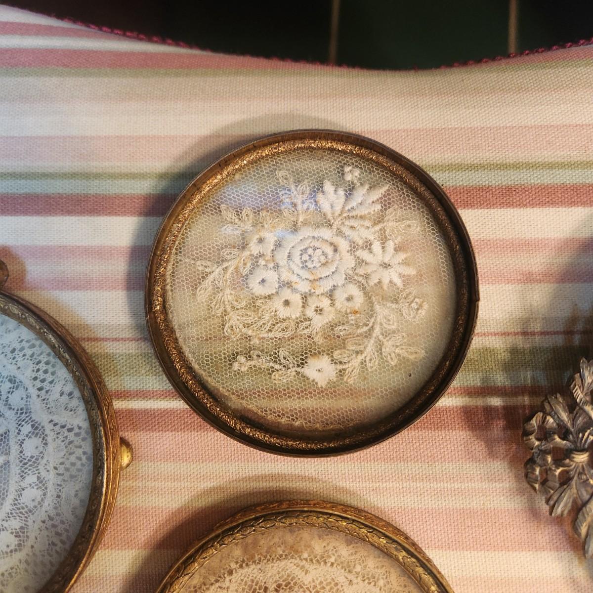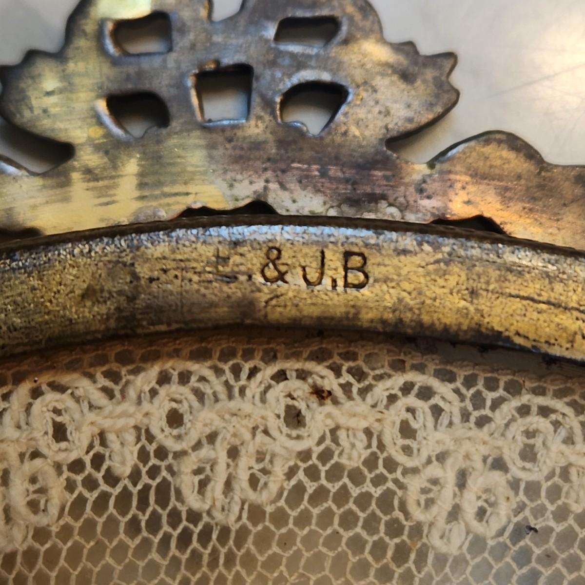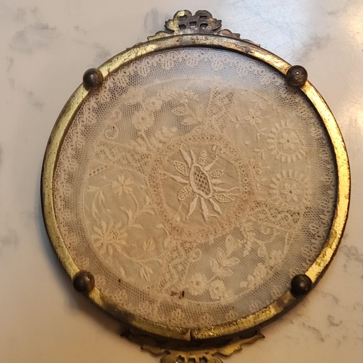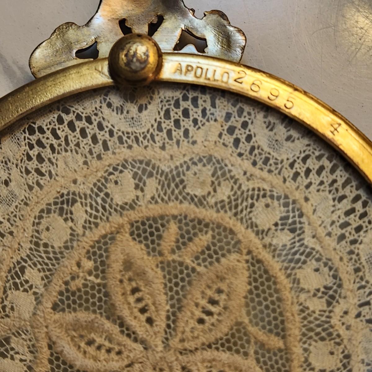 Lot of 4 Antique Brass & Glass w Lace Vanity Trays Apollo 2695 , E & J.B.