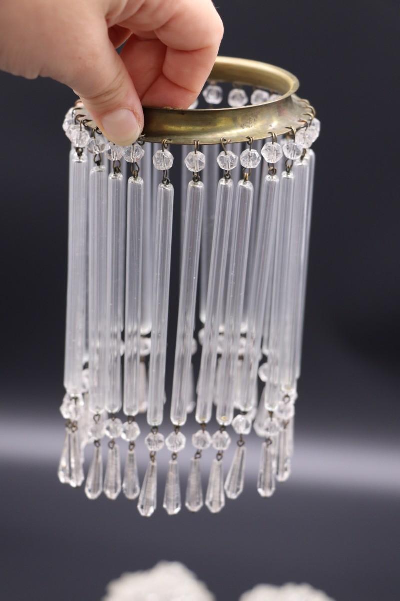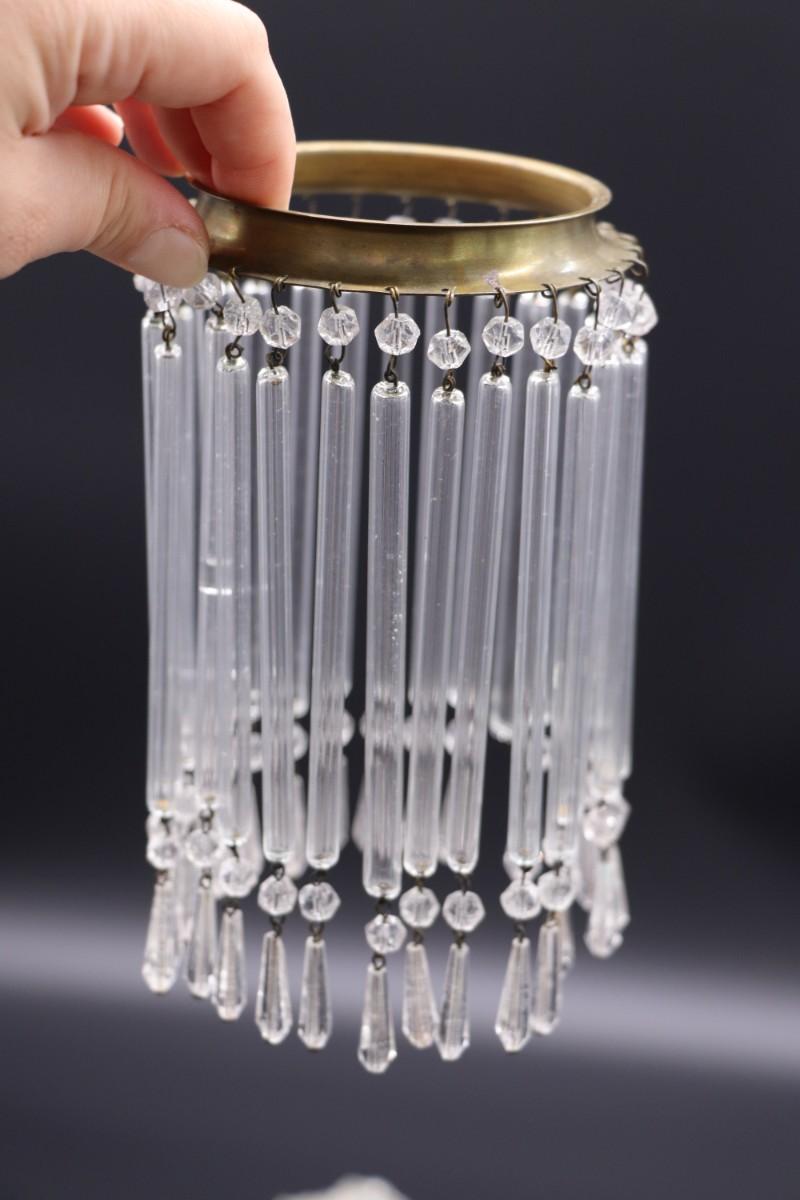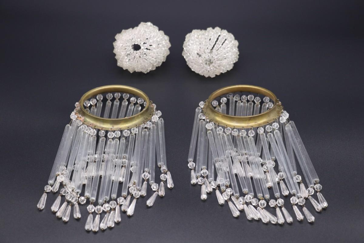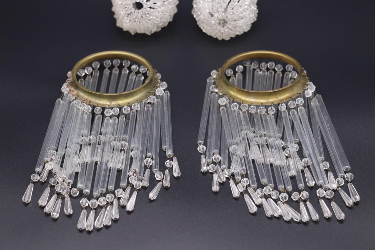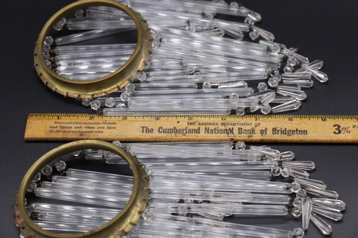 Lot of 4 Antique Clear Glass Bead Bulb Covers and Fringe Lamp Shades