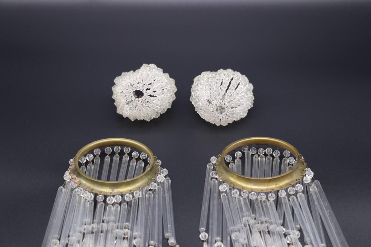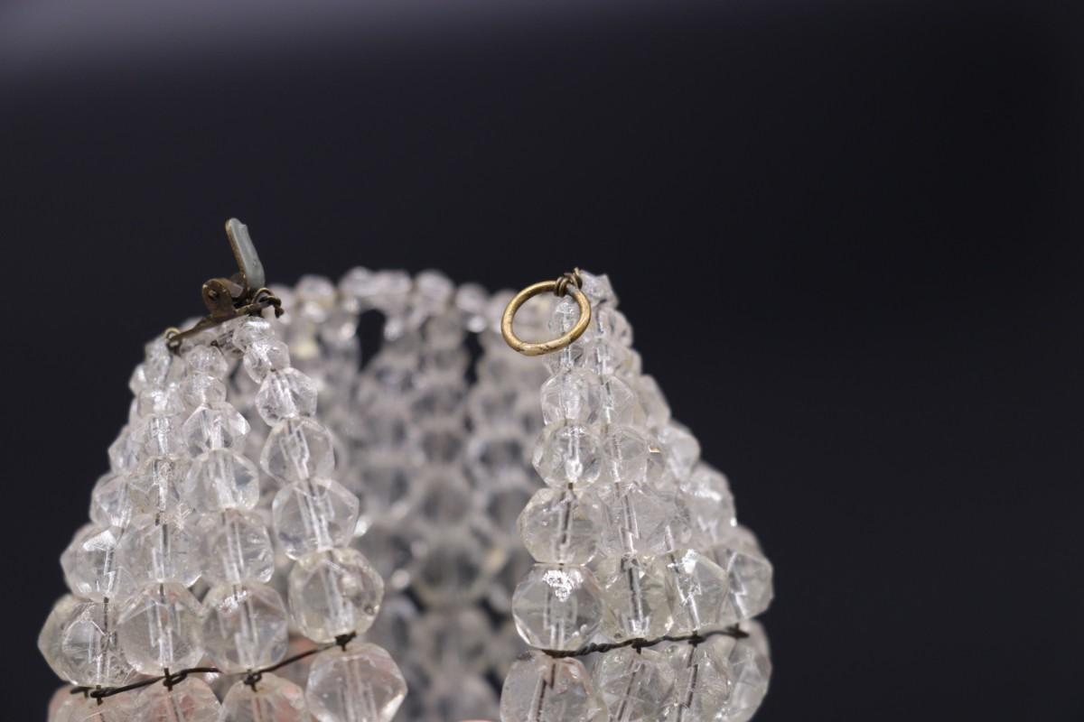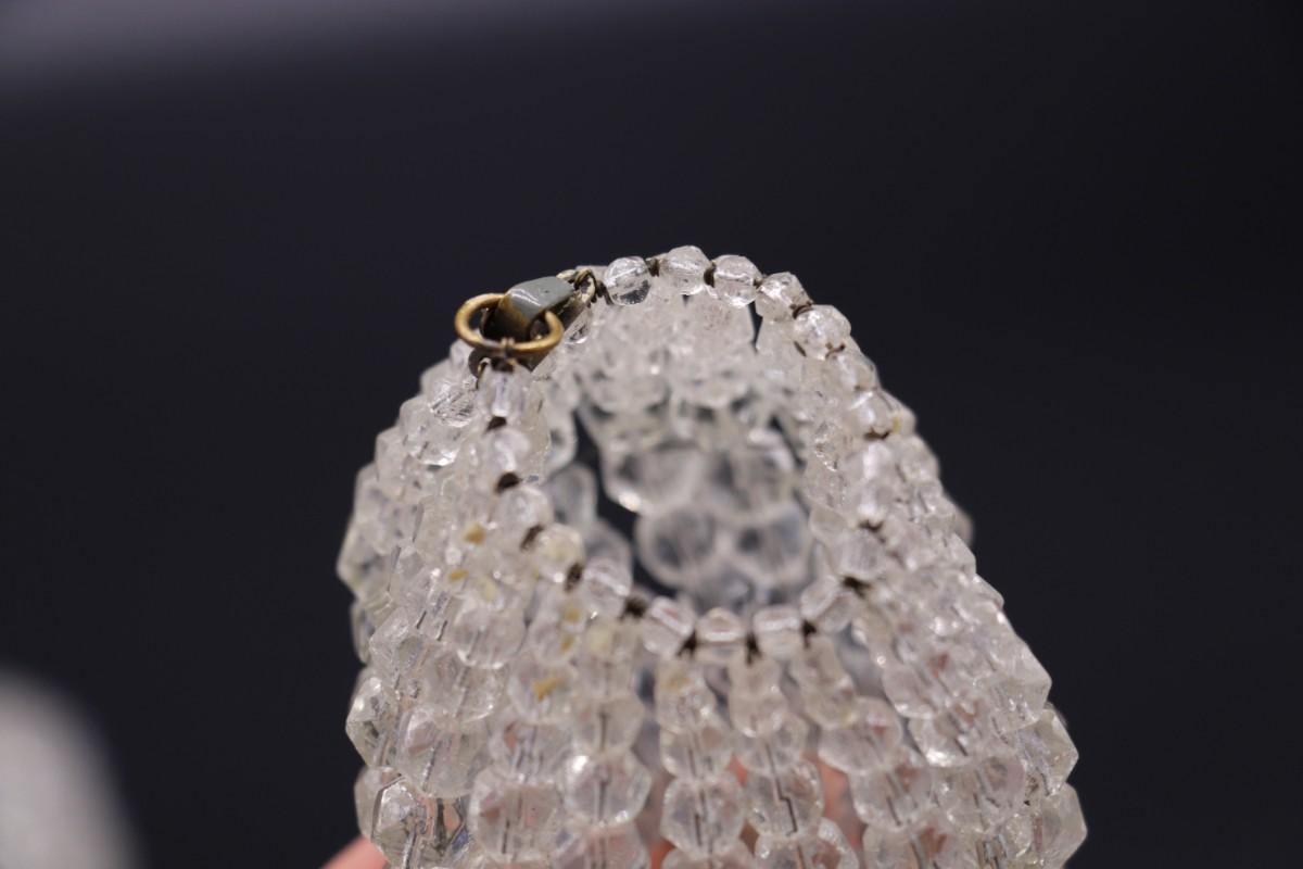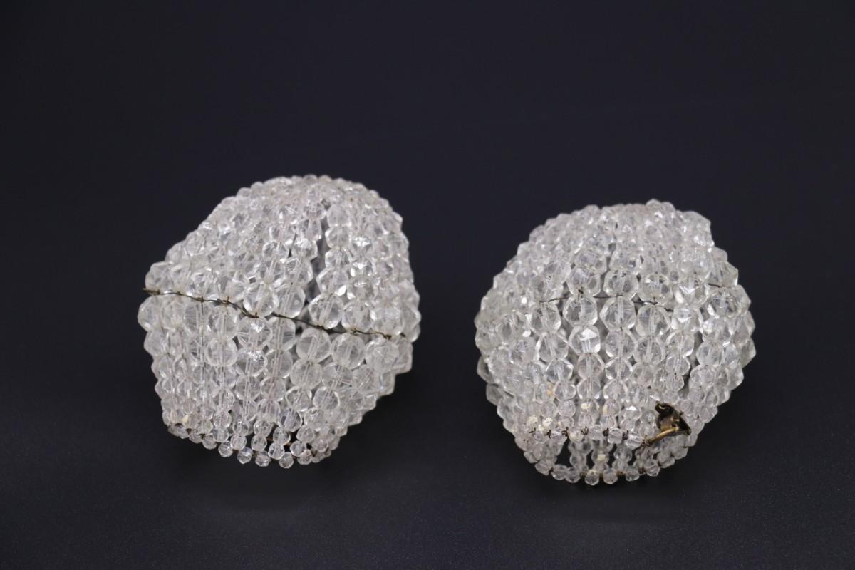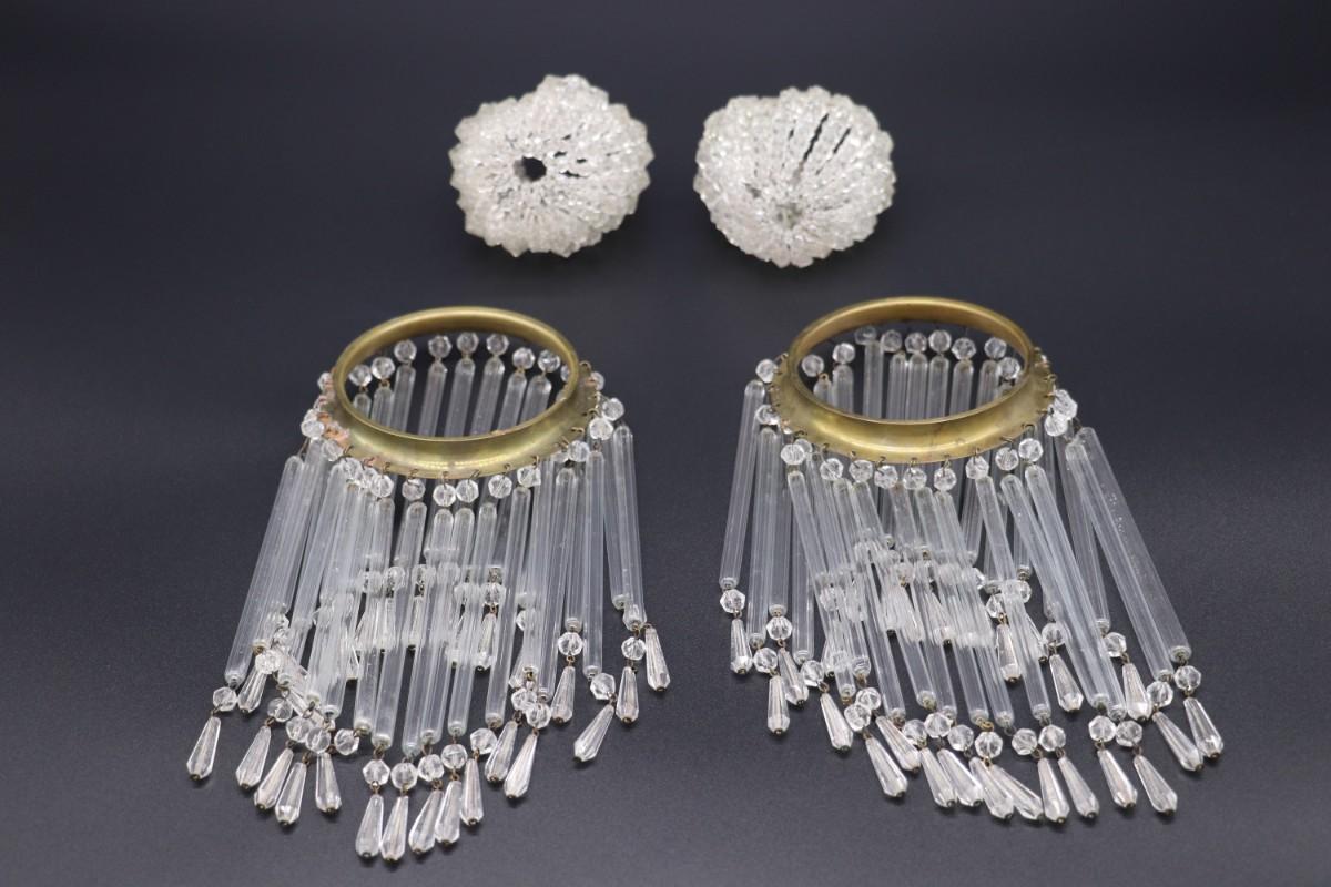 Lot of 4 Antique Clear Glass Bead Bulb Covers and Fringe Lamp Shades