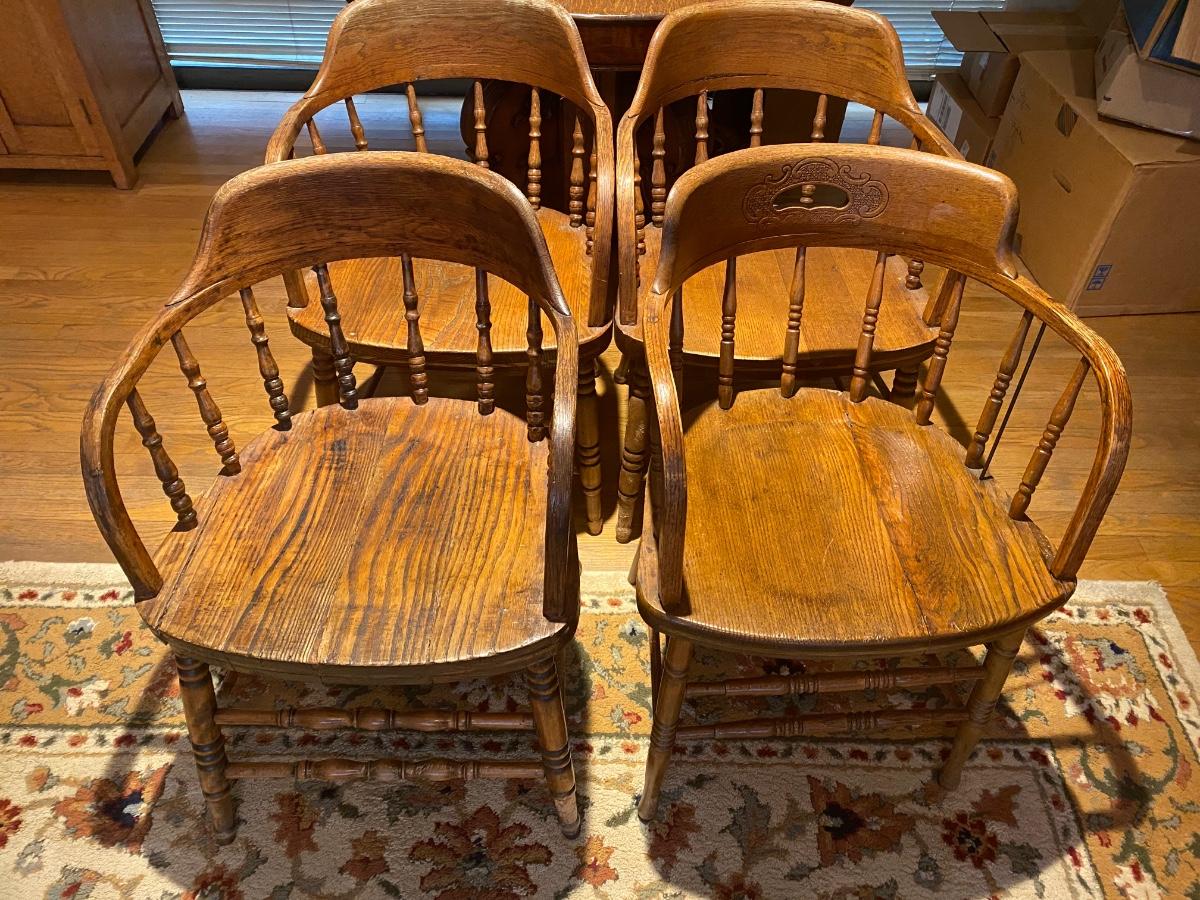Lot of 4 antique oak chairs from the Hickman County, Tennessee courthouse