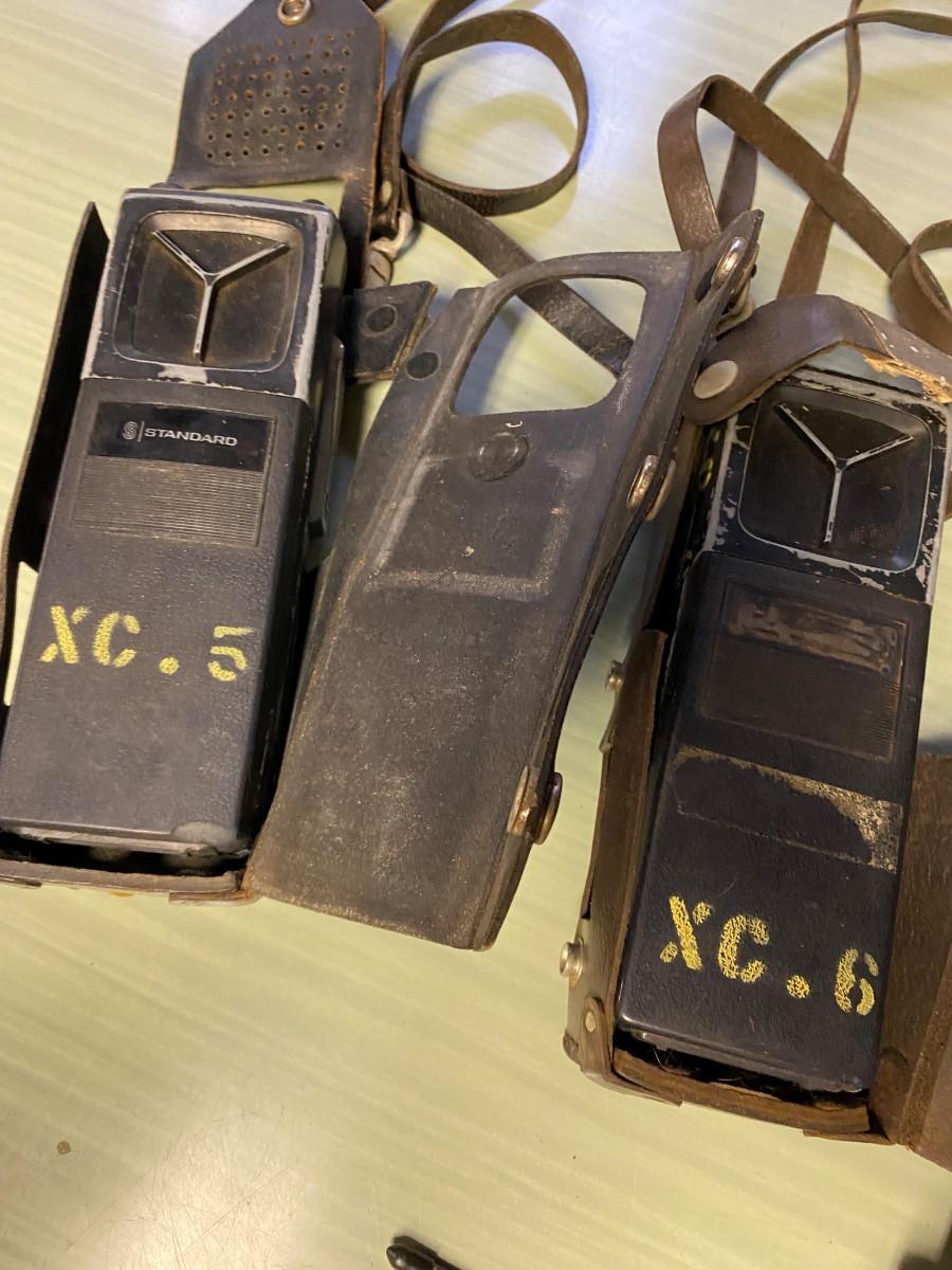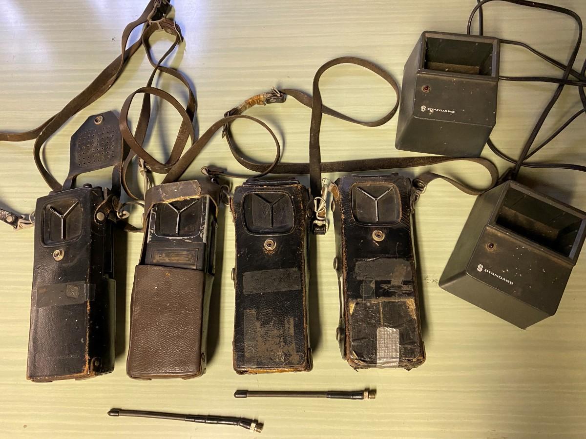 Lot of 4 Antique Standard Walkie Talkies. Includes cases and chargers. Potentially military.
