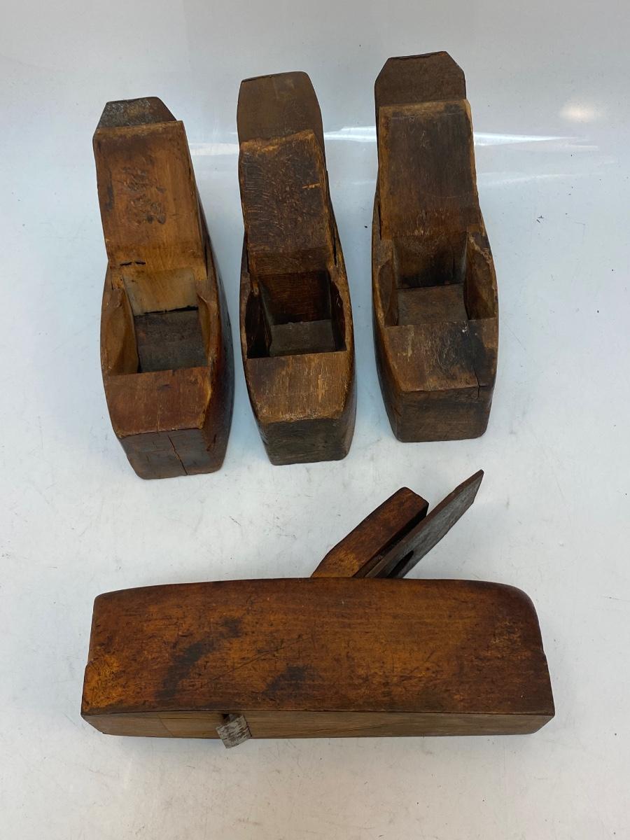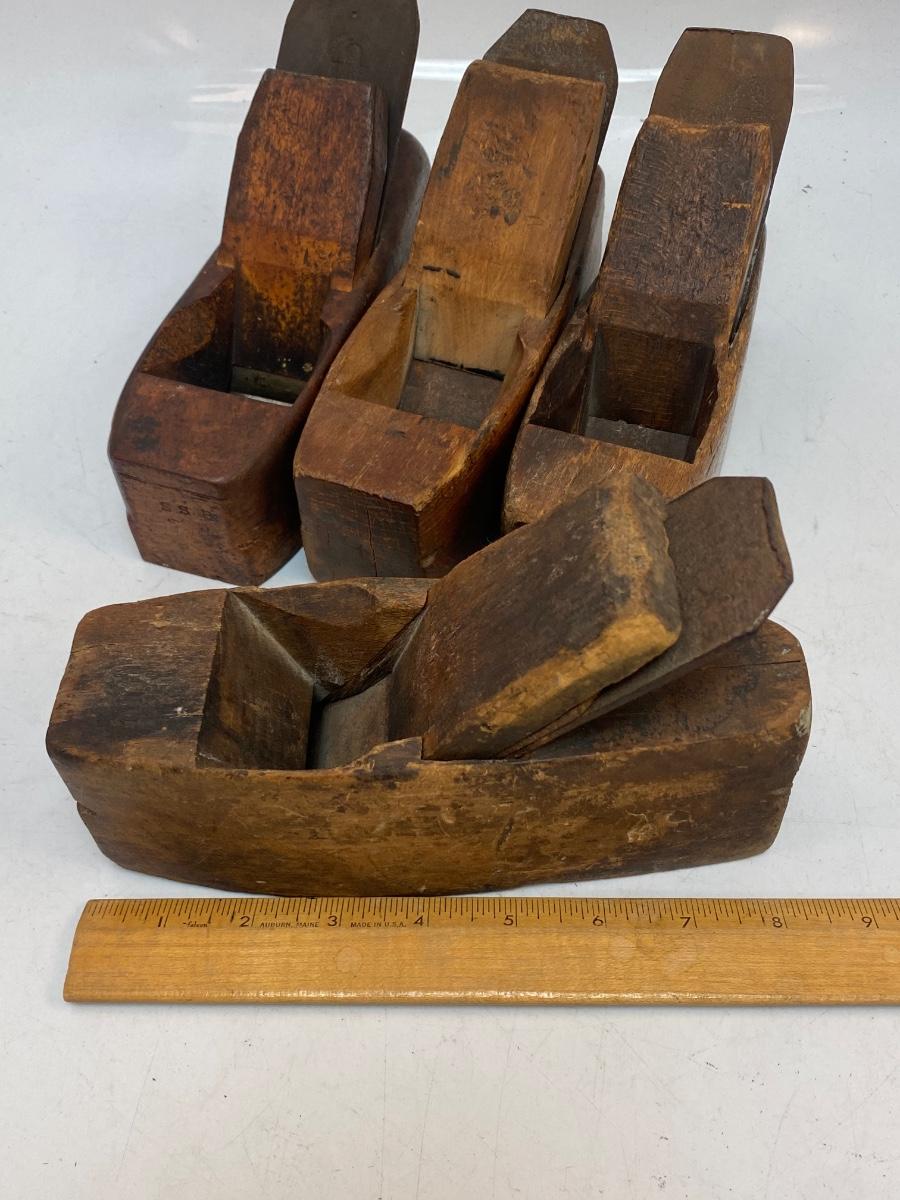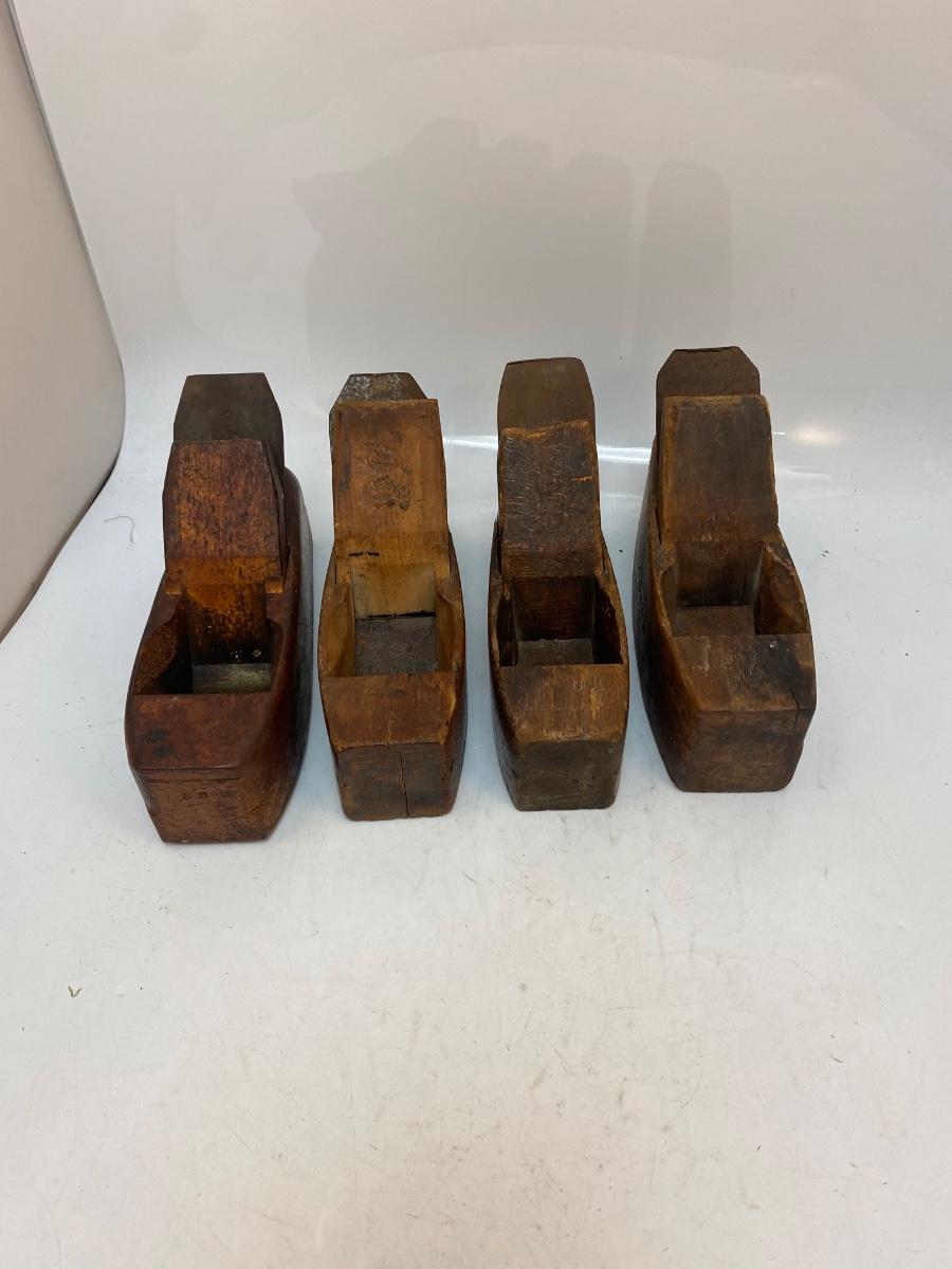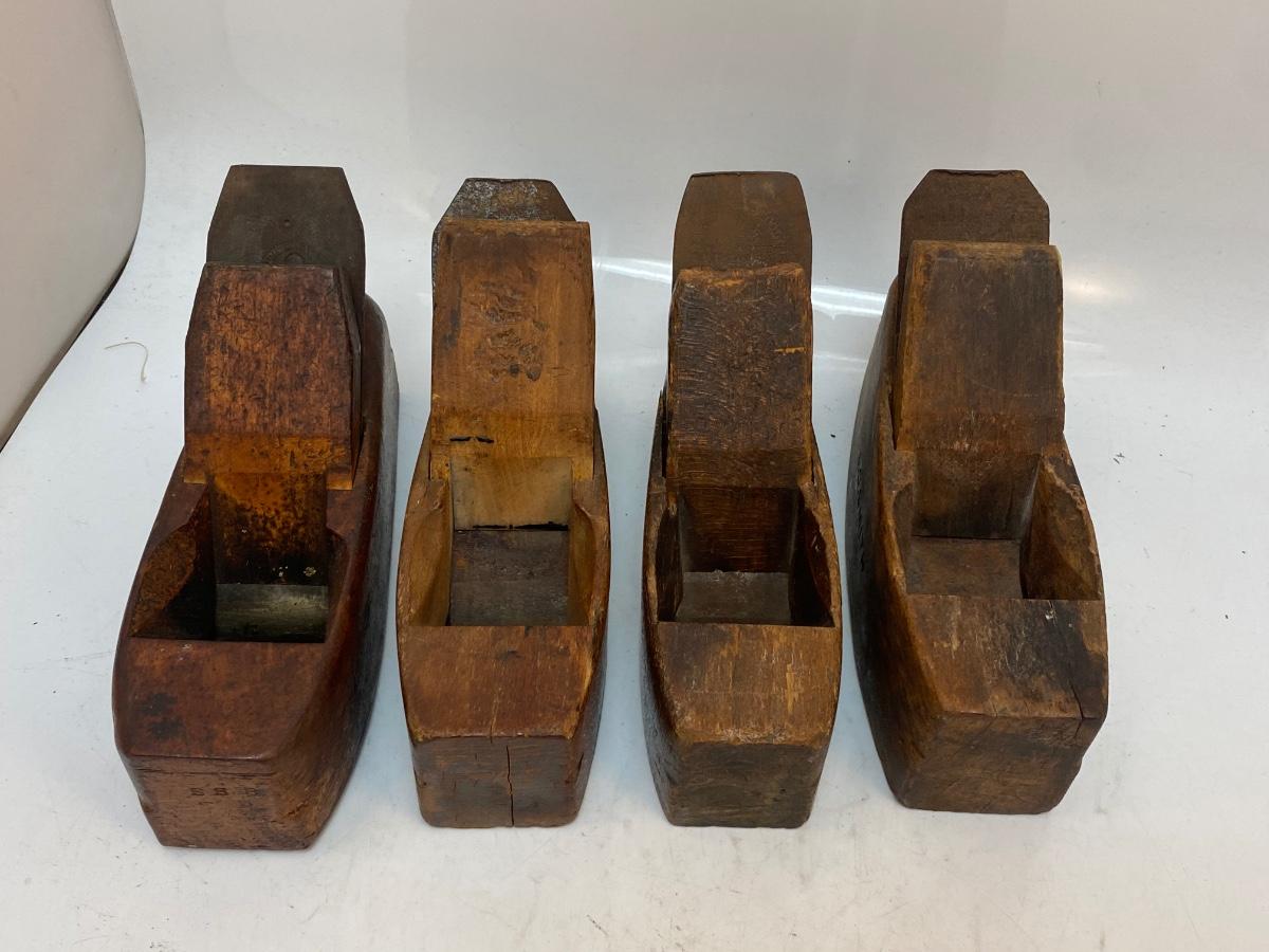 Lot of 4 Antique Wooden Coffin Block Hand Grater Plane Woodworking tools