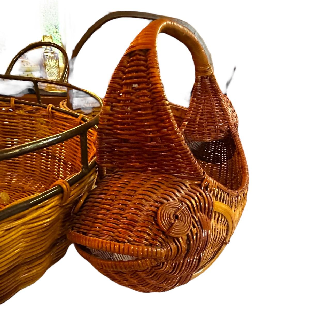 Lot of 4 Baskets, 1 is a Fish, one with Wood Bottom
