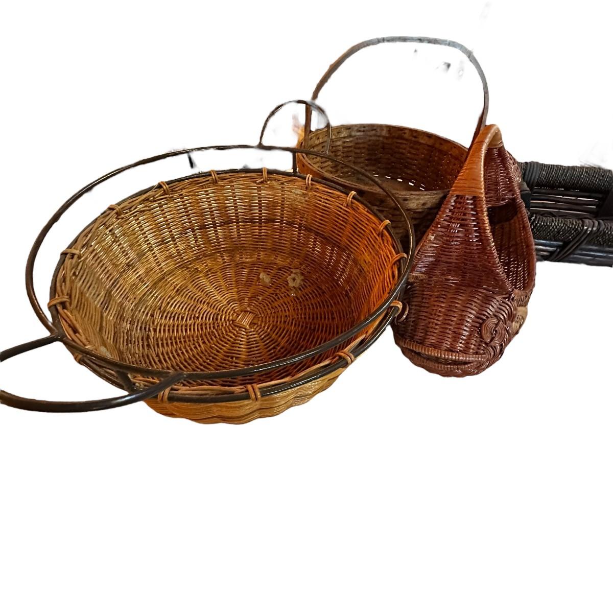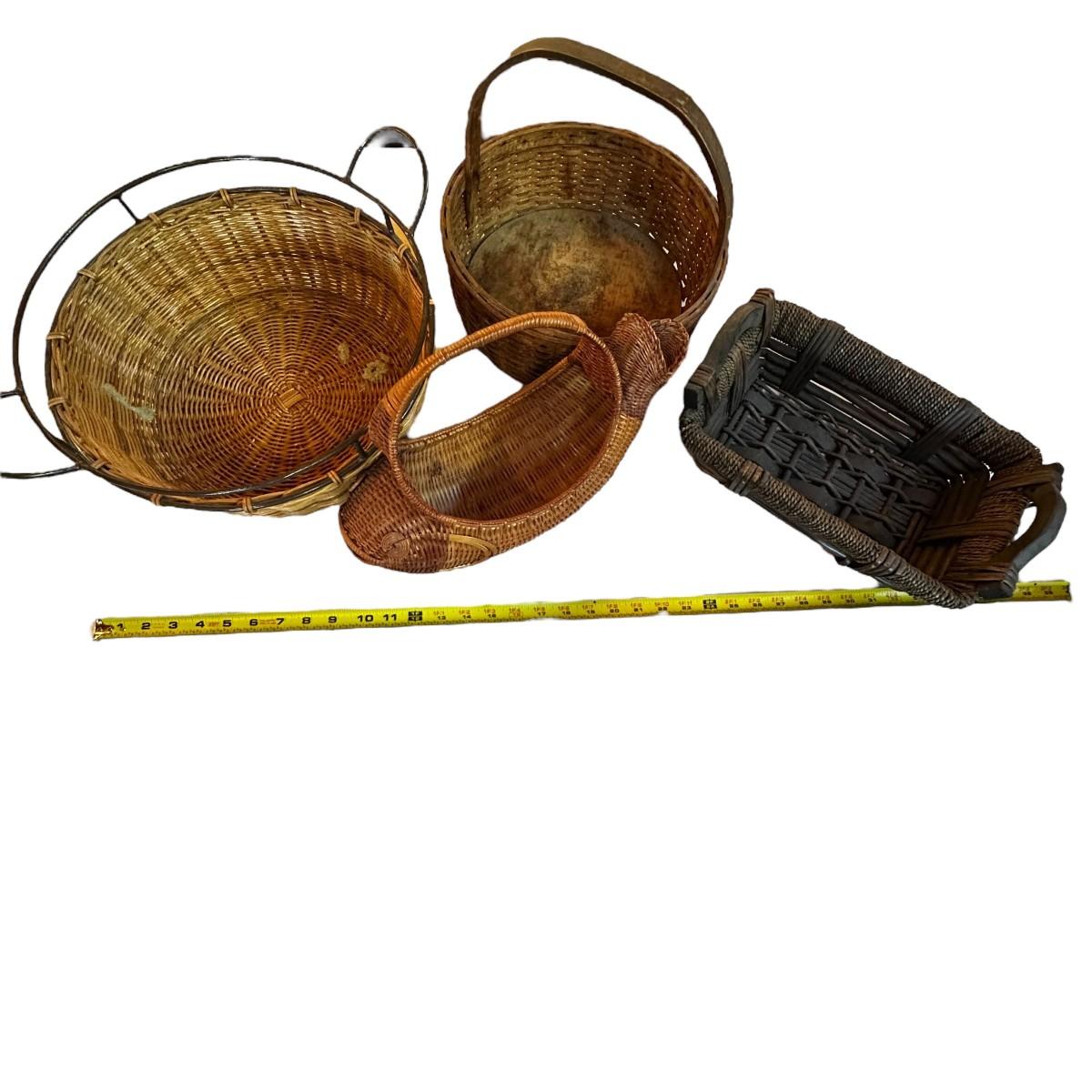 Lot of 4 Baskets, 1 is a Fish, one with a wood bottom, 1 with some glue in the bottom, and one long one