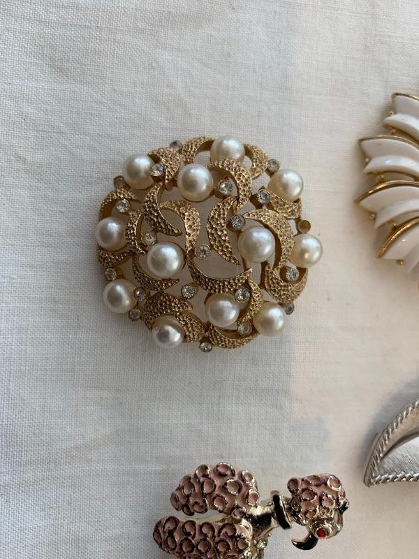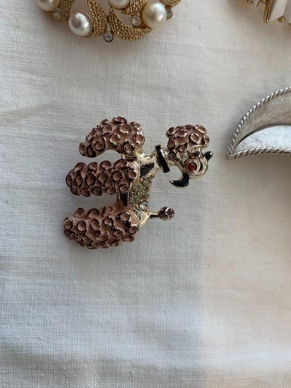 3 Trifari, poodle is un-marked. Please review pics as some of the gems are missing