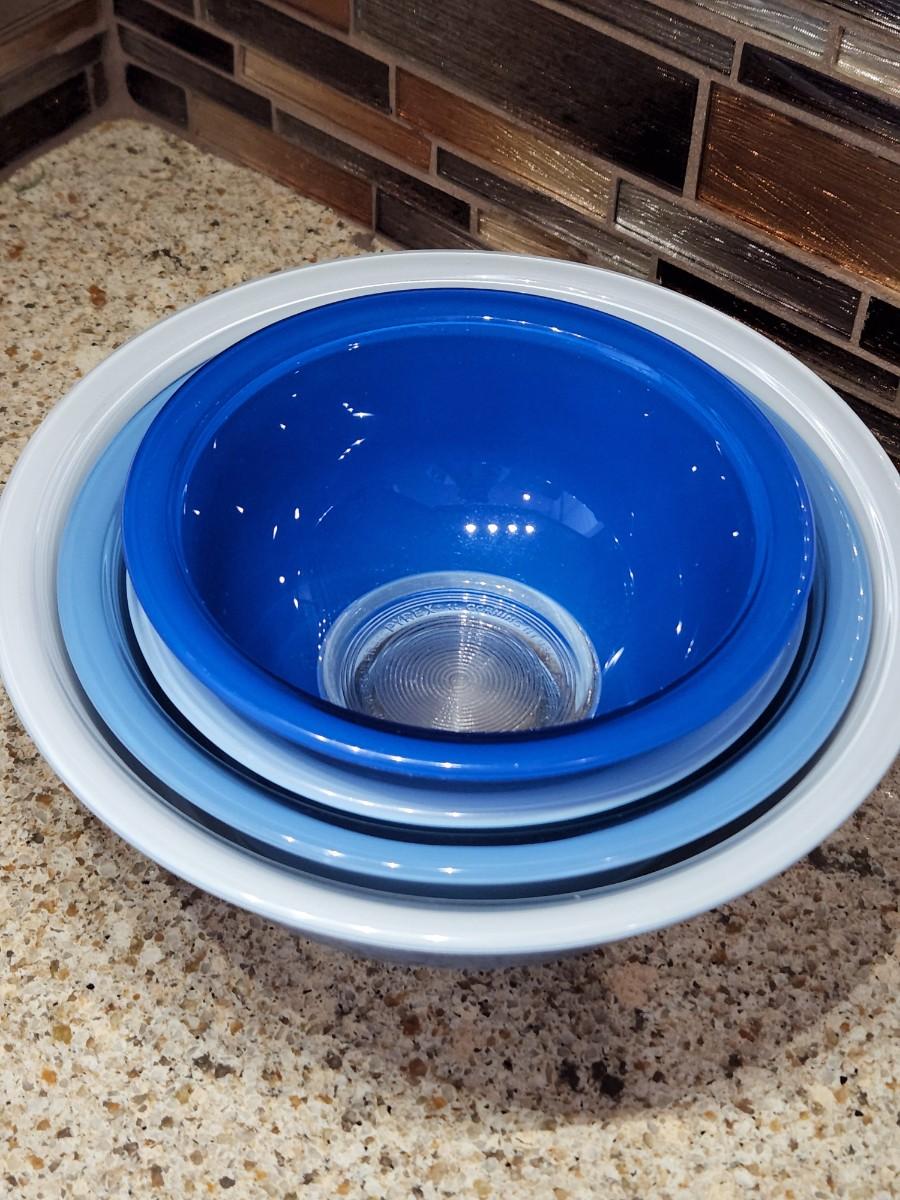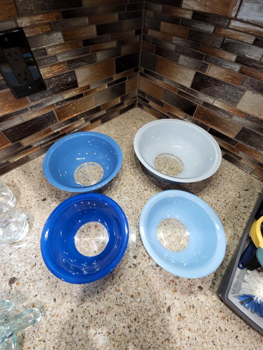 Lot of 4 Colorful Pyrex Mixing Bowls