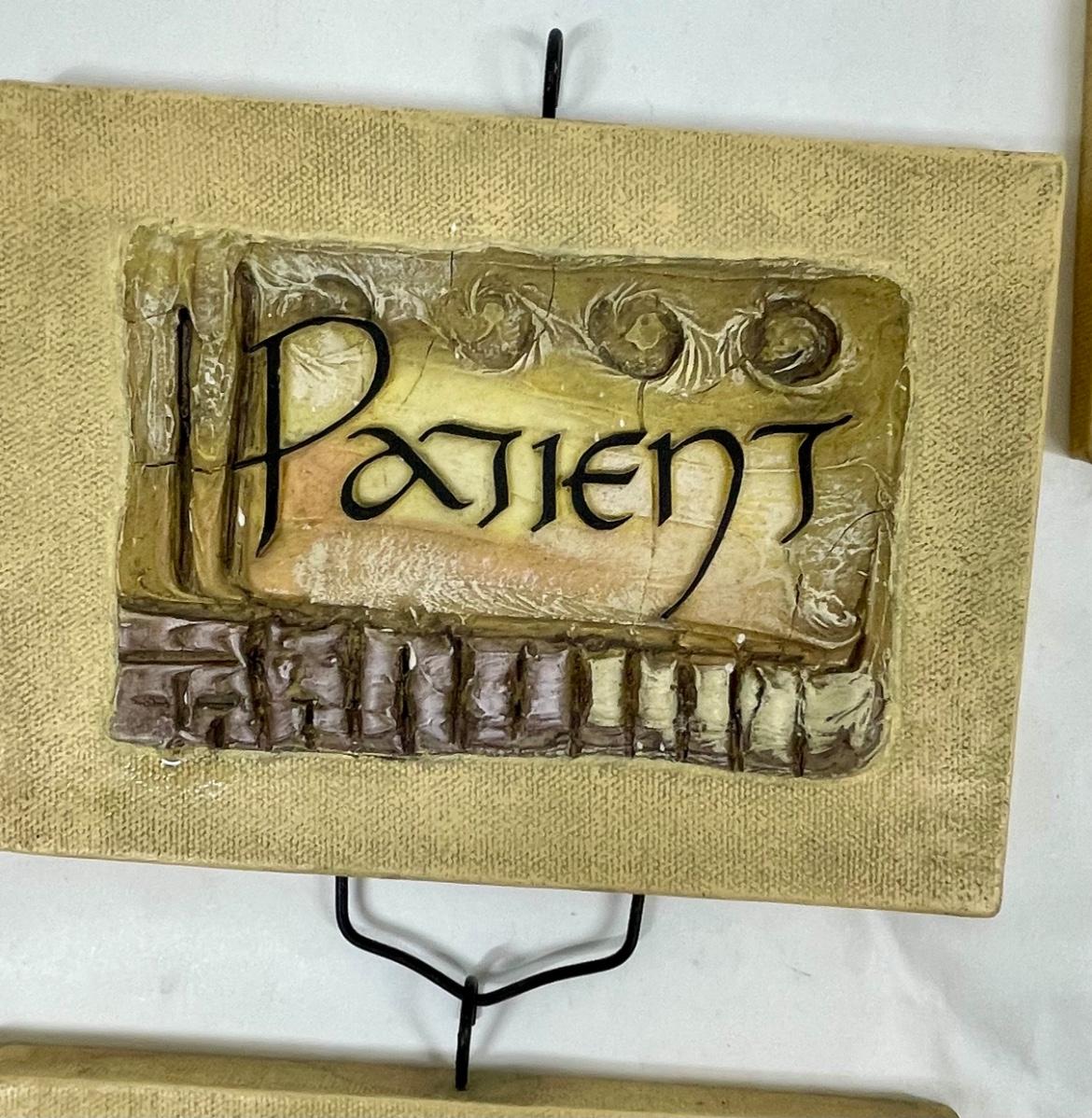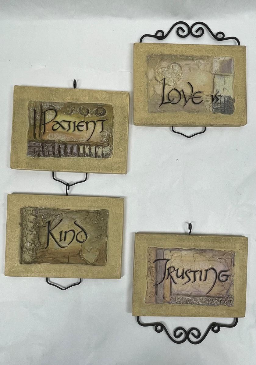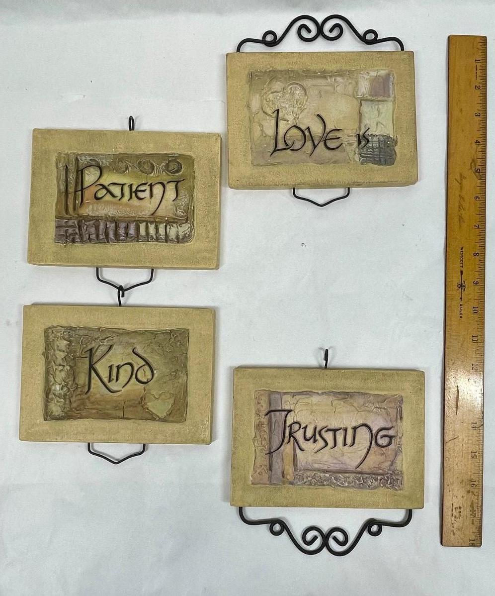 Trusting, Kind, Love, Patient signs in good condition.