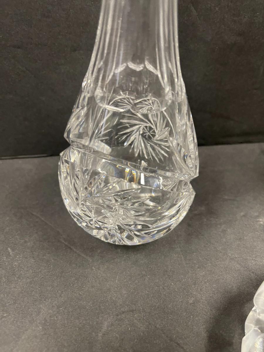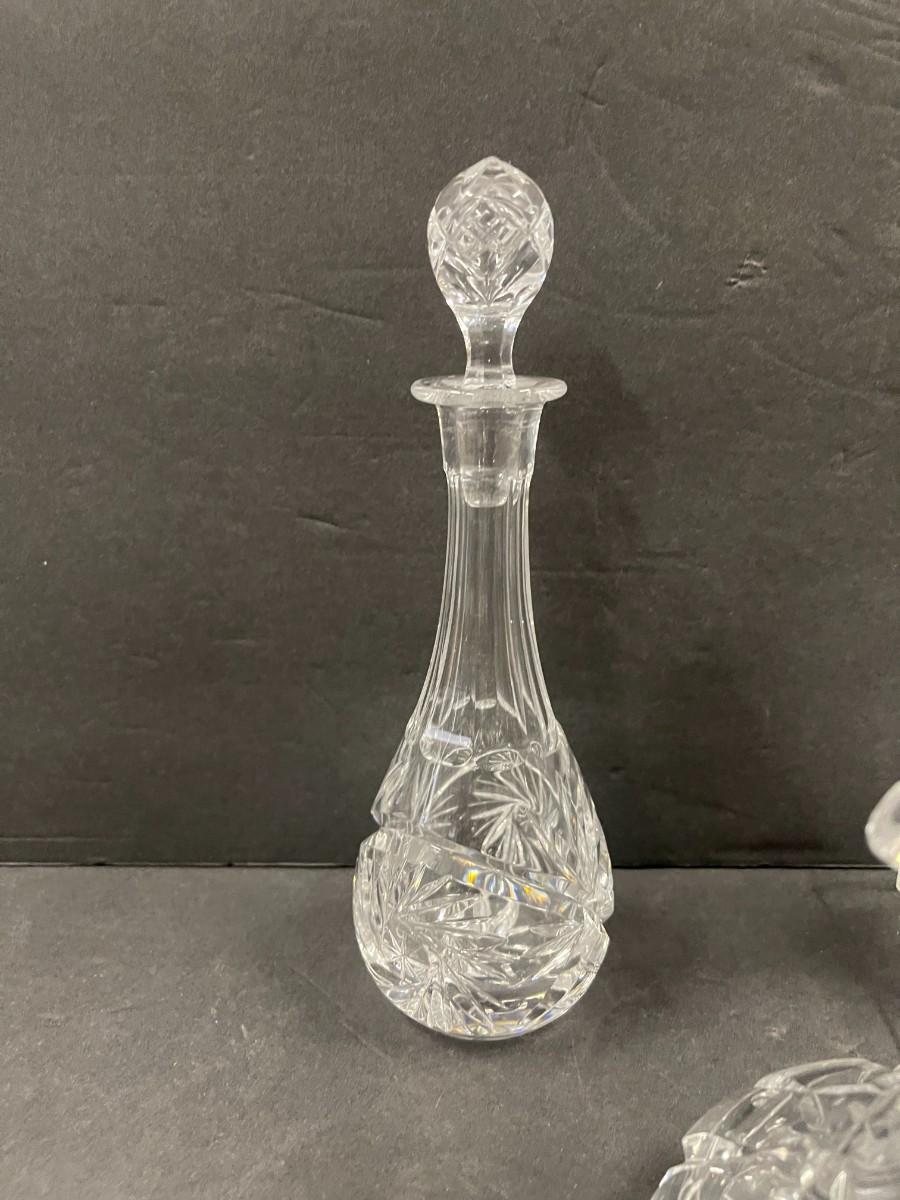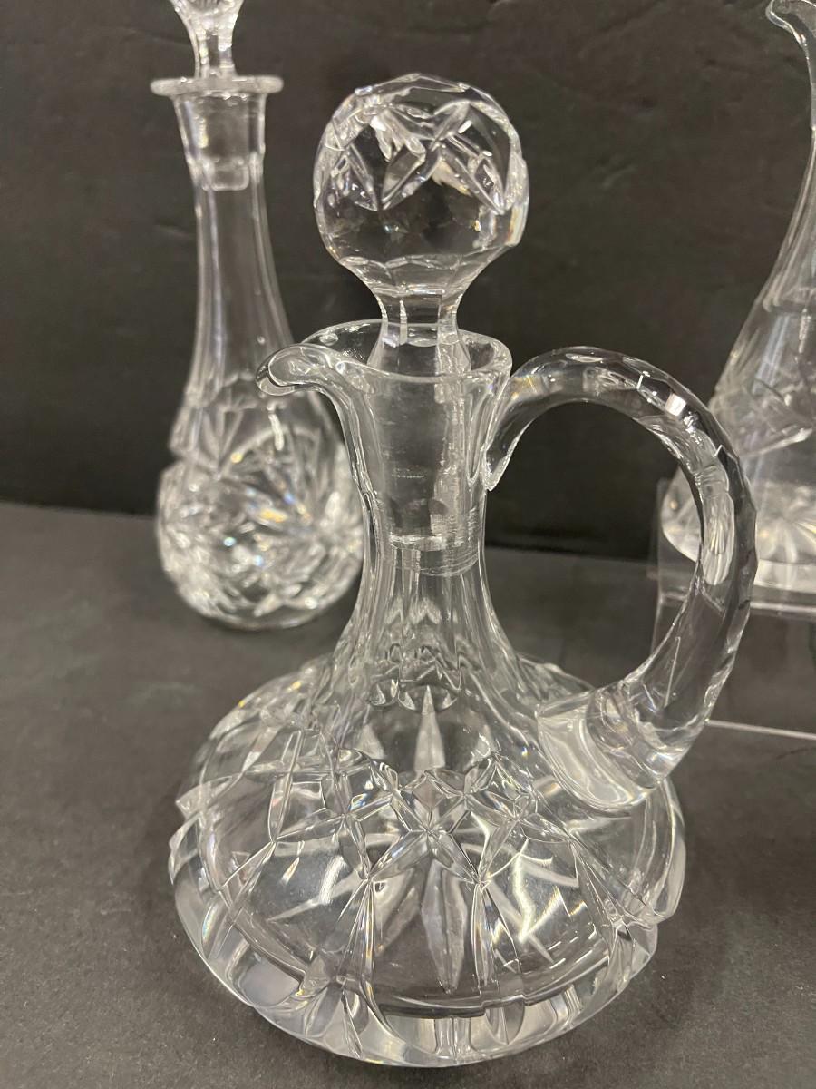 Lot of 4 crystal cruets. Ranging from 6 1/2" - 8".