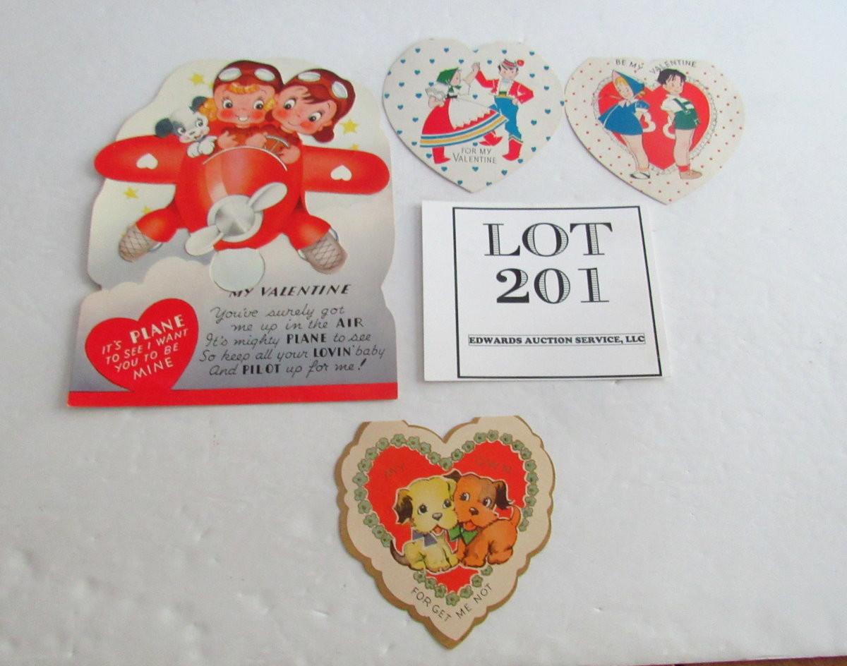 Lot of 4 Cute Vintage Valentines, Mechanical Airplane