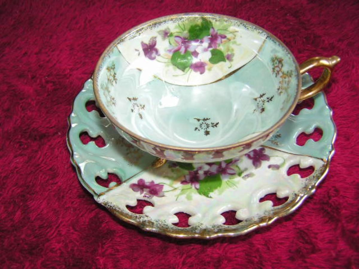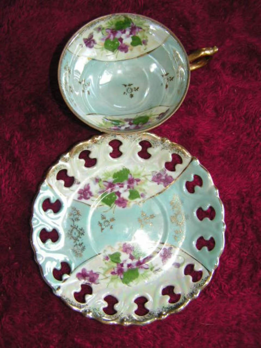 Vintage Royal Crown Arnart (Japan) 3-footed teacup & saucer set.