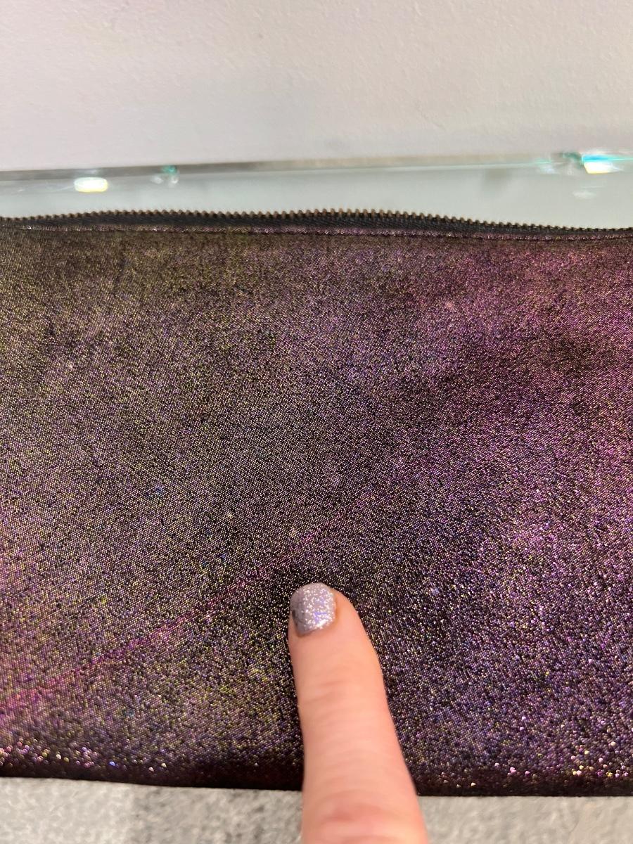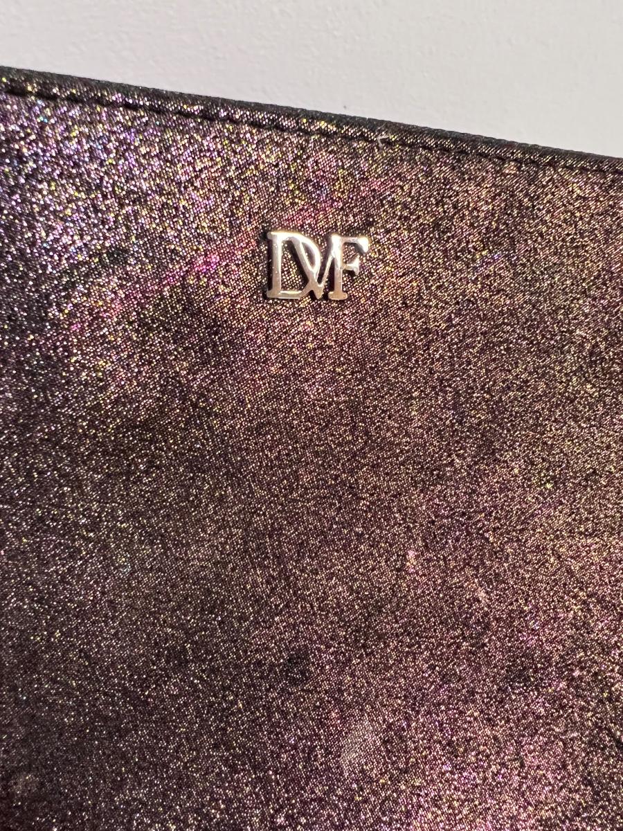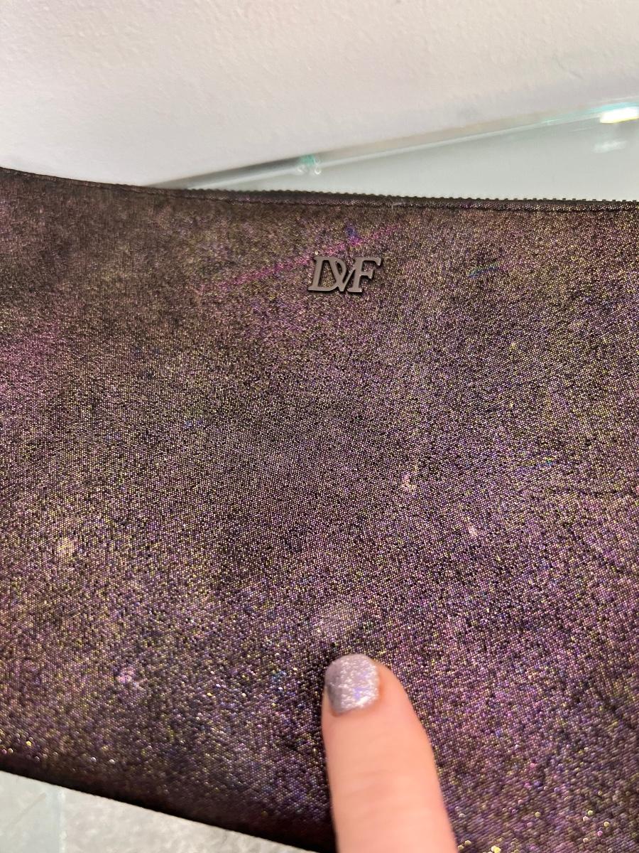 Diane Von Furstenberg metallic clutch. Has spots as shown in pics