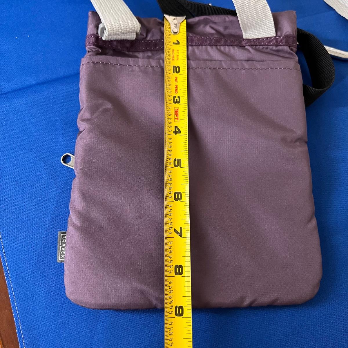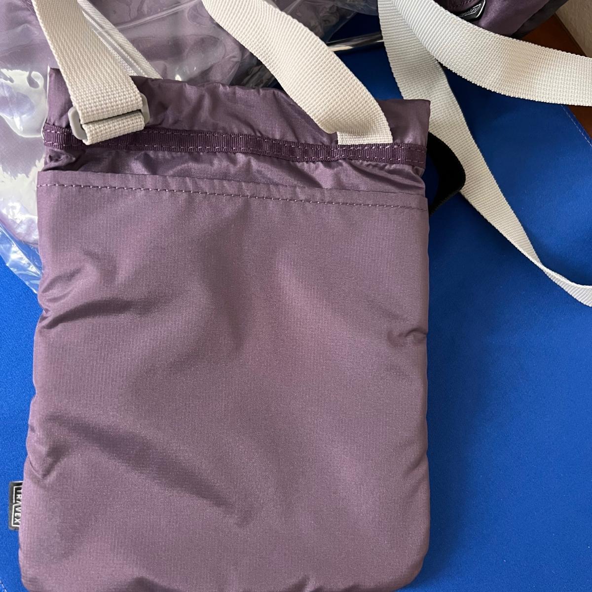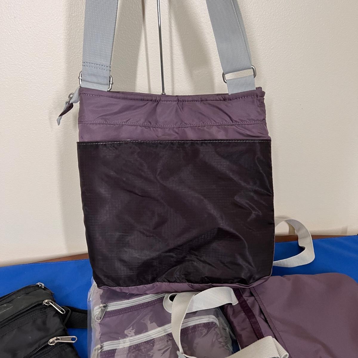 3 purple and 1 black Eddie Bauer bags. 1 new in plastic. Other 2 in excellent condition. Black in fair condition. Shows signs or use and wear