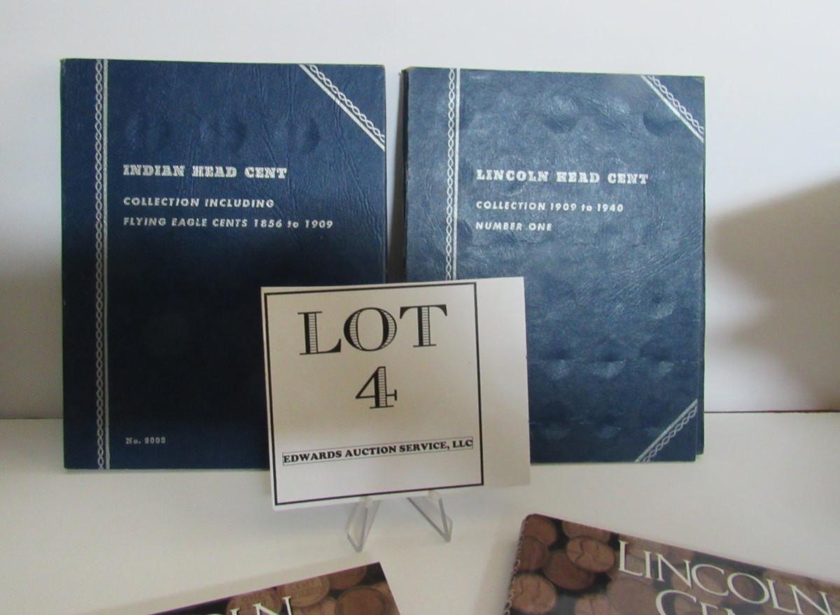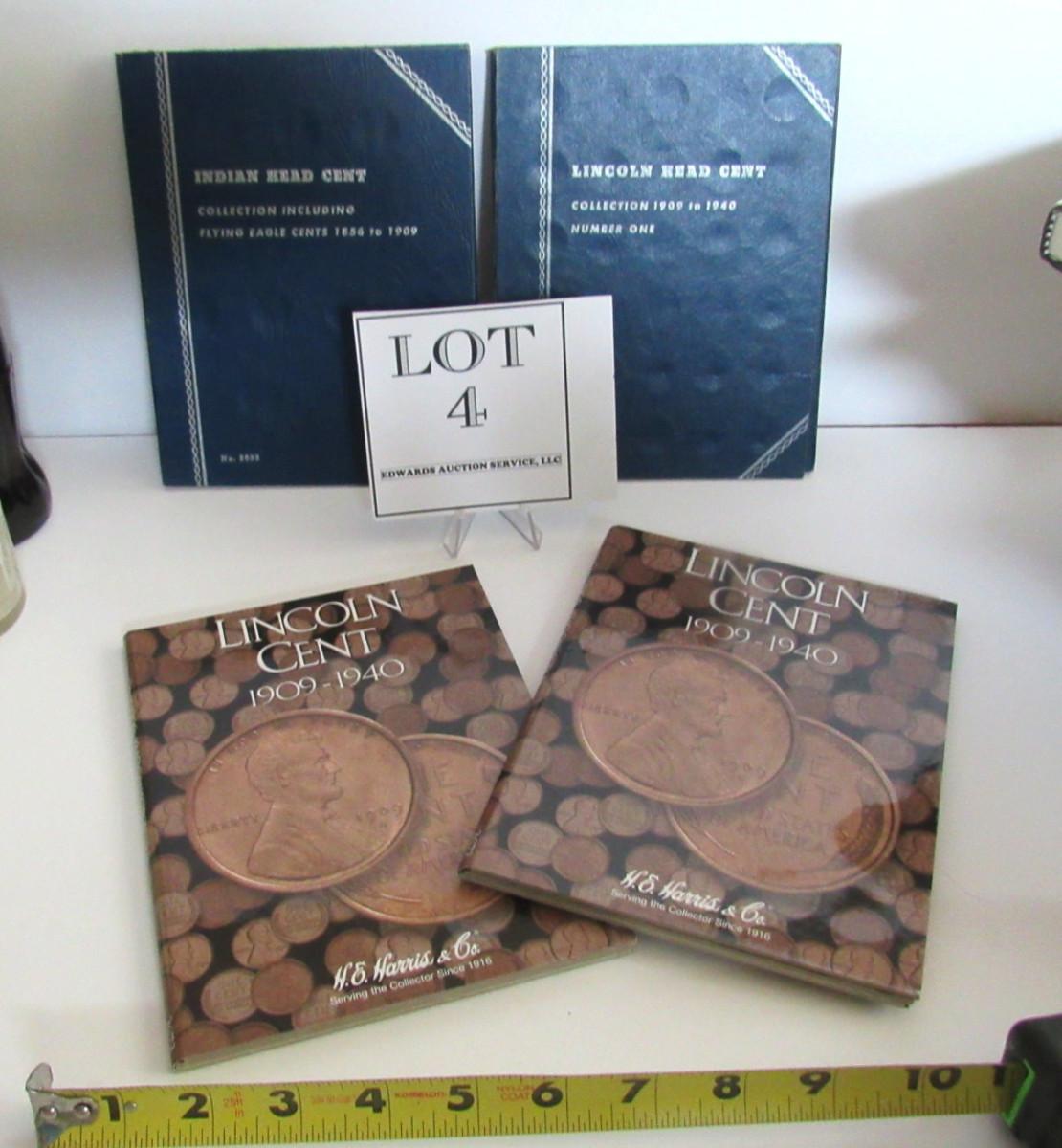 Lot of 4 Empty Coin Books, Lincoln Head Cents and Indian Head Cents