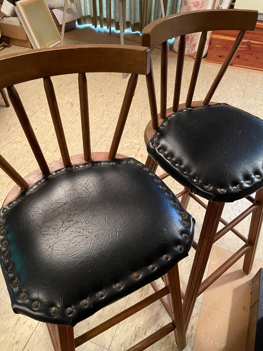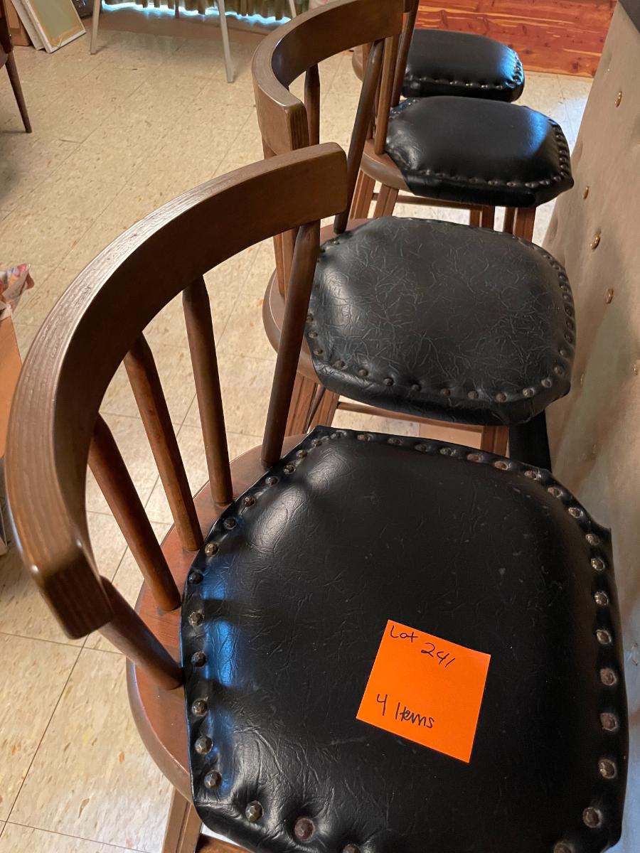 Lot of 4 Faux Leather Bar Stools - one seat has fading