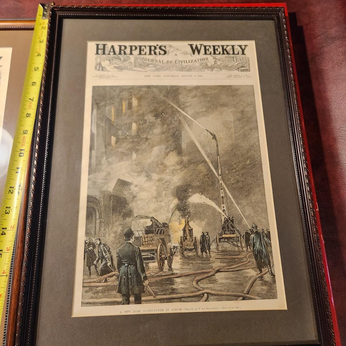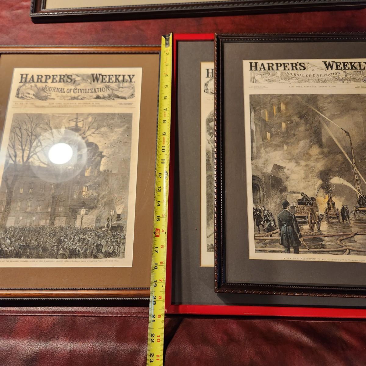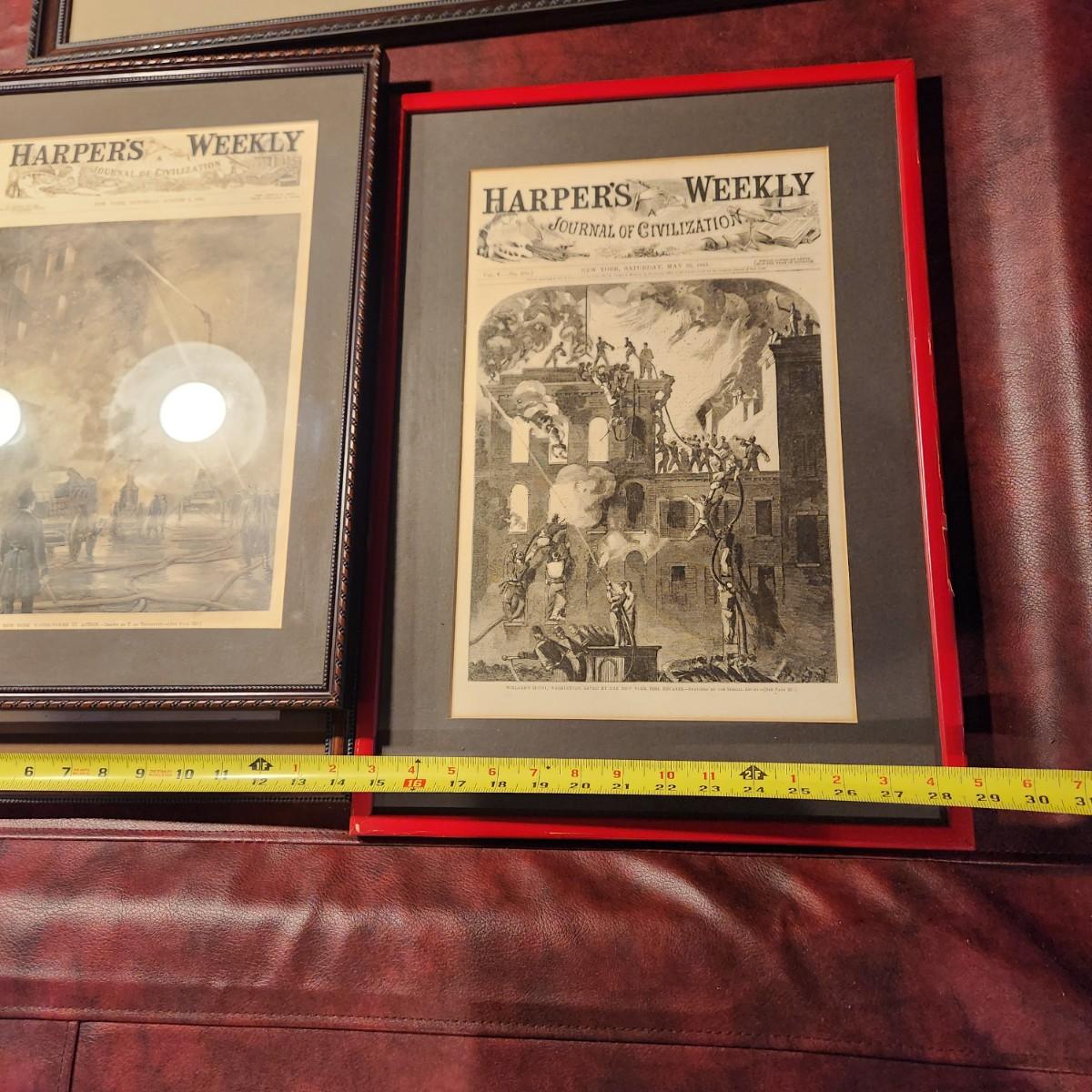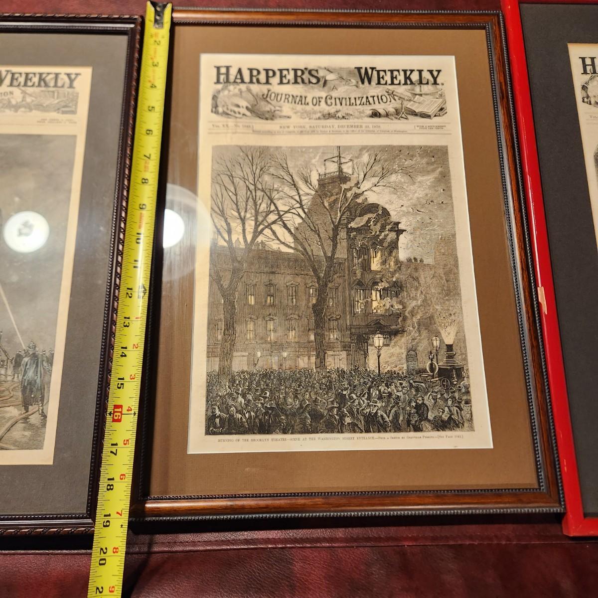 Lot of 4 Framed Harper's Weekly Fire News Page