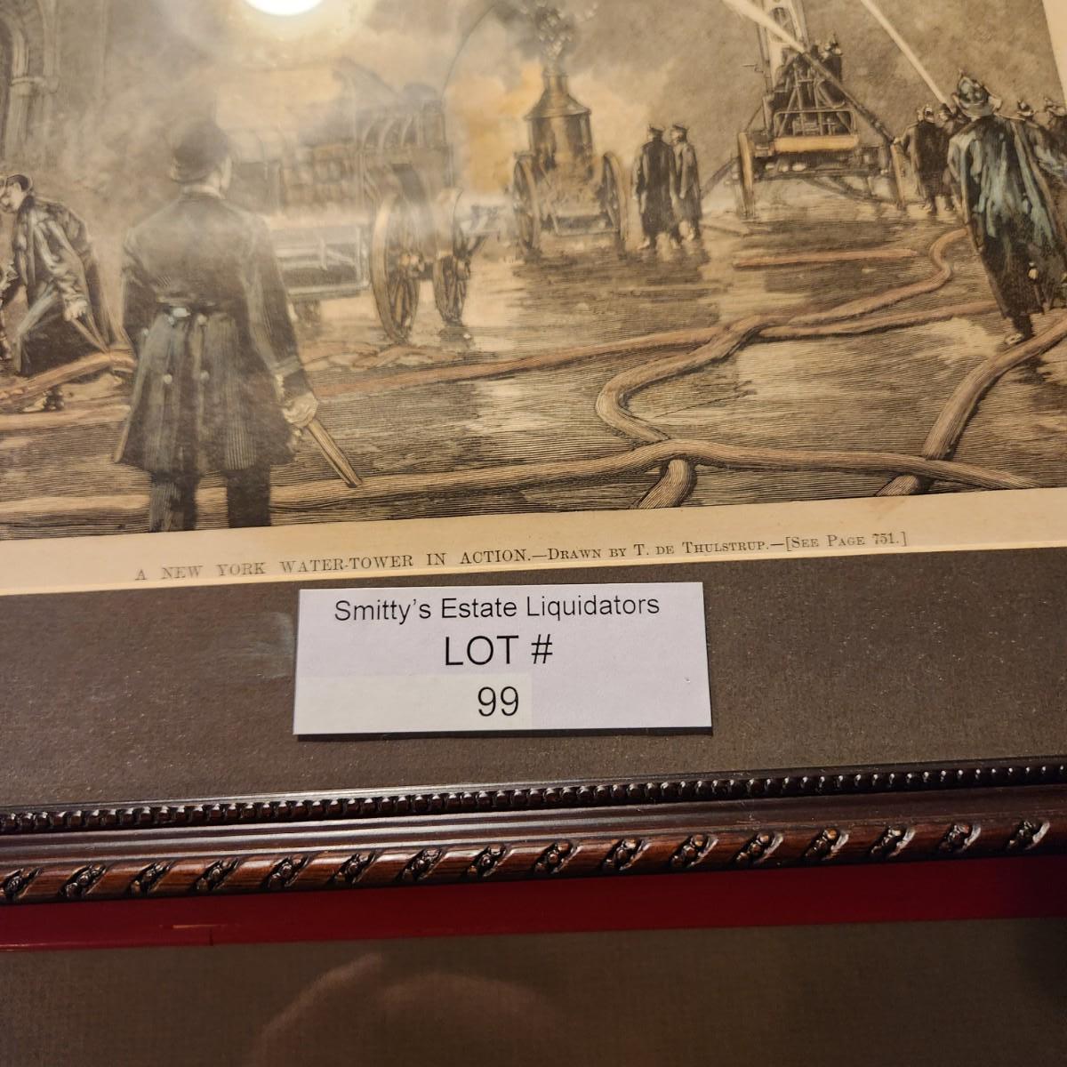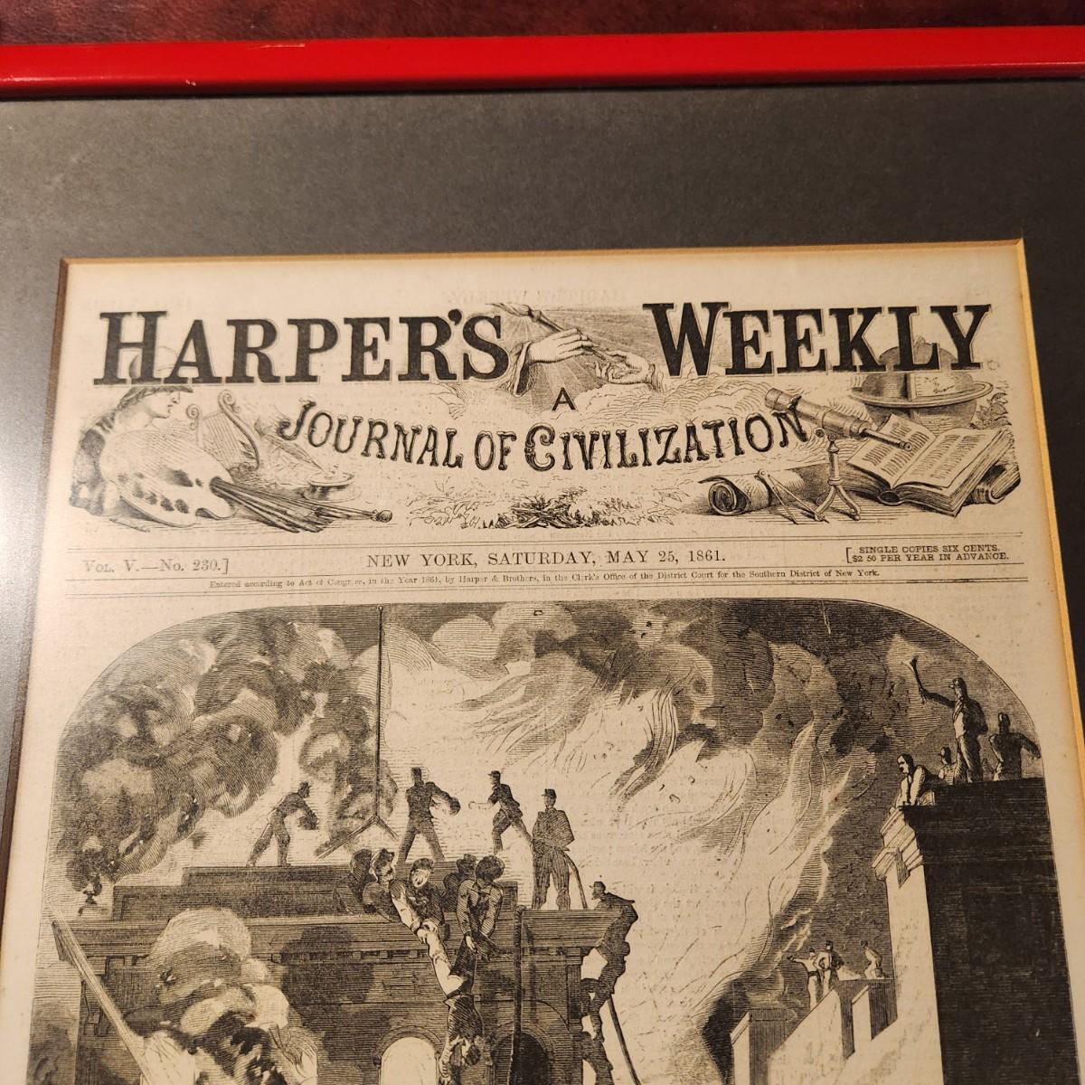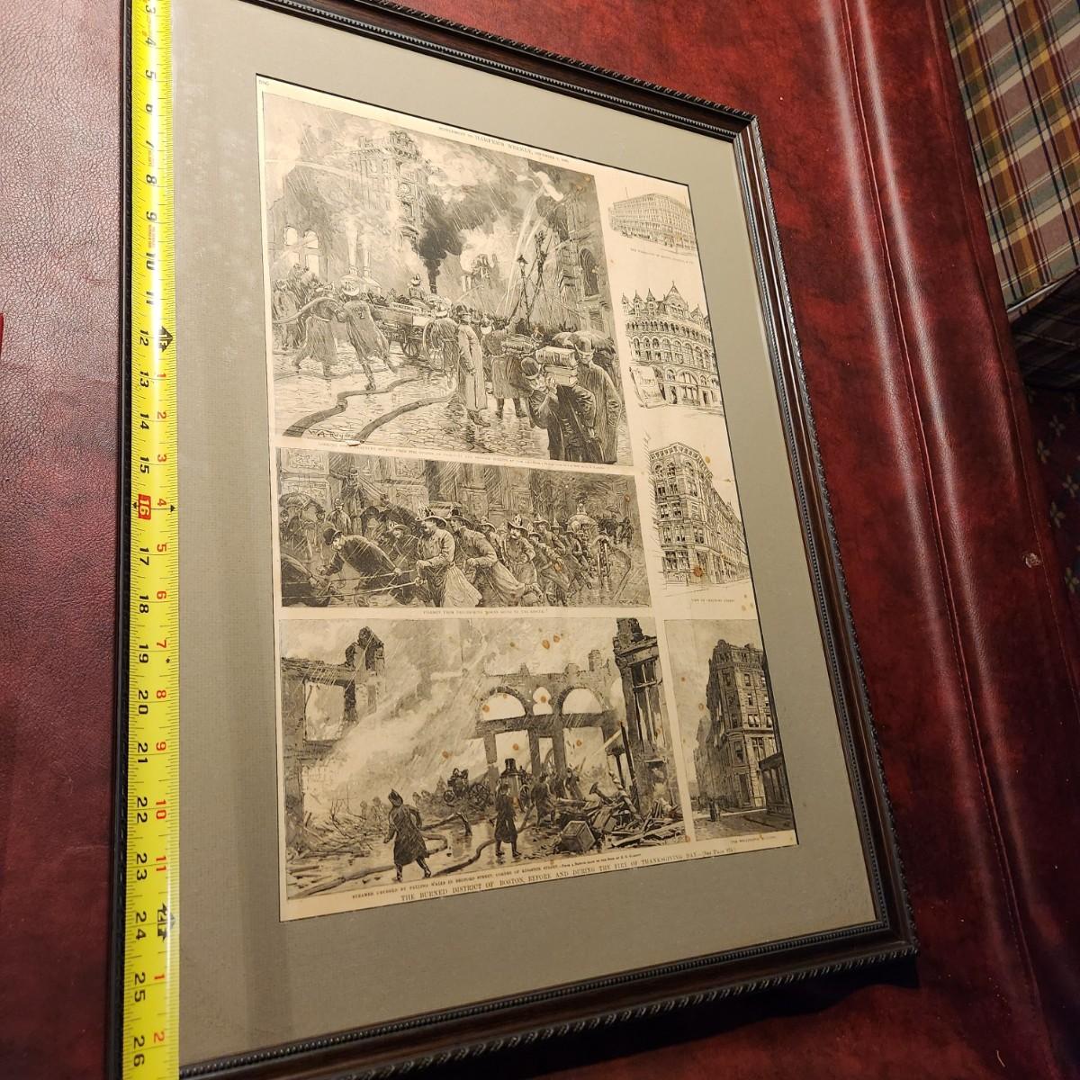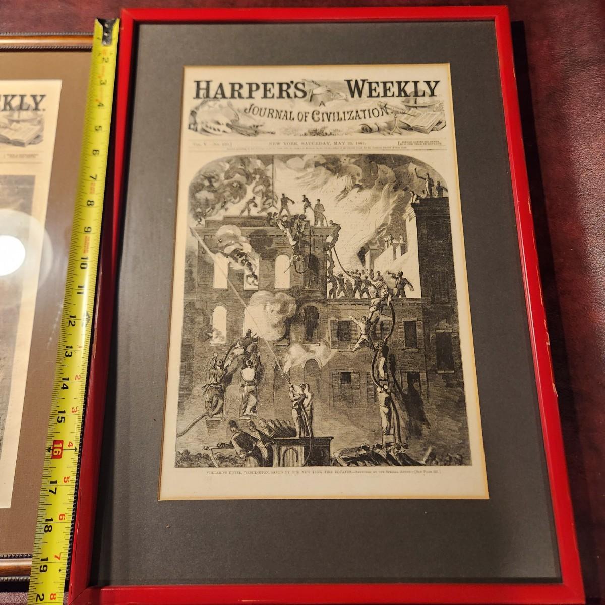 Lot of 4 Framed Harper's Weekly Fire News Page