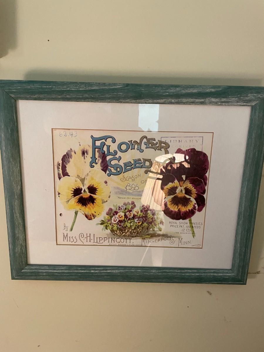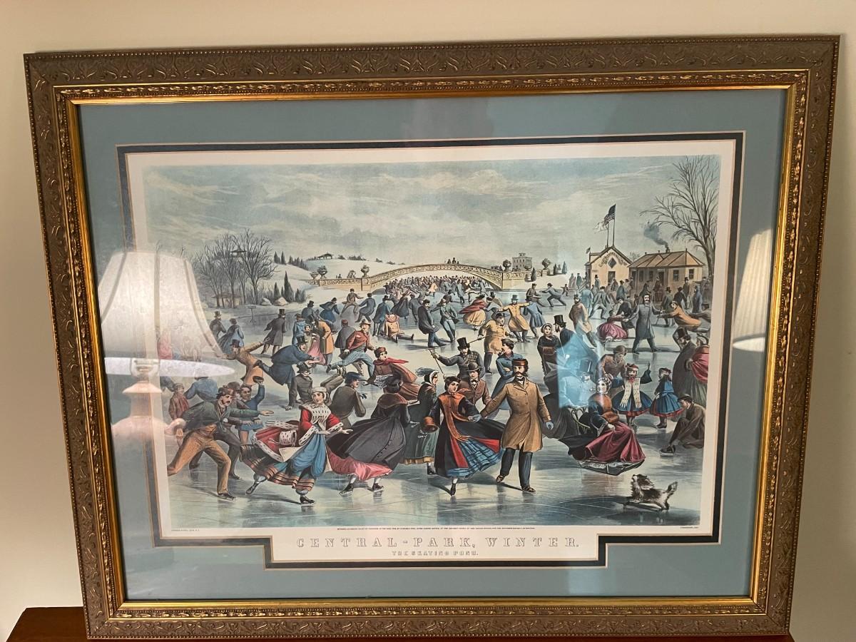 Vintage watercolor art signed, 1895 - Flower seeds art, Season of fall watercolor print and Central Park, Winter - The Skating Pond Wall art.