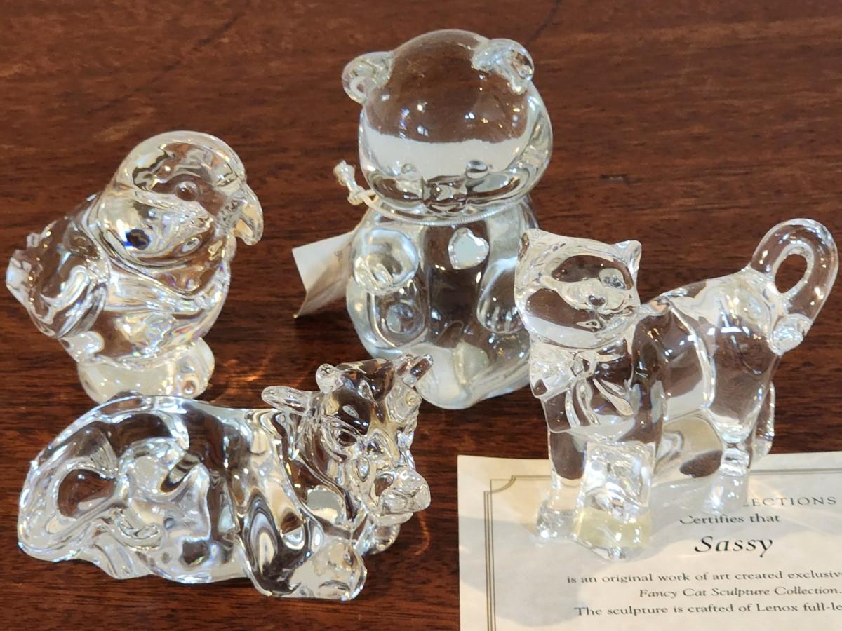 Lot of 4 Glass Animal Figurines Paperweights Lenox, Princess House, Fenton
