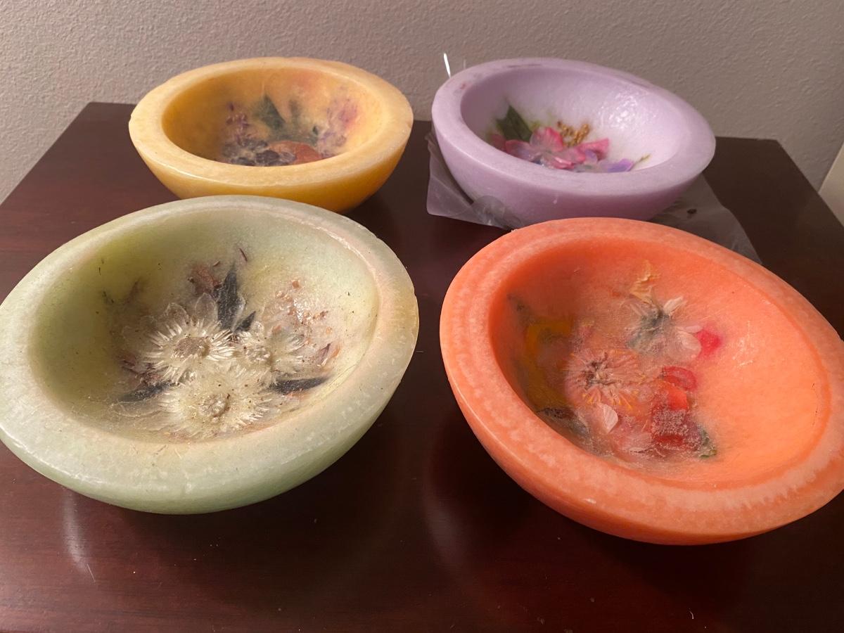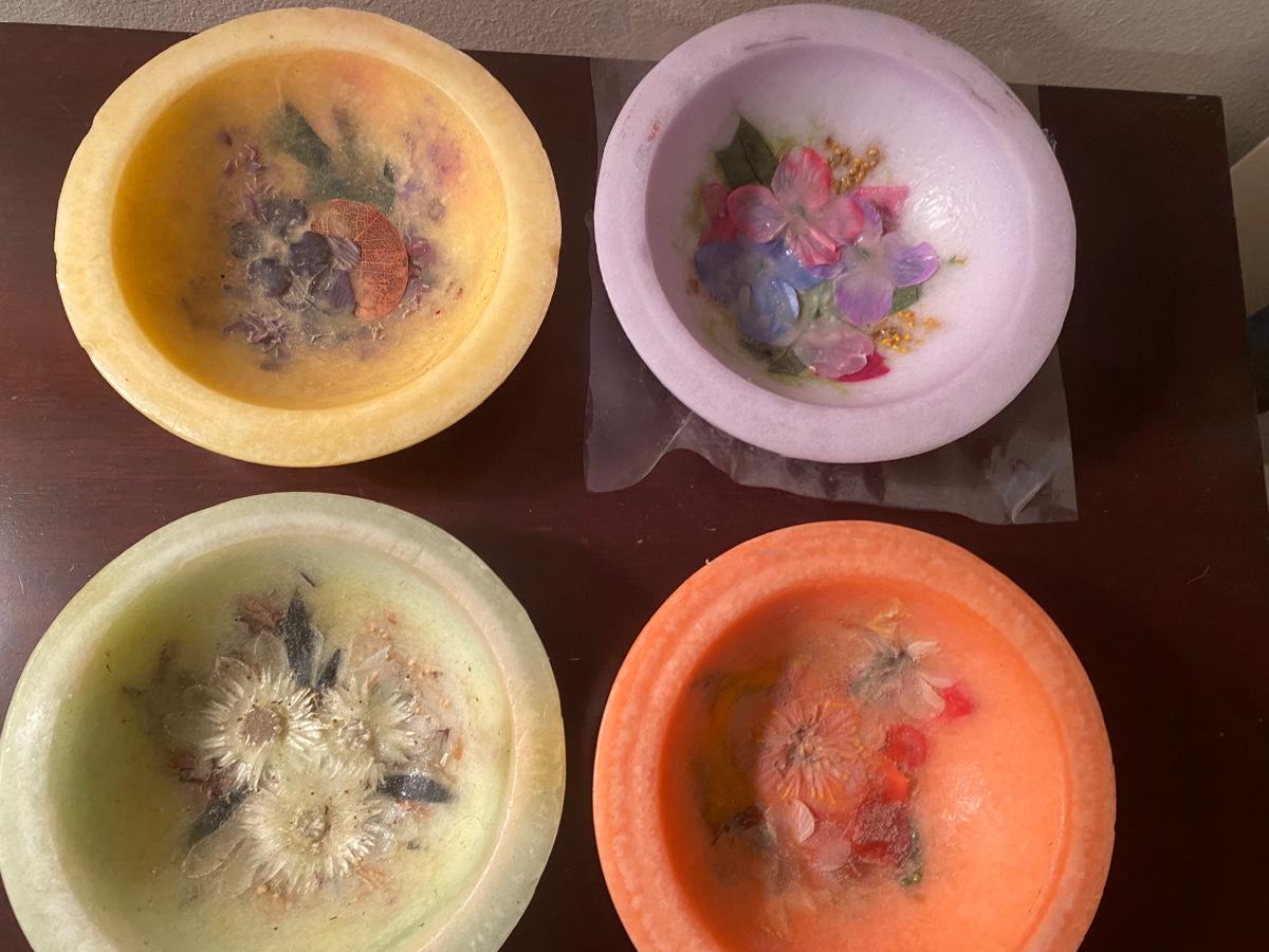 Lot of 4 Habersham wax pottery vessels. Frameless, 4 different scents