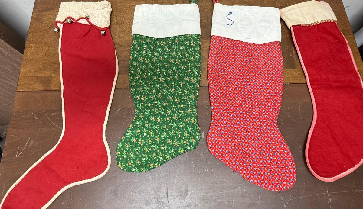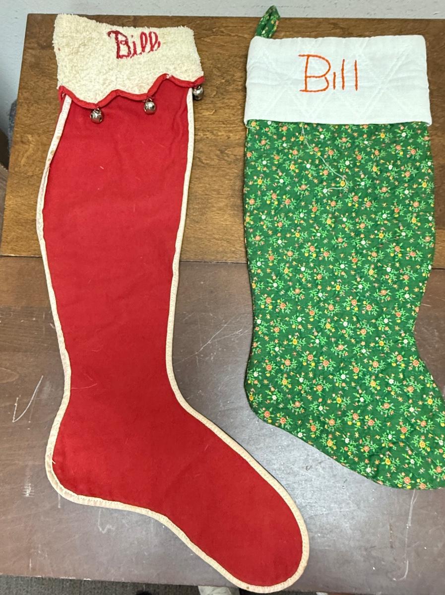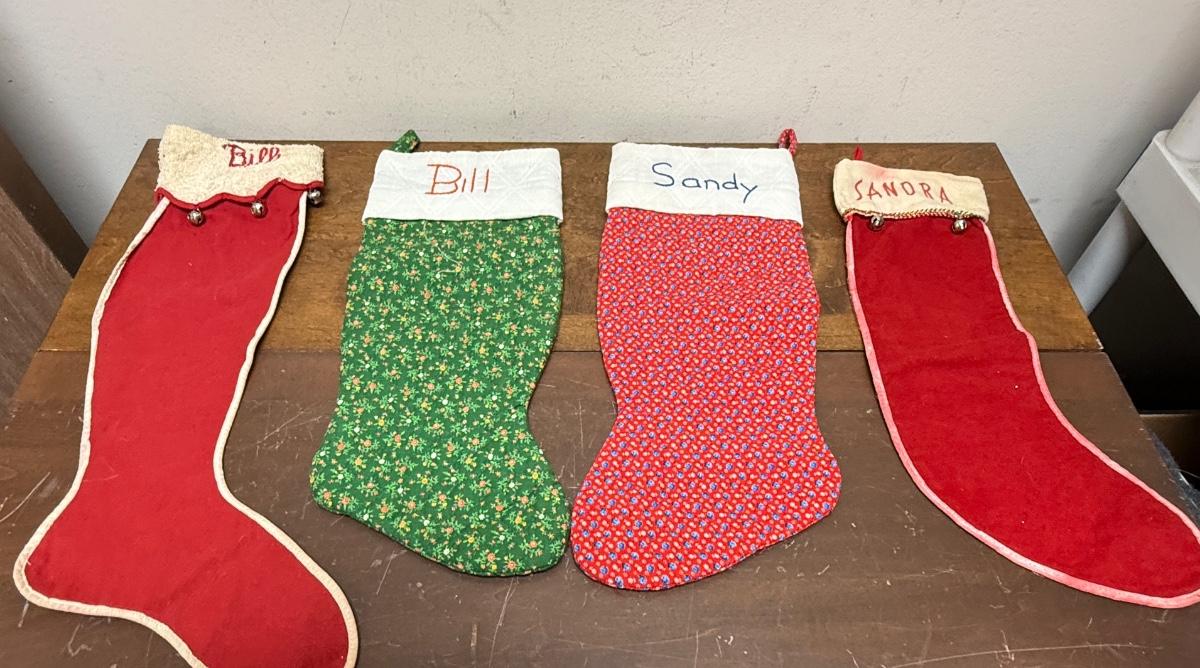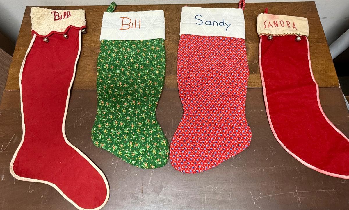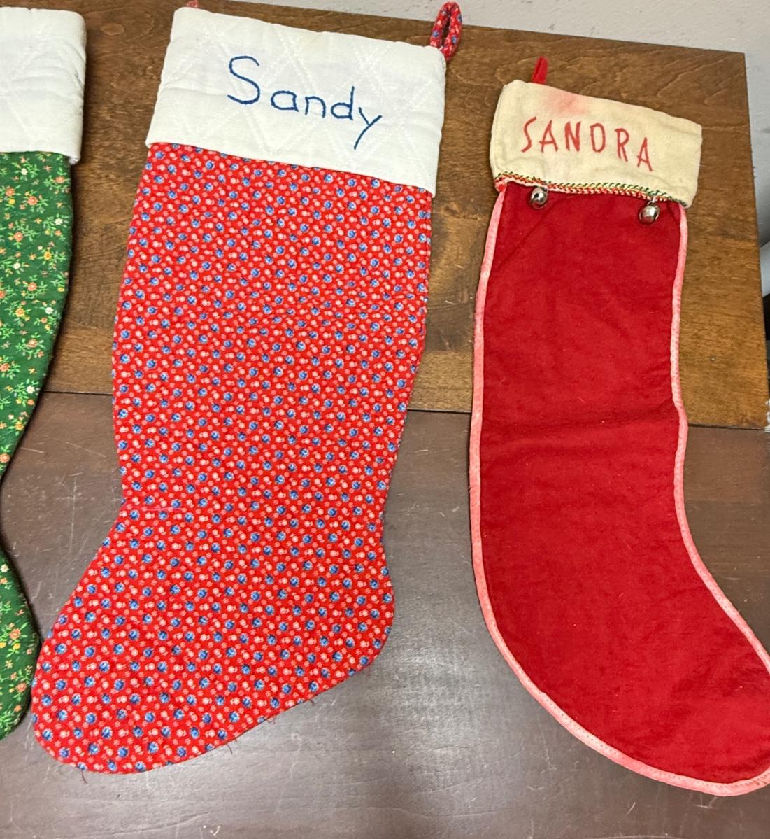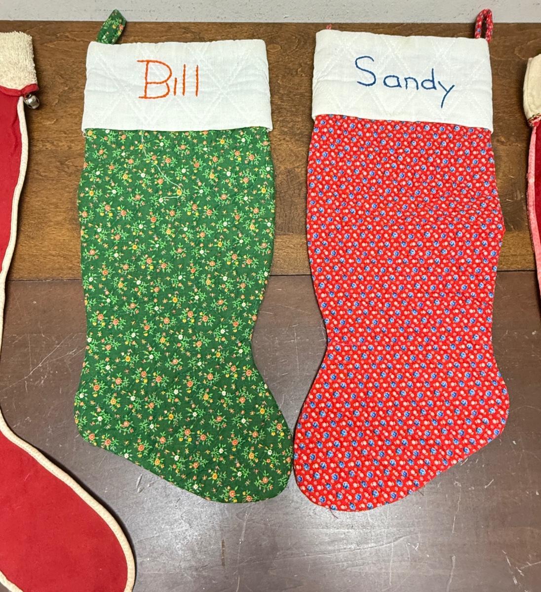 Lot of 4 Handmade Christmas Stockings for BILL & SANDY Vintage Green & Red fabric