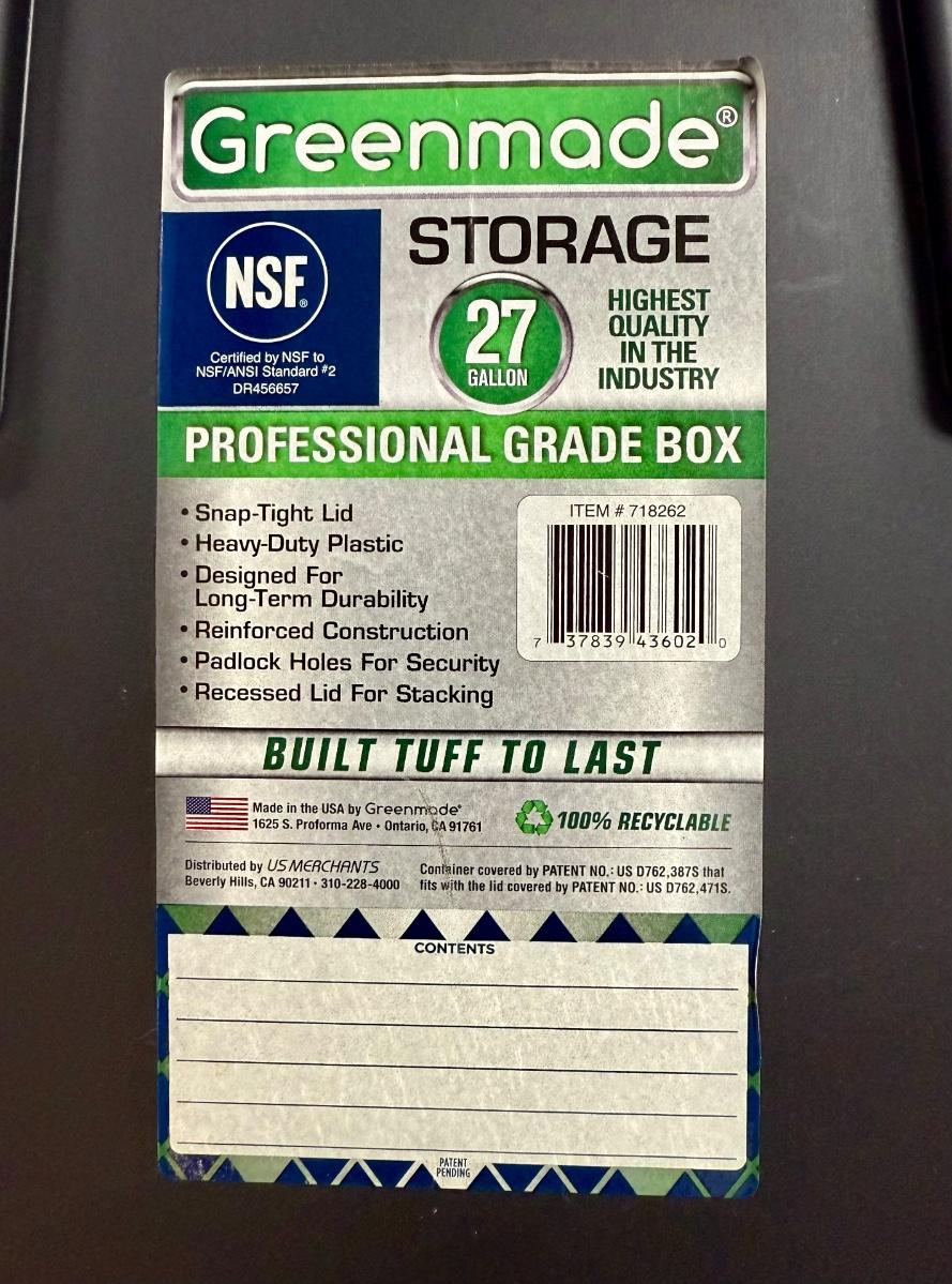 Lot of 4: Heavy Duty 27 Gallon Storage Bins